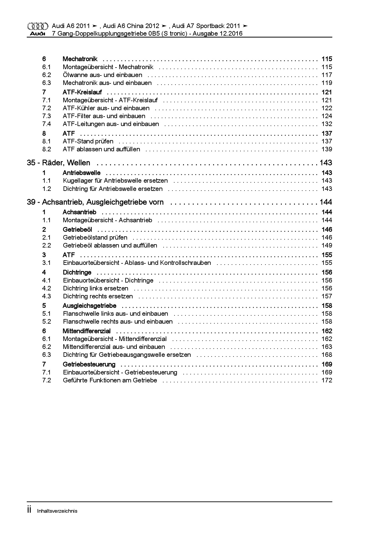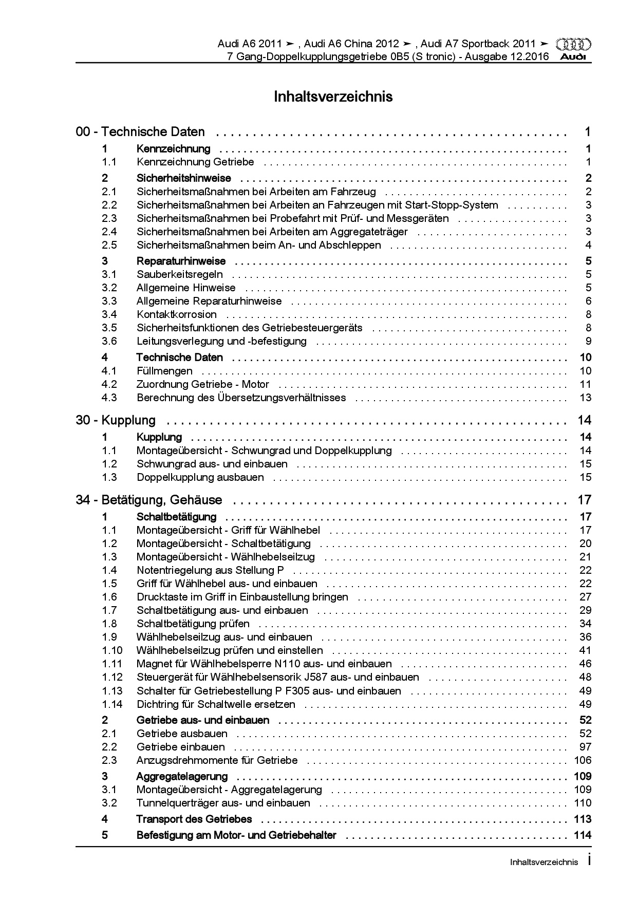 Audi A6 4G 2010-2018 7 Gang Doppelkupplungsgetriebe 0B5 Reparaturanleitung