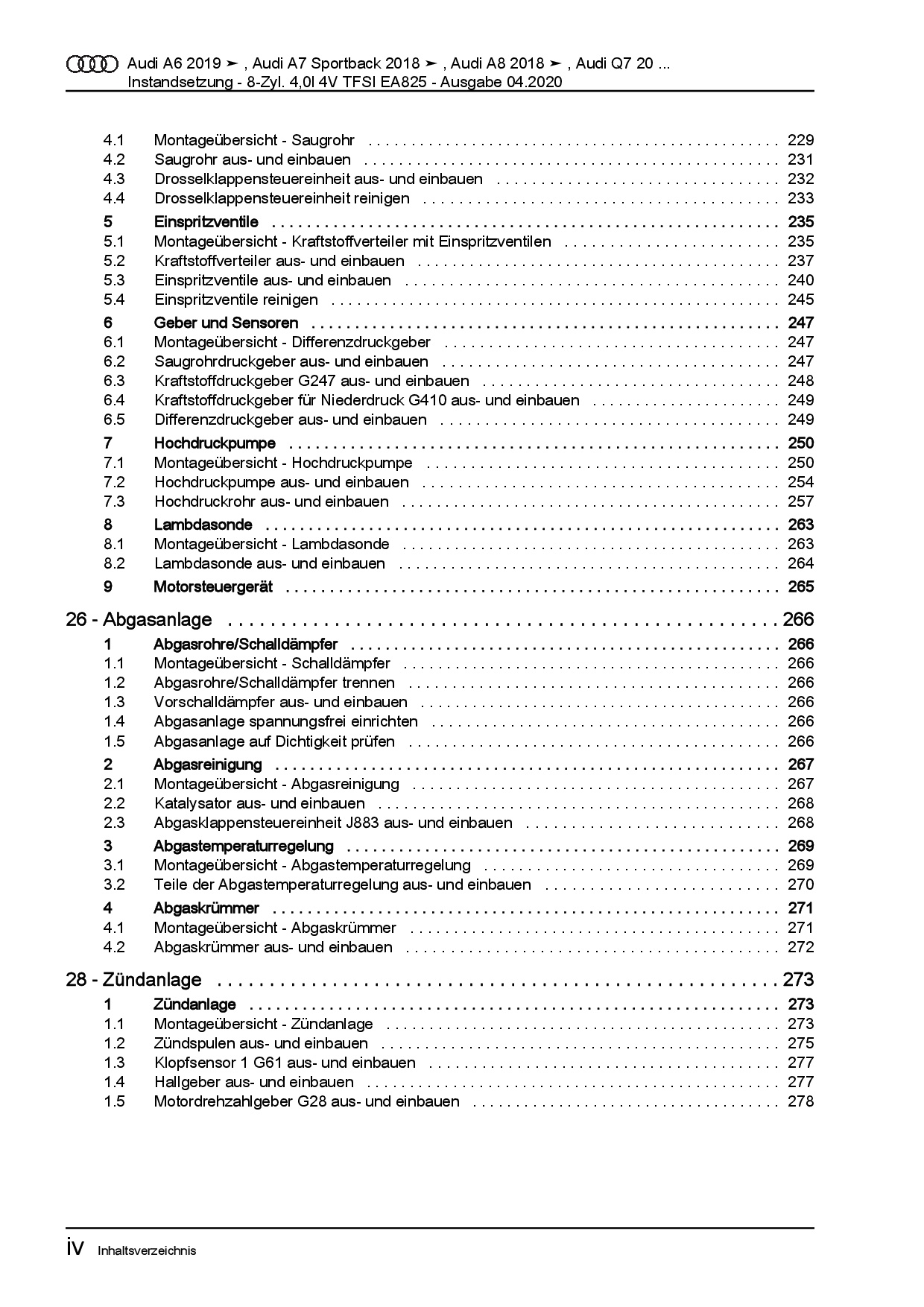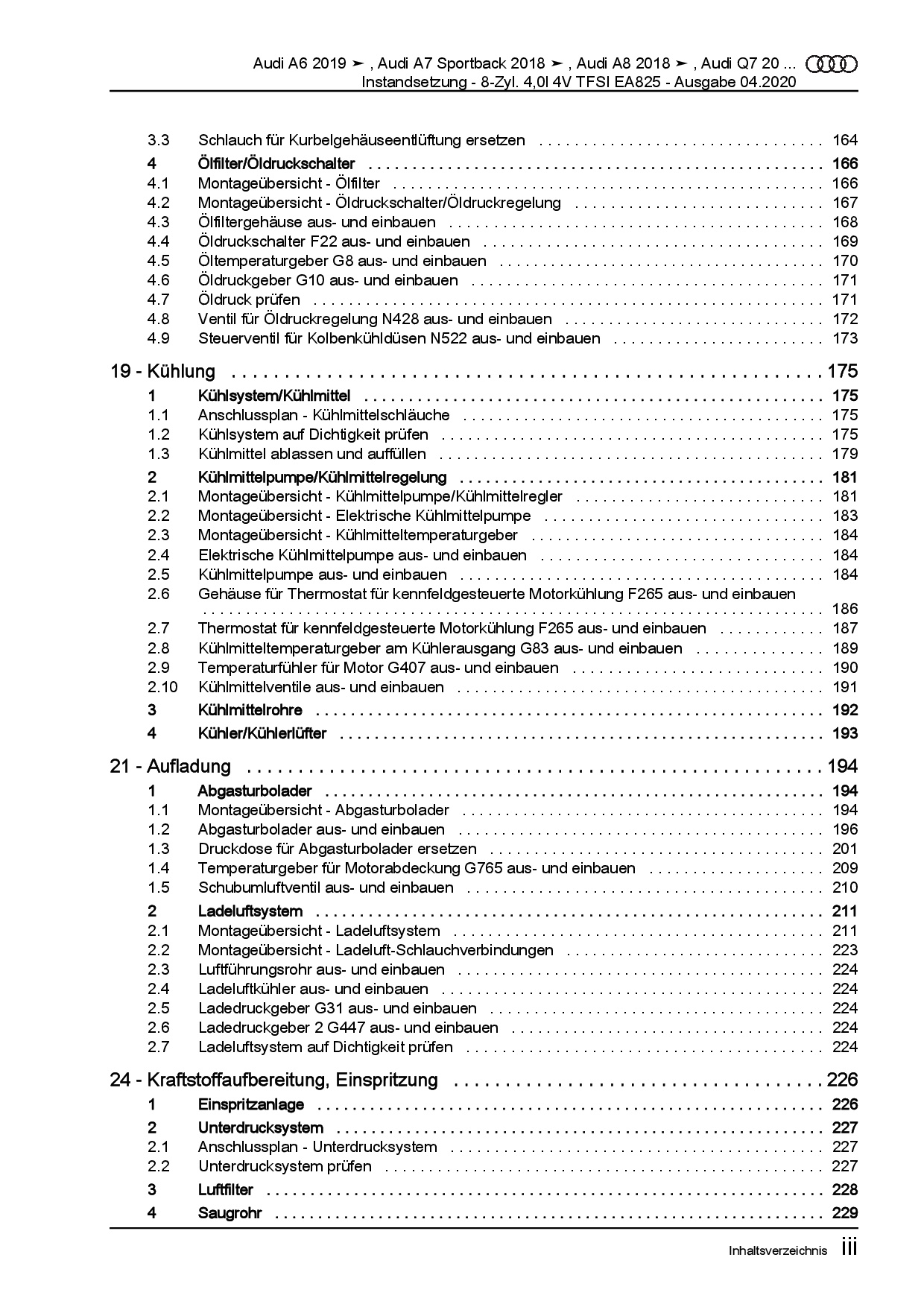 Audi A6 4K ab 2018 Instandsetzung 8-Zyl. TFSI Benzinmotor Reparaturanleitung