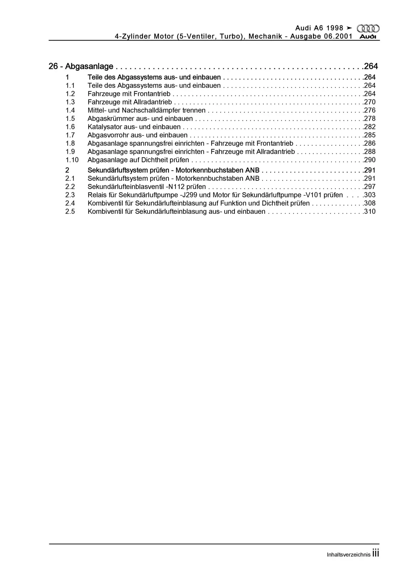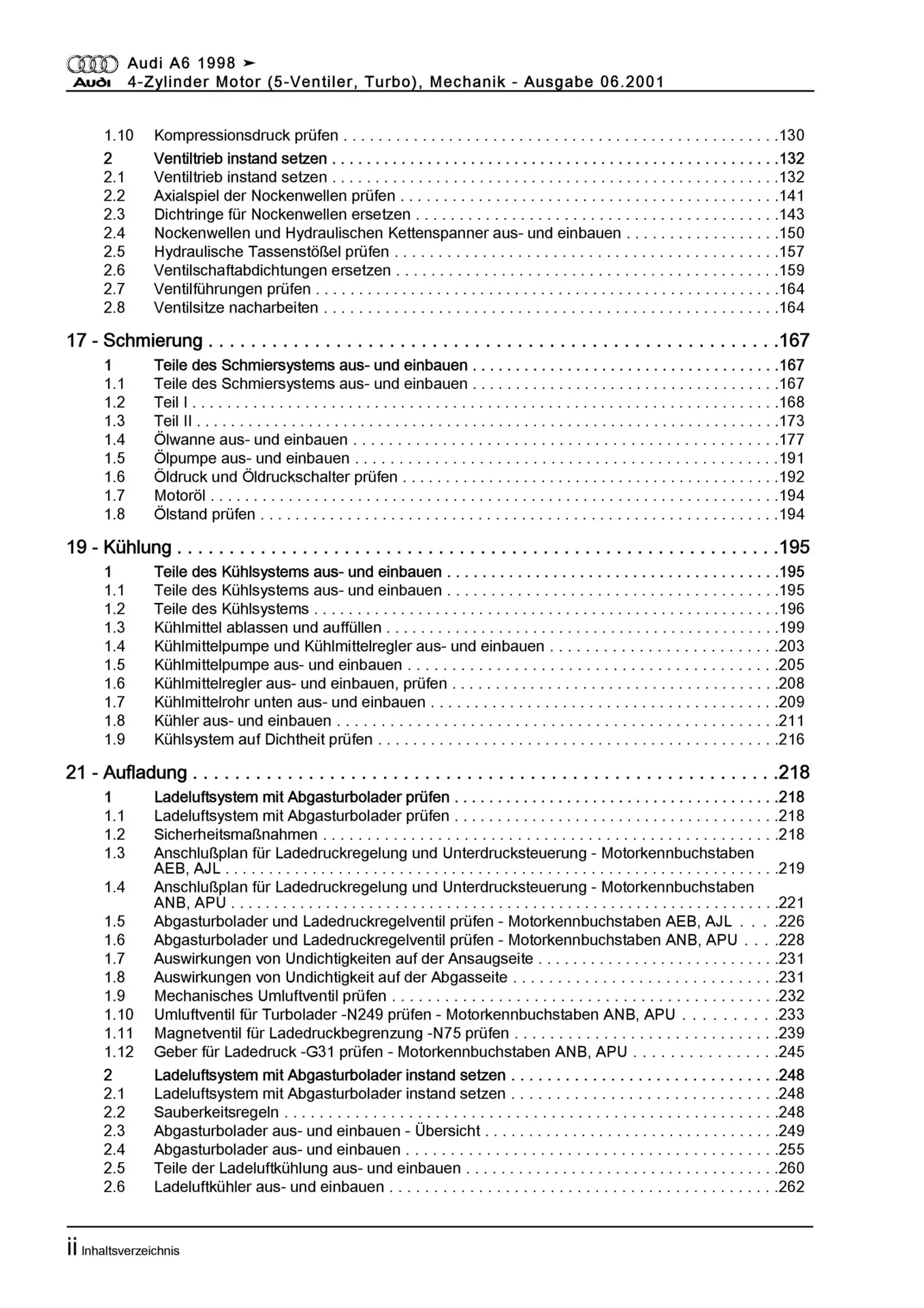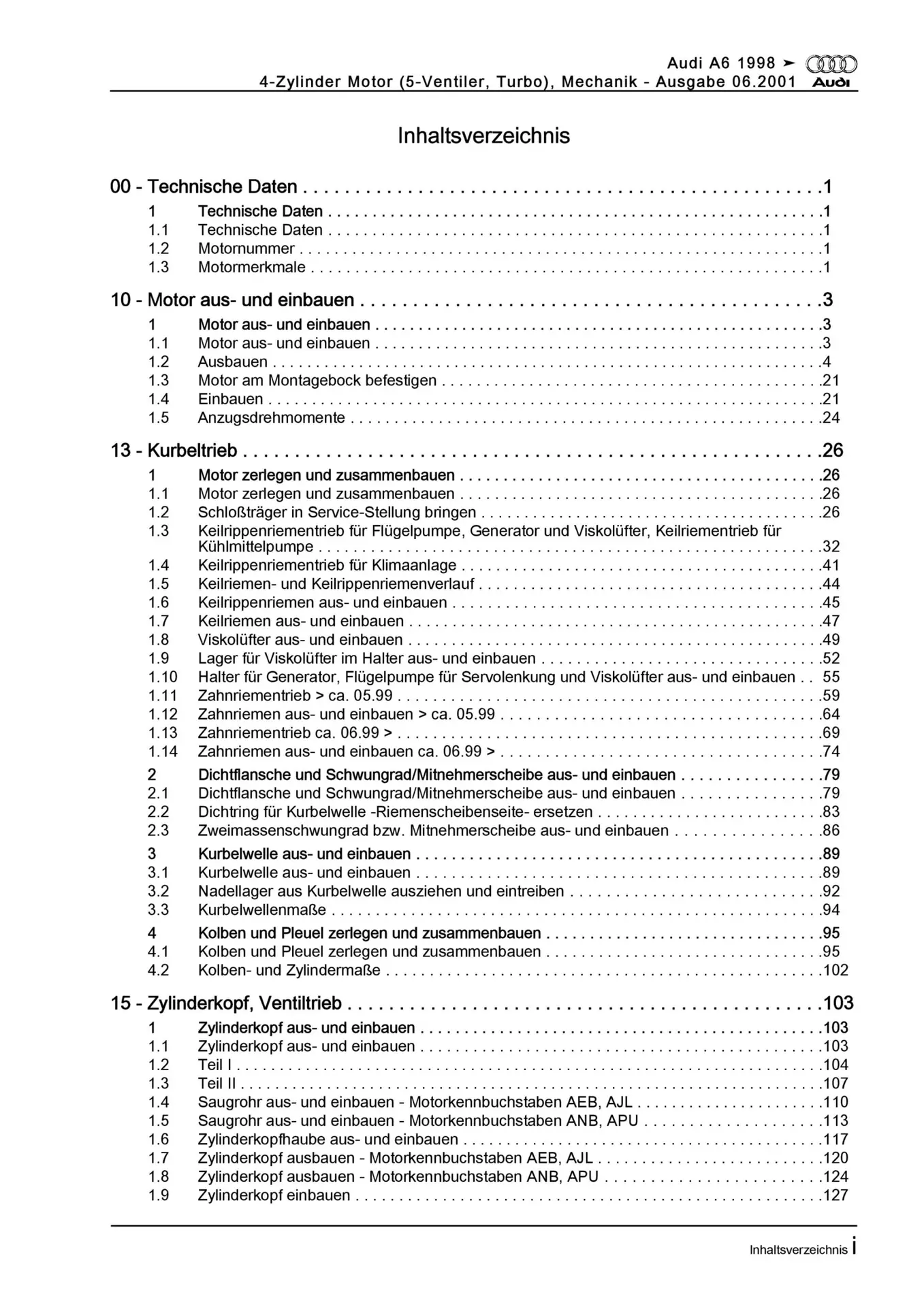 Audi A6 Typ 4B 1997-2005 1,8l Benzinmotor 150-180 PS Mechanik Reparaturanleitug