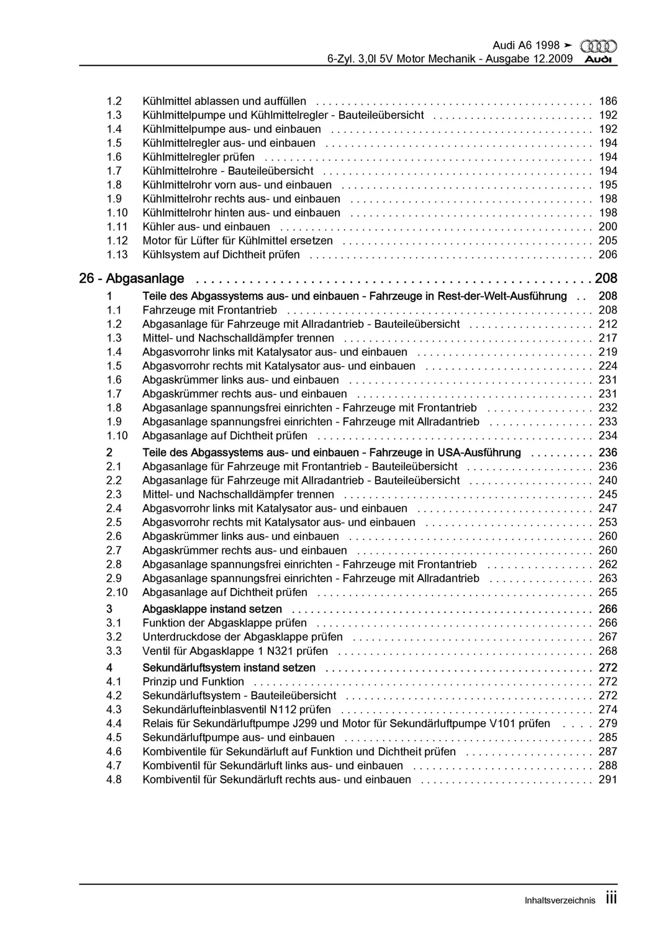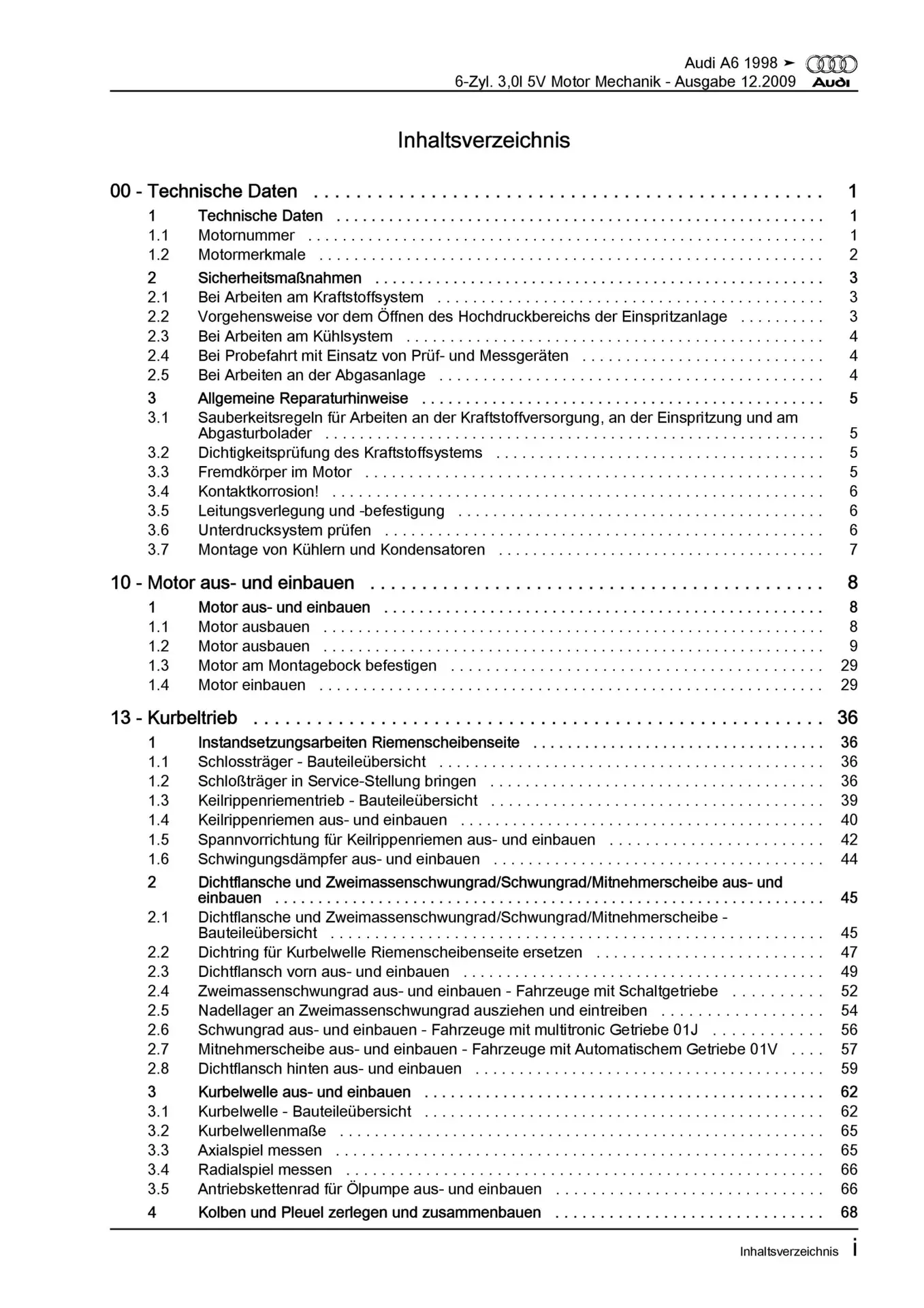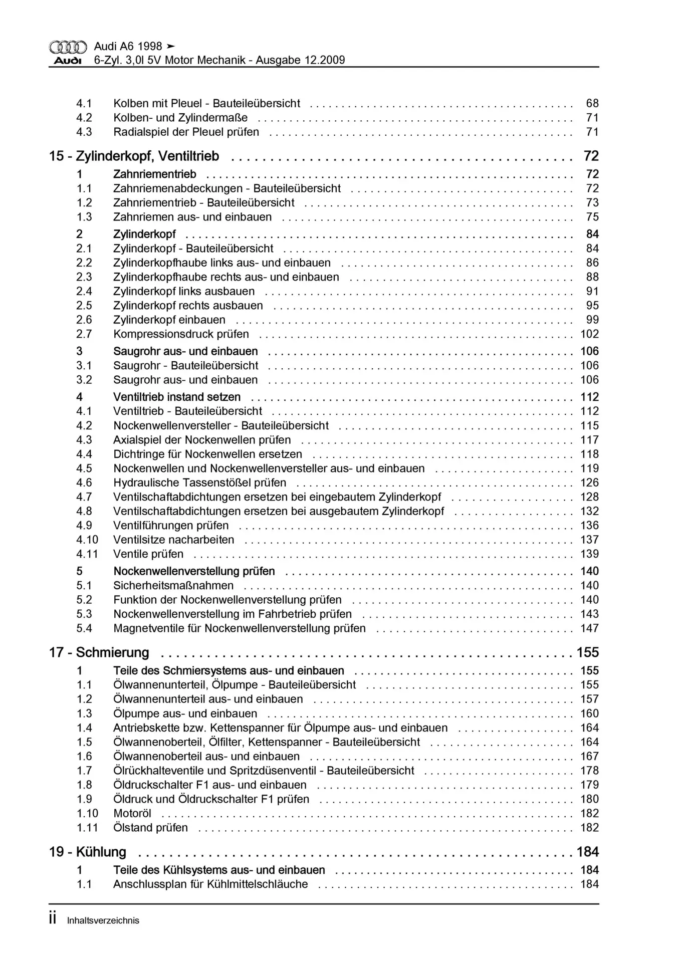 Audi A6 Typ 4B 1997-2005 3,0l Benzinmotor 218-220 PS Mechanik Reparaturanleitug