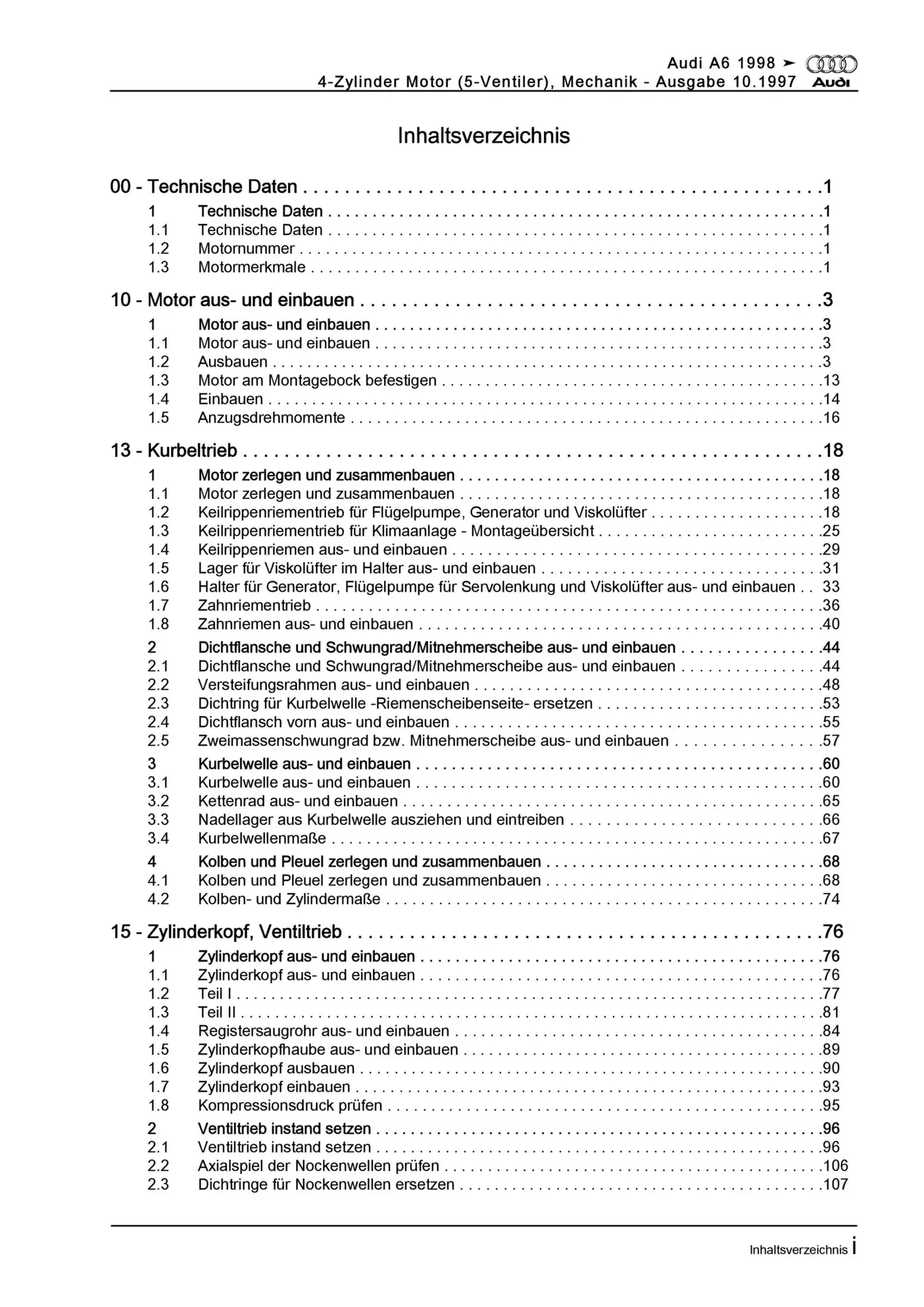 Diese Reparaturanleitung enthält detaillierte Beschreibungen zu Aus- und Einbauarbeiten, Einstell- und Prüfarbeiten sowie zahlreiche Grafiken, Bilder und Explosionszeichnungen. Die Kunststoffringbindung ermöglicht ein problemloses Umschlagen bis zu 180°.