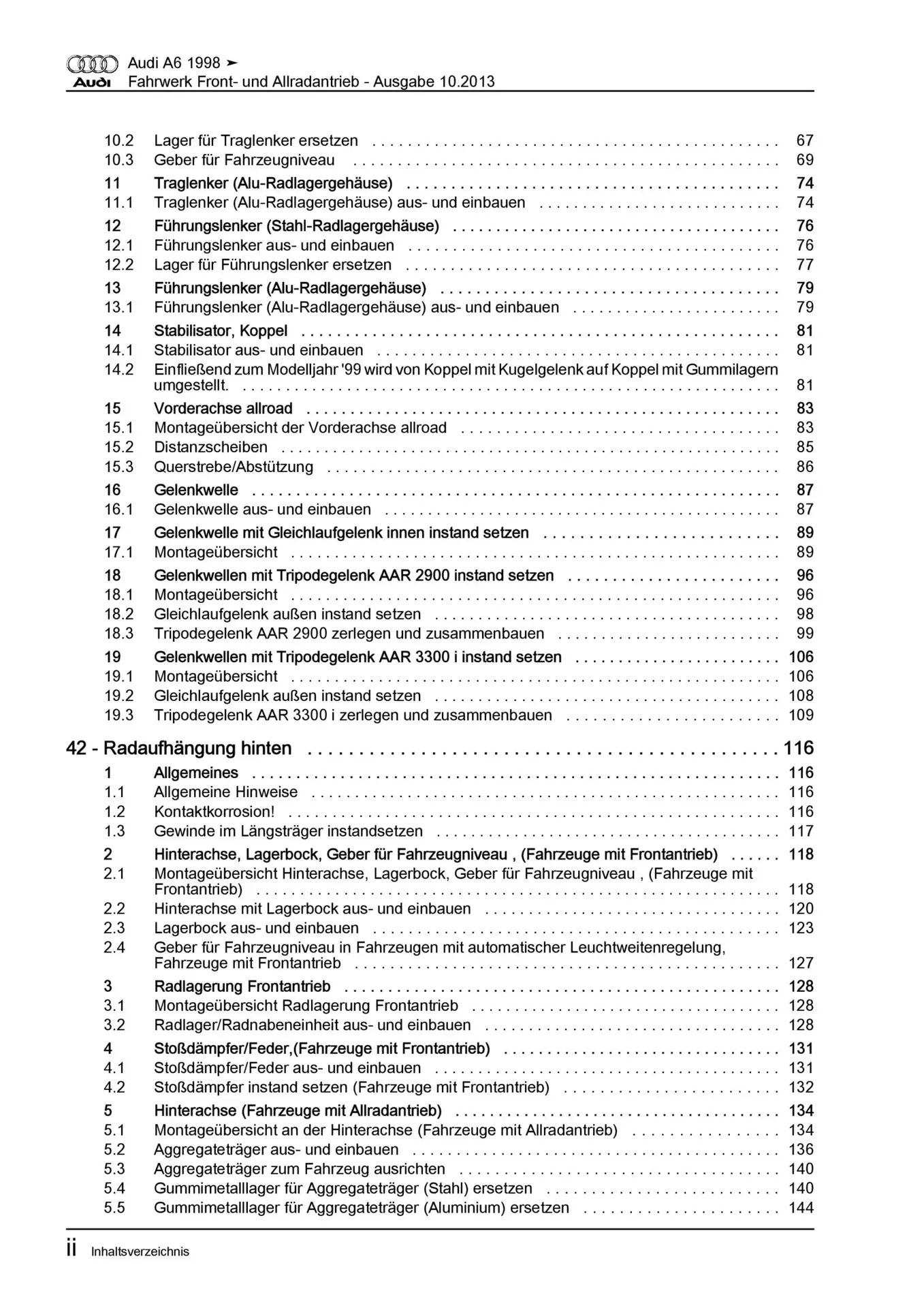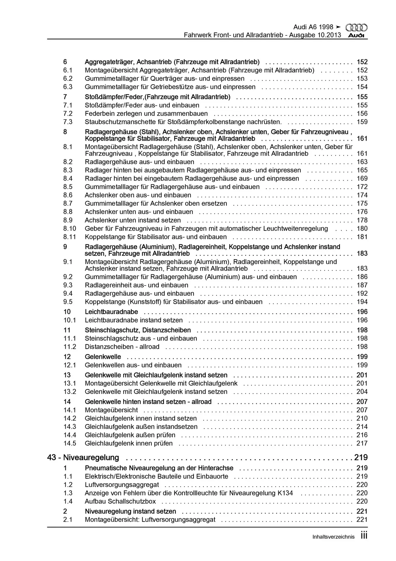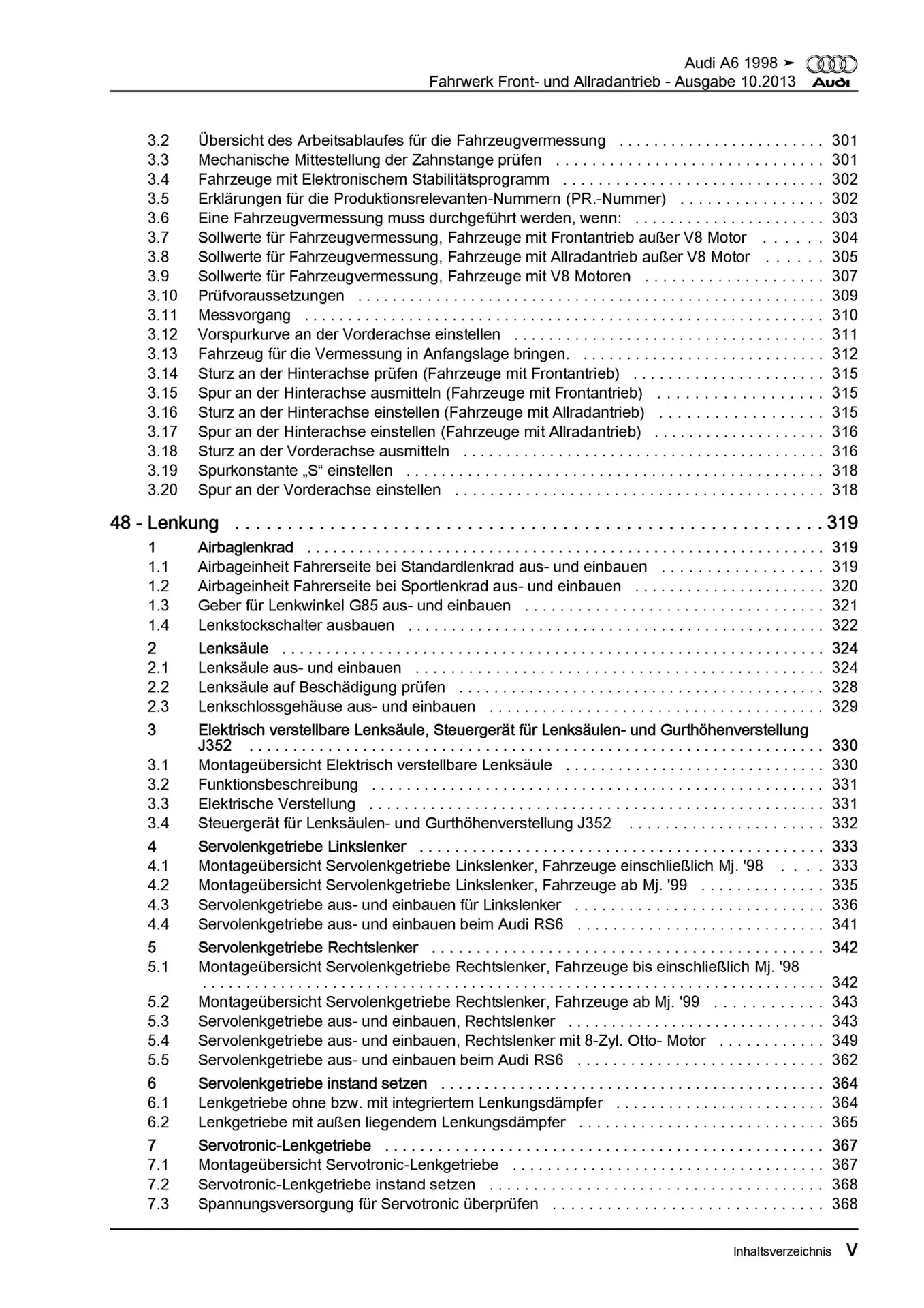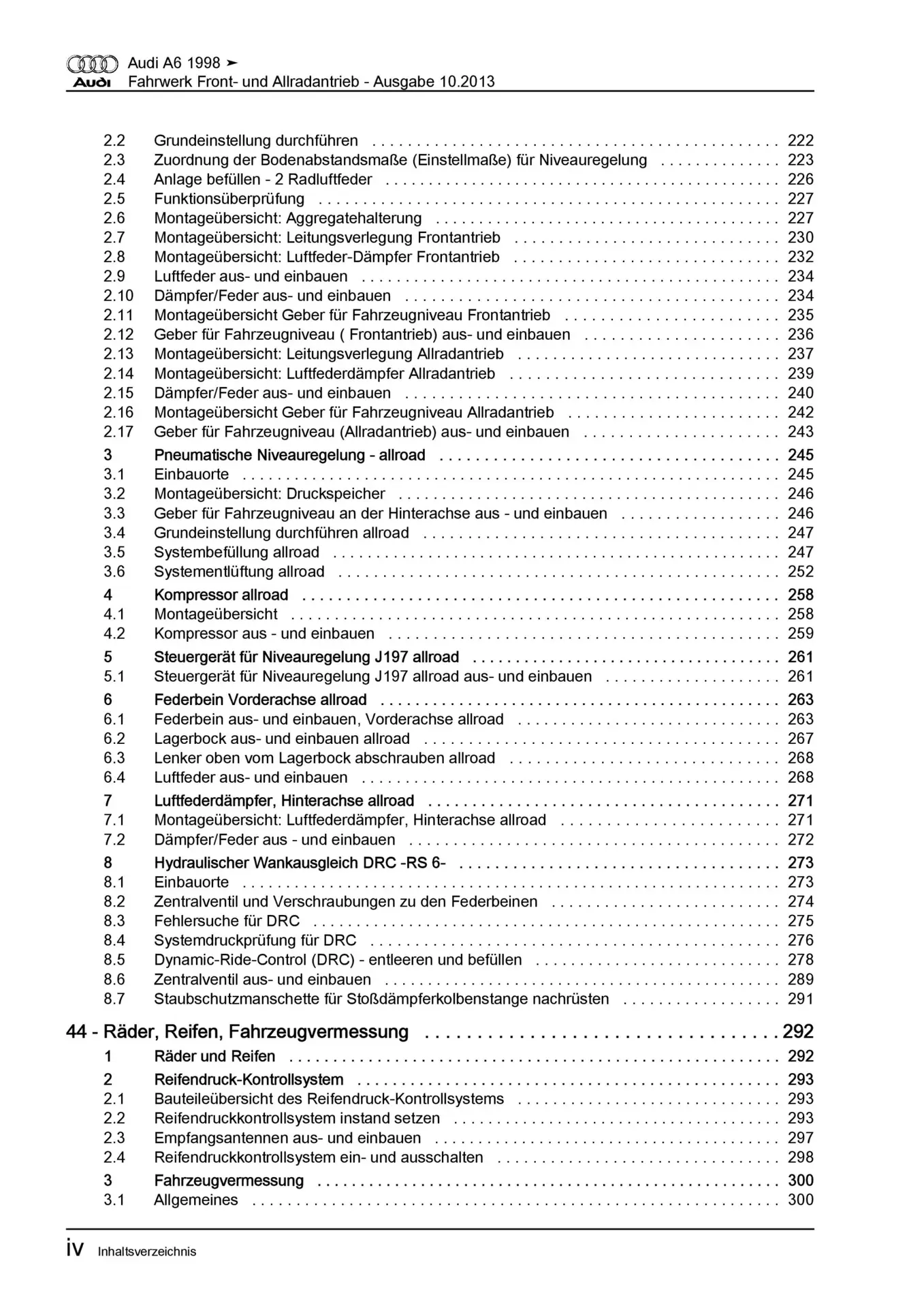 Audi A6 Typ 4B 1997-2005 Fahrwerk Achsen Lenkung FWD AWD Reparaturanleitung