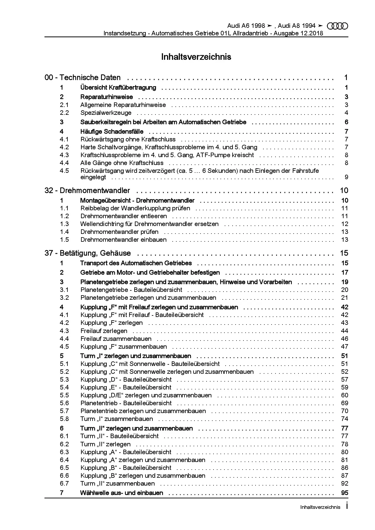 Audi A6 Typ 4B 1997-2005 Instandsetzung Automatikgetriebe 01L Reparaturanleitung