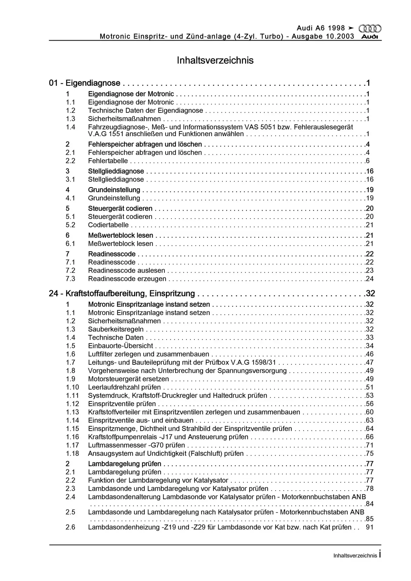 Audi A6 Typ 4B 1997-2005 Motronic Einspritz/Zündanlage 150 PS Reparaturanleitung
