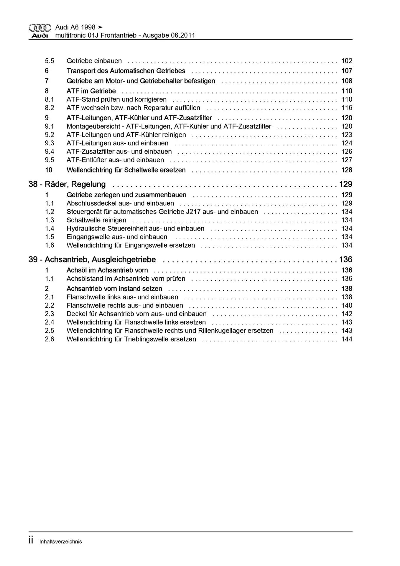 Der Audi A6 Reparaturleitfaden ist ein lizenzierter Nachdruck der originalen Werkstattunterlagen. Diese Anleitung wird von Vertragswerkstätten verwendet und enthält alle technischen Informationen für fachgerechte Reparaturen.
