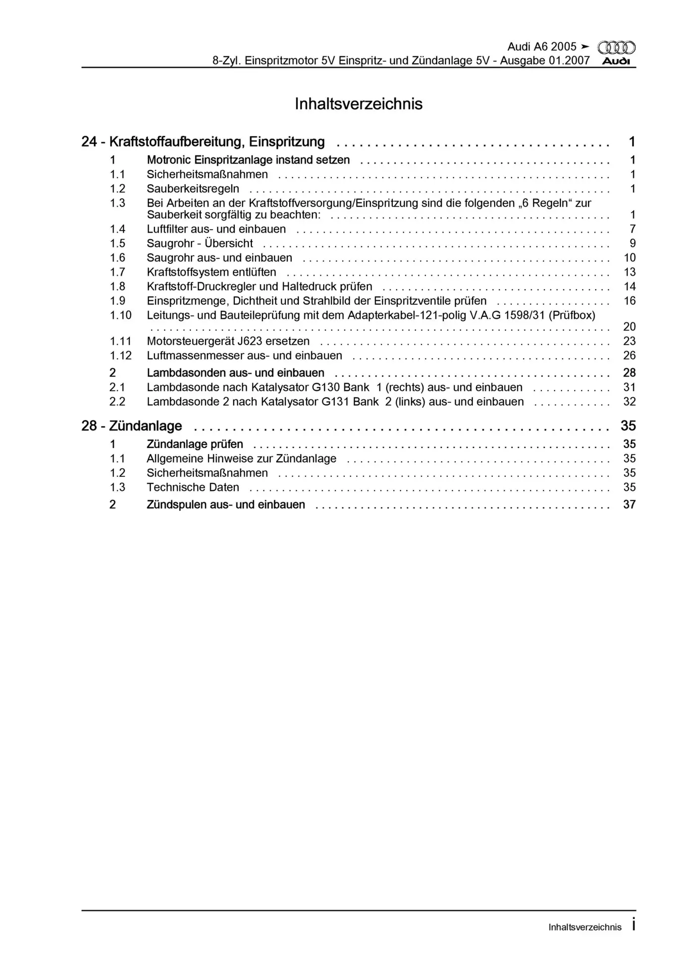 Audi A6 Typ 4F 2004-2011 Benzin Einspritz- Zündanlage 334 PS Reparaturanleitung