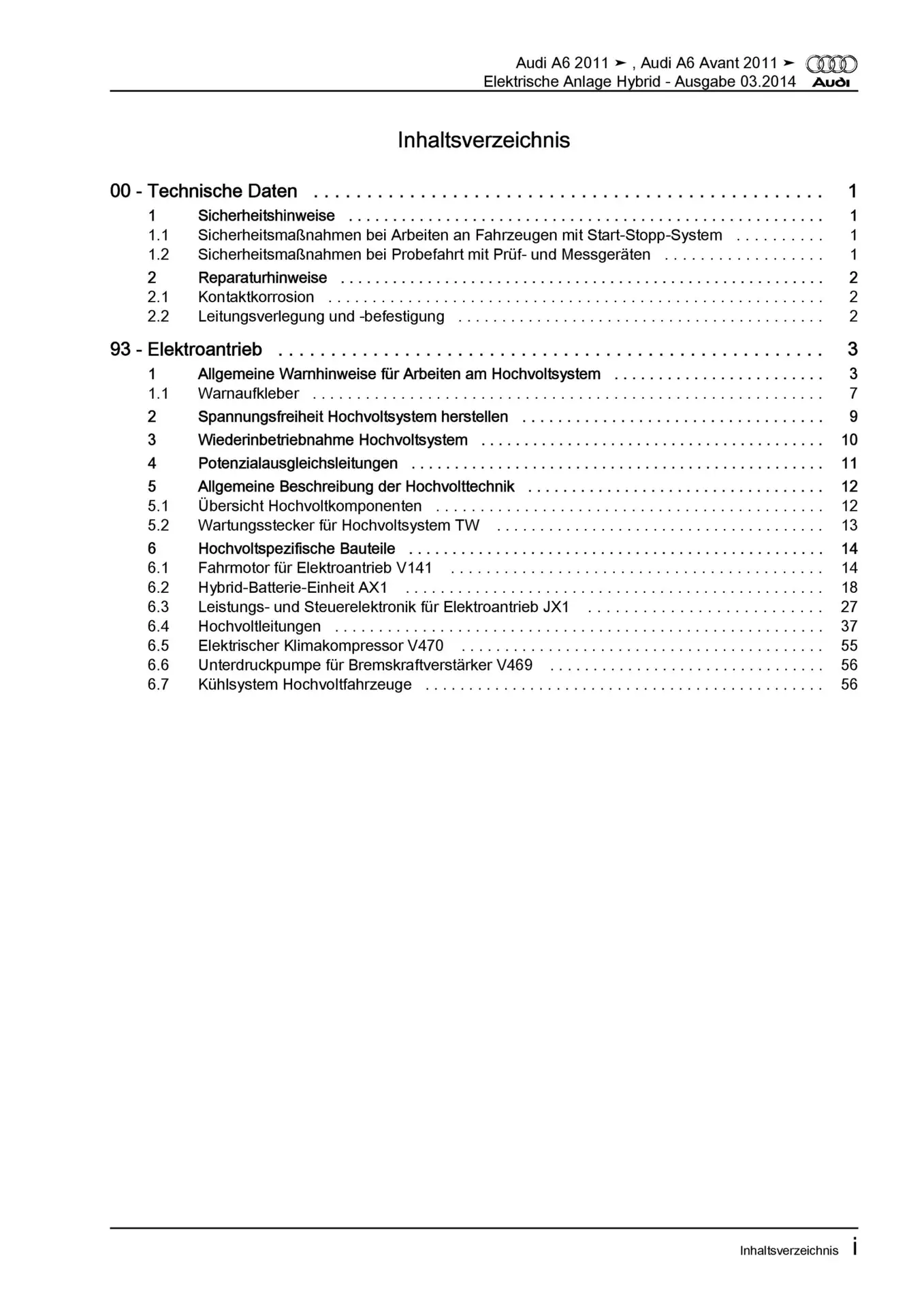 Audi A6 Typ 4G 2010-2018 Elektrische Anlage Systeme Hybrid Reparaturanleitung