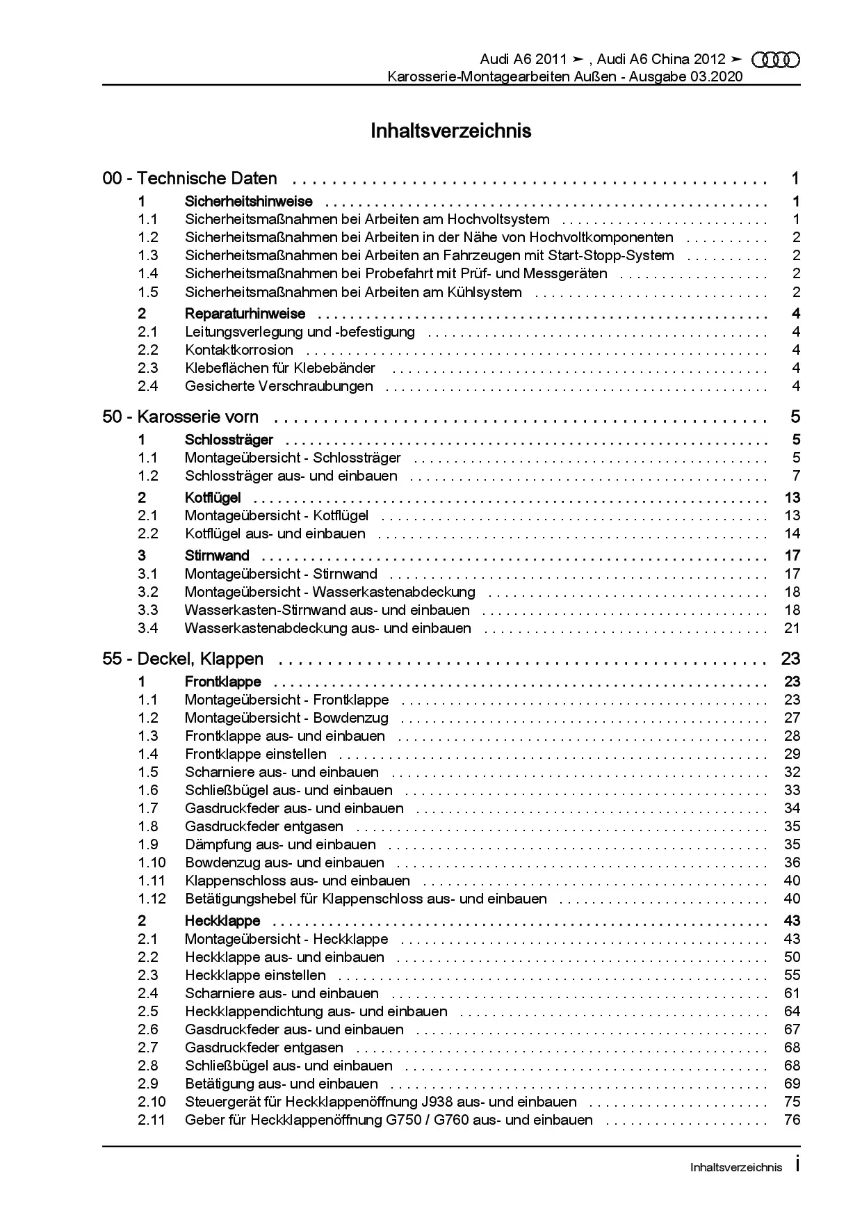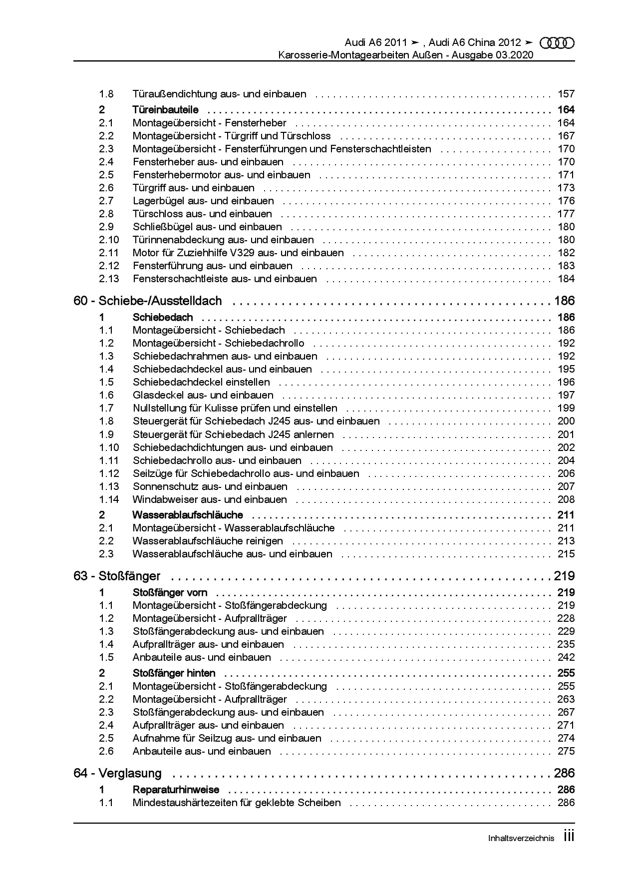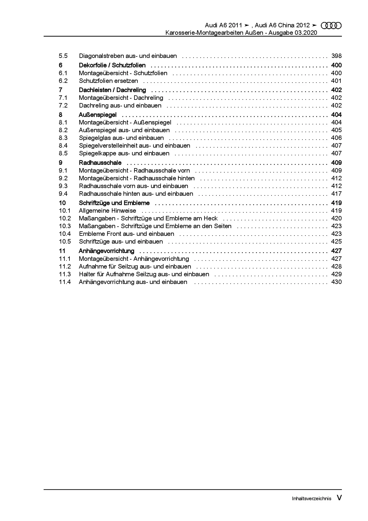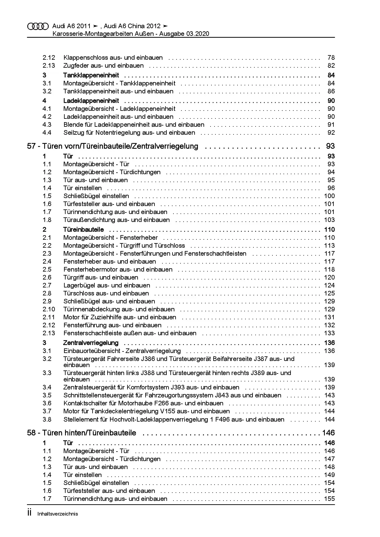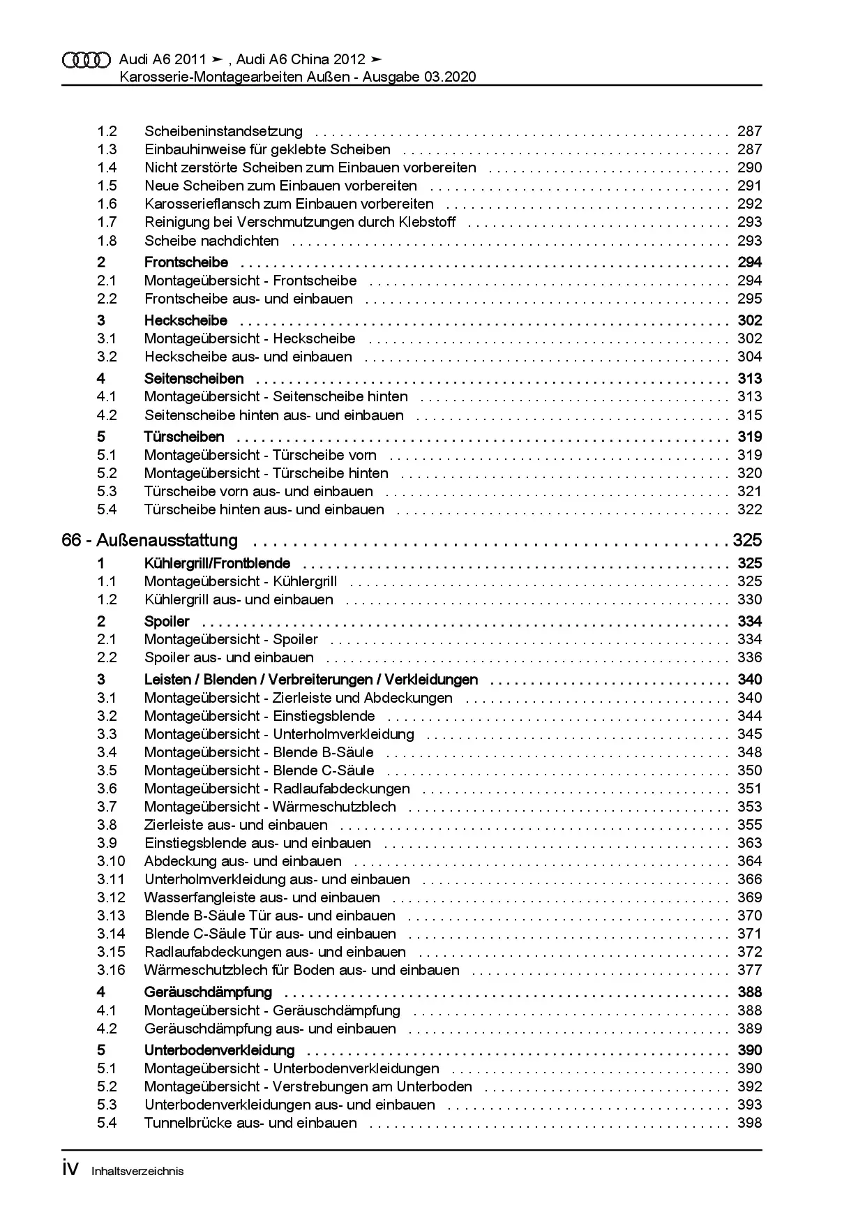 Audi A6 Typ 4G 2010-2018 Karosserie Montagearbeiten Außen Reparaturanleitung