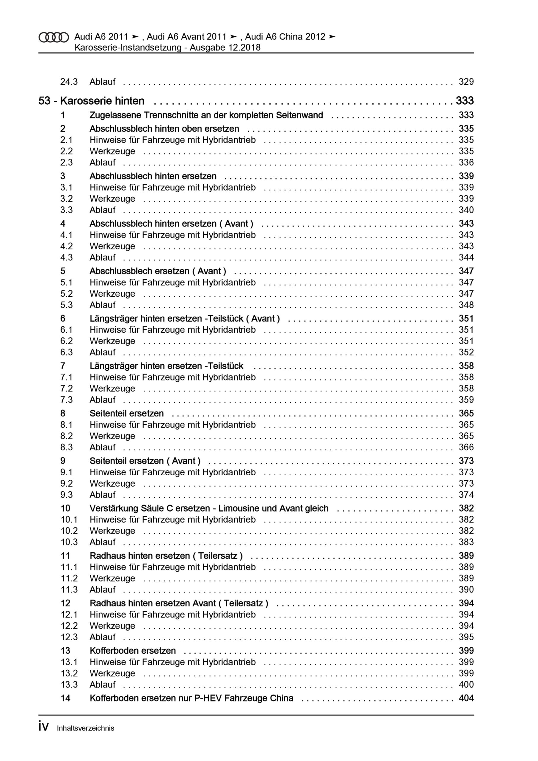 Offizieller Audi A6 inklusive Avant Reparaturleitfaden