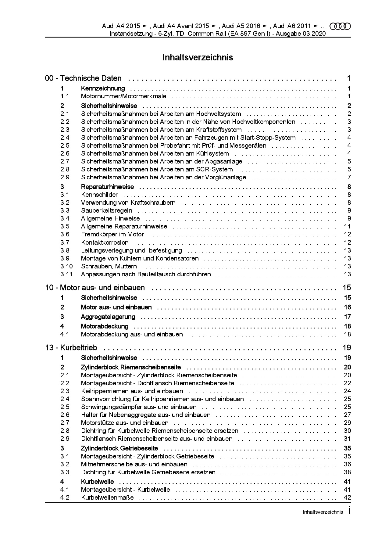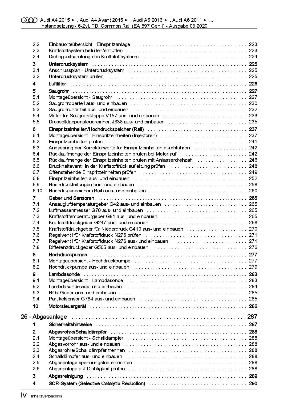– Thema: Instandsetzung – 6-Zyl. Dieselmotor (TDI, Common Rail, 4V Motor, EA 897, Gen I)