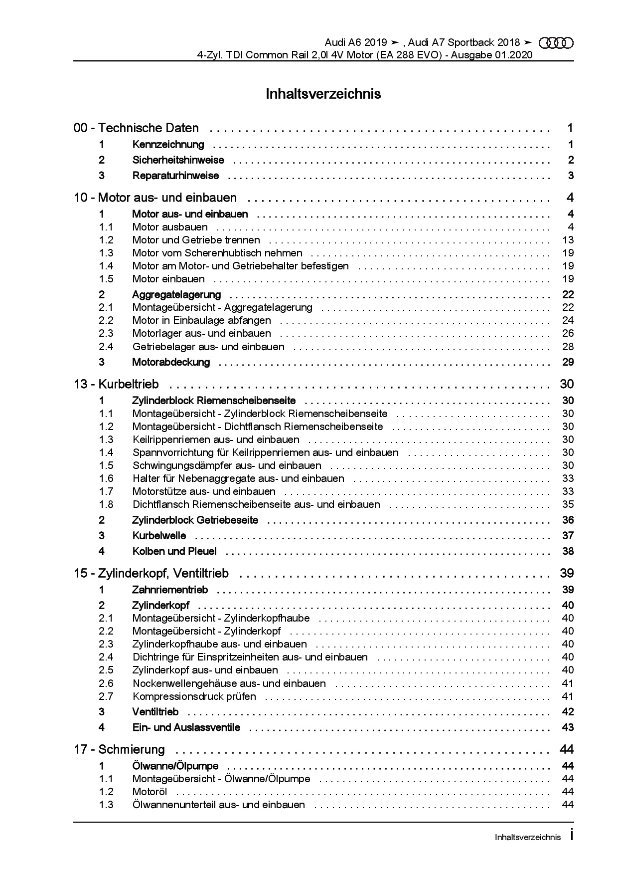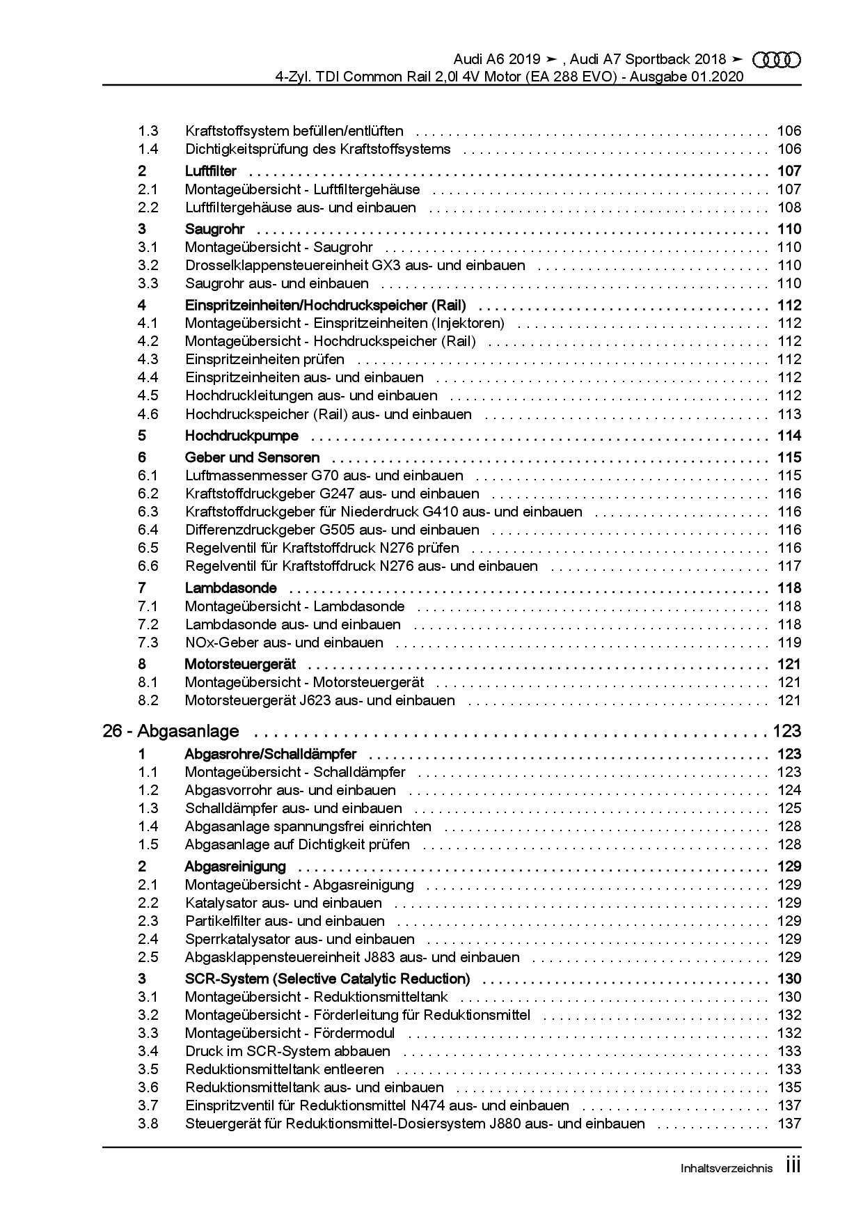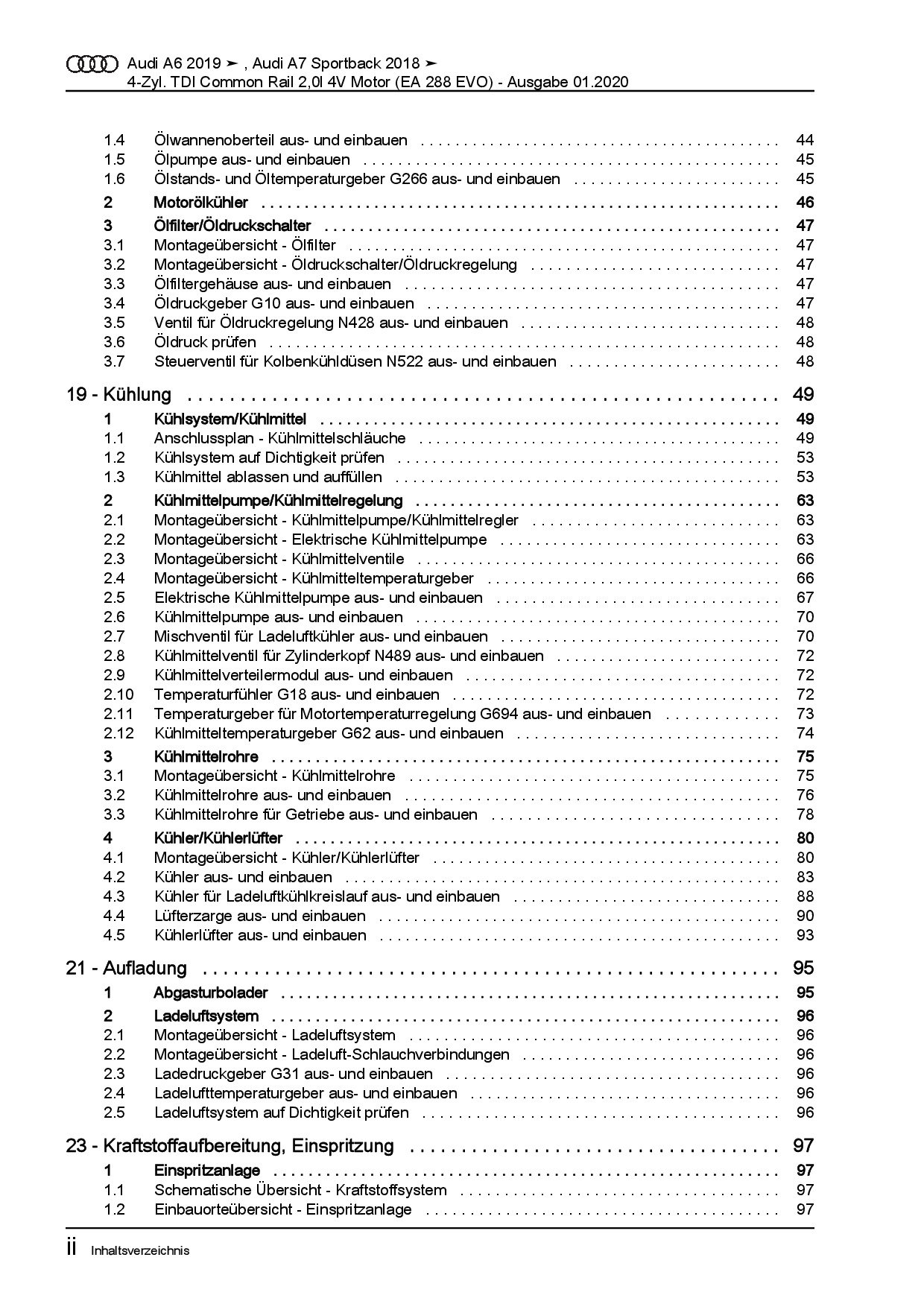 Audi A6 Typ 4K ab 2018 4-Zyl. 2,0l Dieselmotor TDI 4V Reparaturanleitung