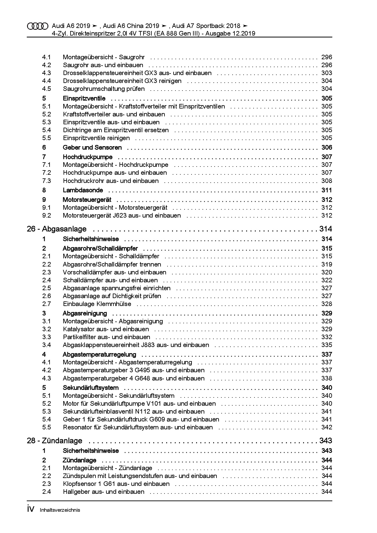 Diese Reparaturanleitung enthält detaillierte Beschreibungen zu Aus- und Einbauarbeiten, Einstell- und Prüfarbeiten sowie zahlreiche Grafiken, Bilder und Explosionszeichnungen. Die Kunststoffringbindung ermöglicht ein problemloses Umschlagen bis zu 180°.