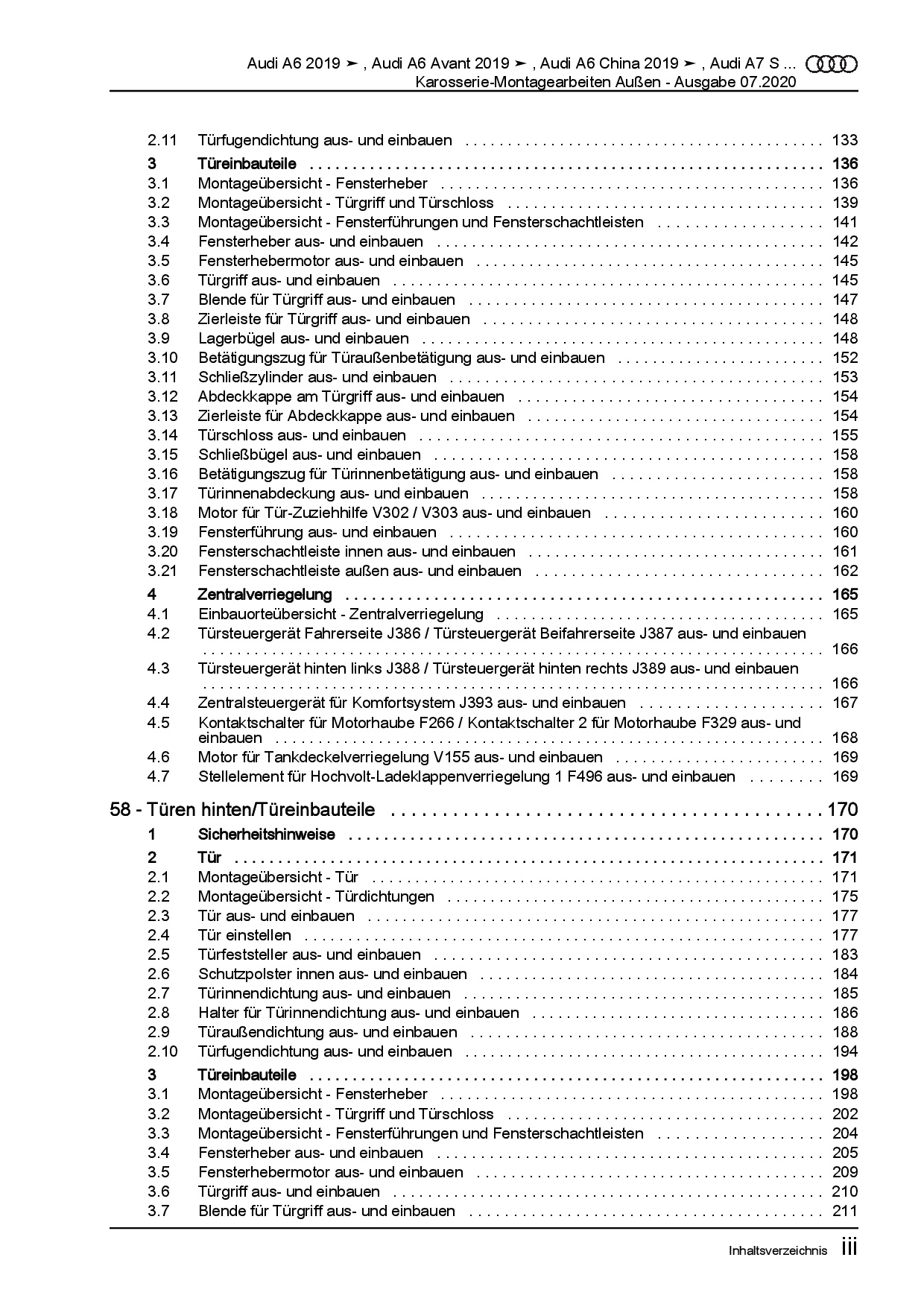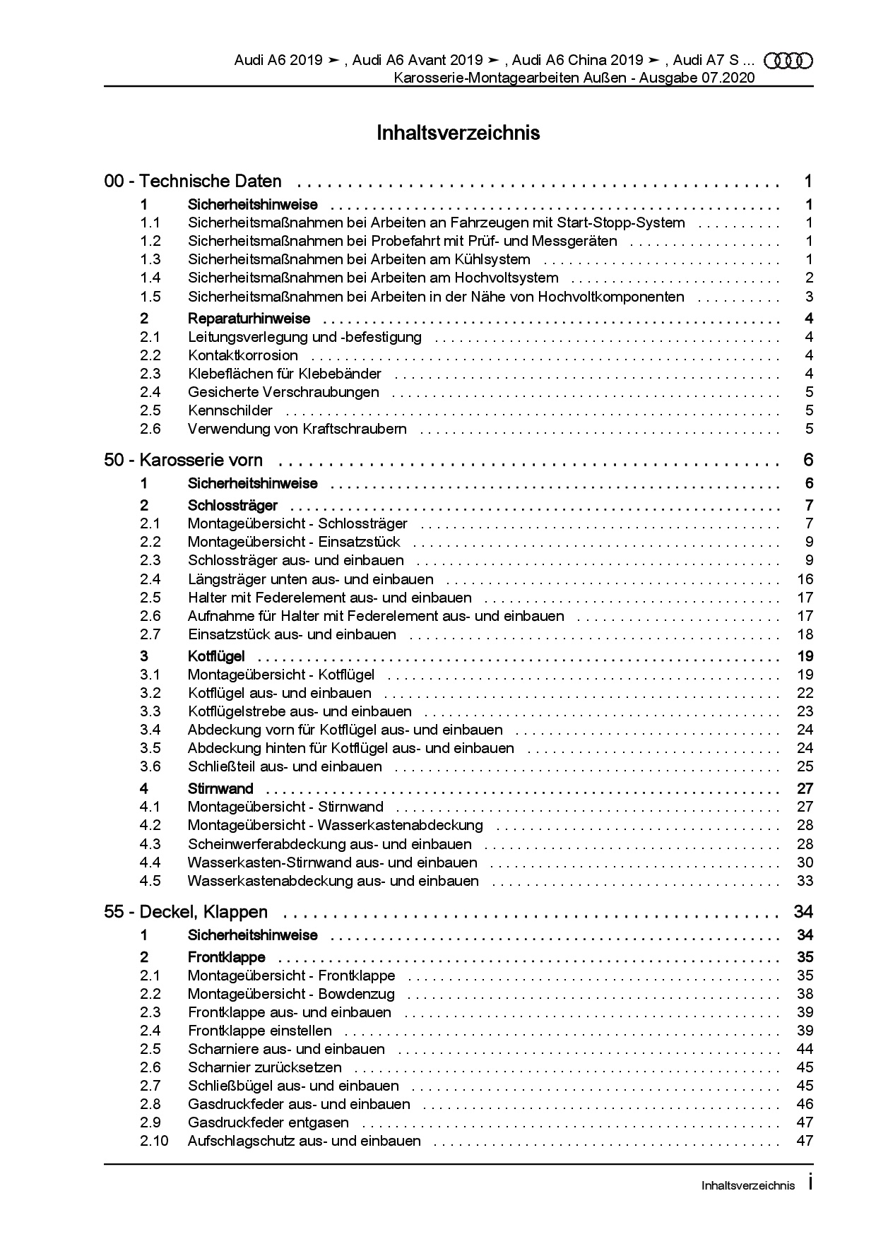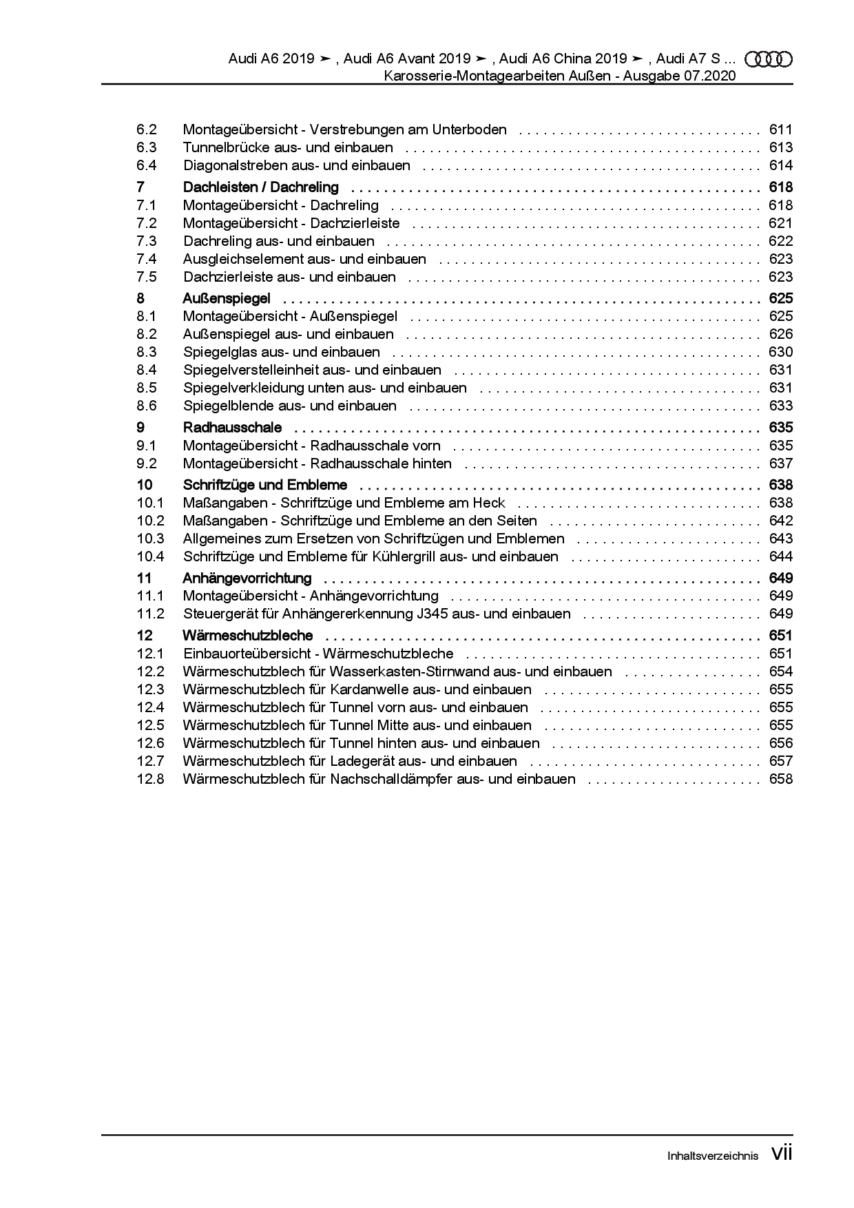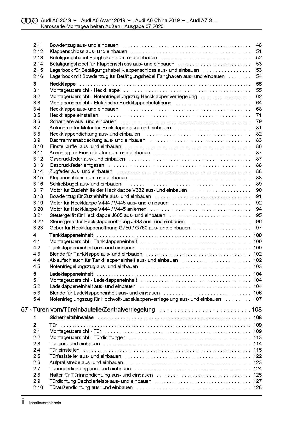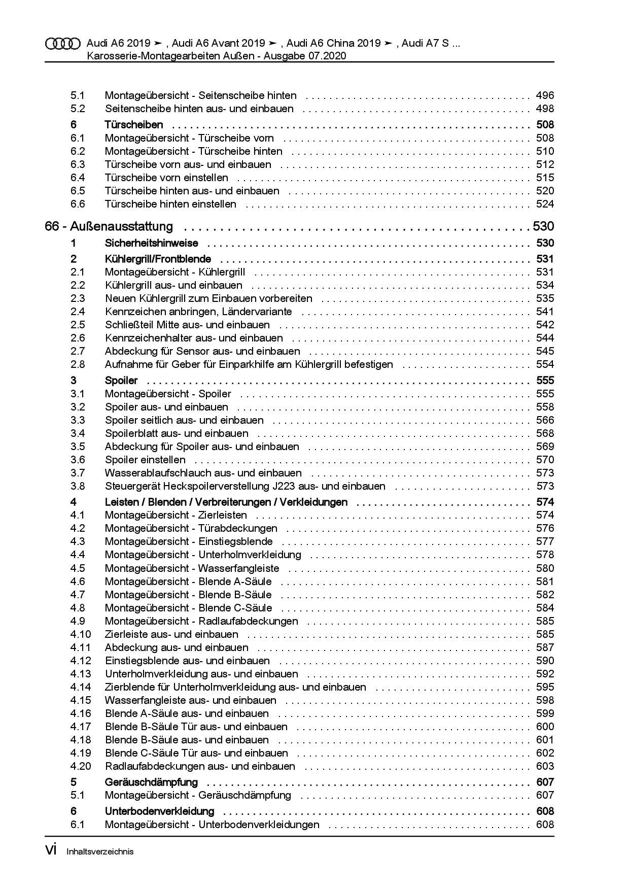 Audi A6 Typ 4K ab 2018 Karosserie Montagearbeiten Außen Reparaturanleitung