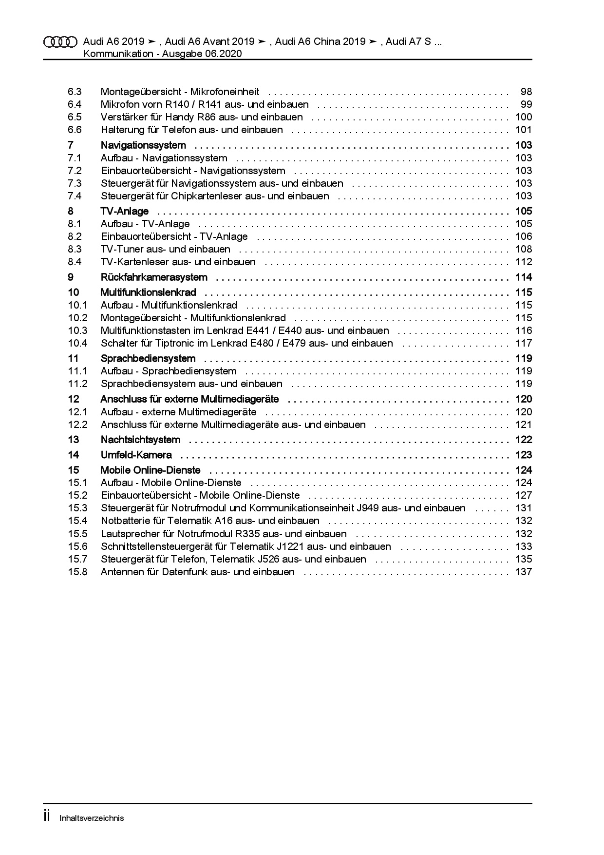 Diese Reparaturanleitung enthält detaillierte Beschreibungen zu Aus- und Einbauarbeiten, Einstell- und Prüfarbeiten sowie zahlreiche Grafiken, Bilder und Explosionszeichnungen. Die Kunststoffringbindung ermöglicht ein problemloses Umschlagen bis zu 180°.