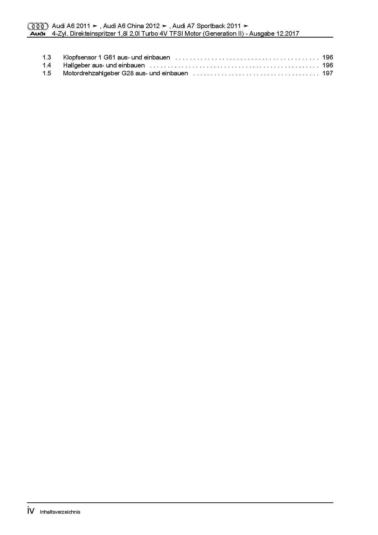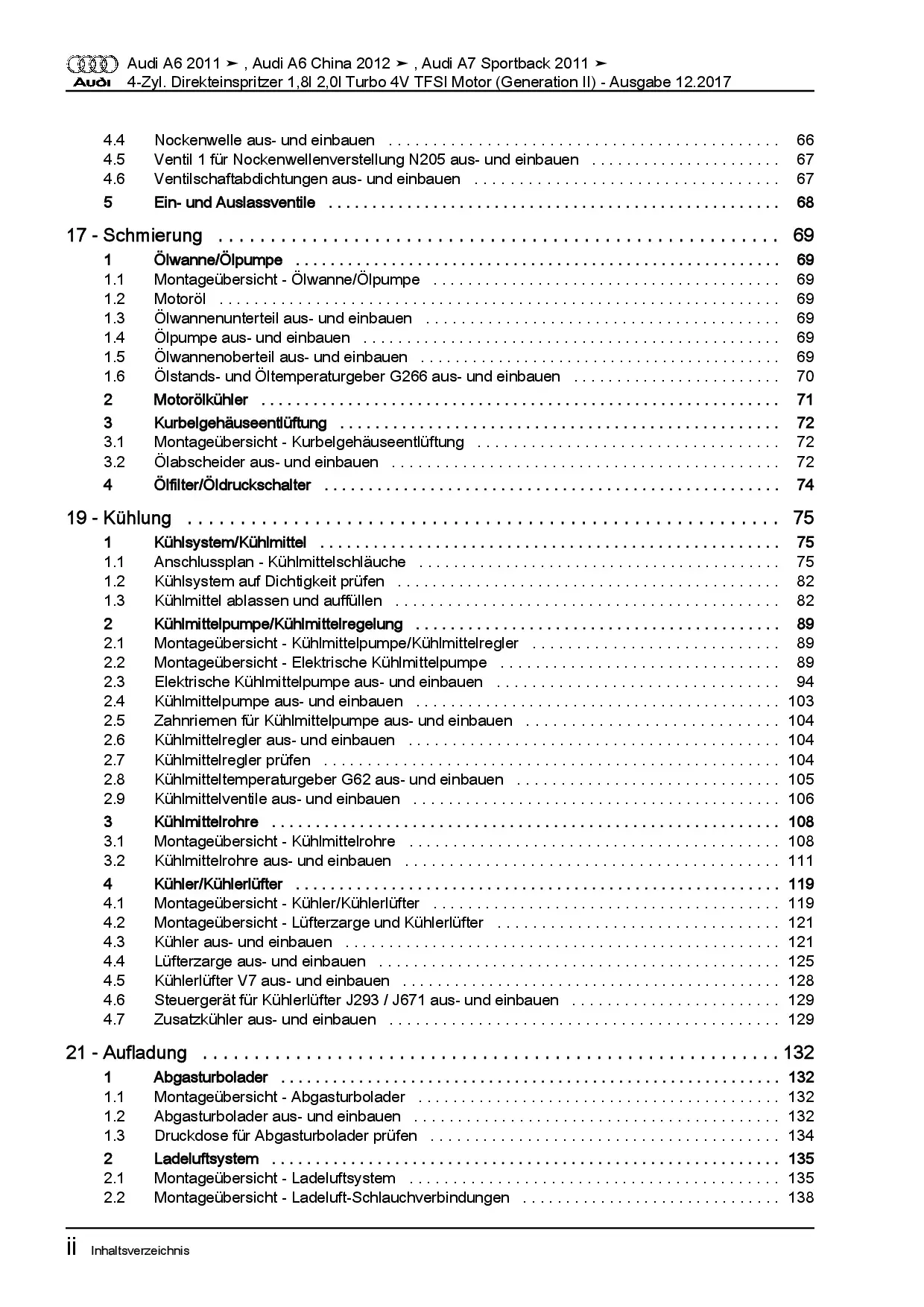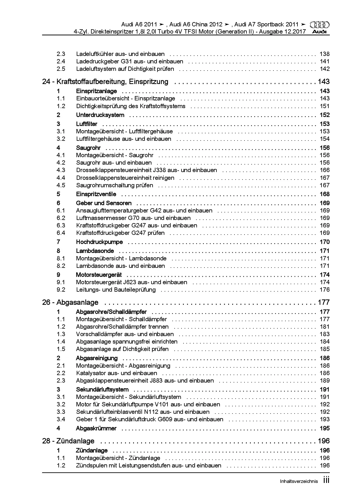 Audi A7 Typ 4G 2010-2018 1,8l 2,0l Benzinmotor 179-220 PS Reparaturanleitung