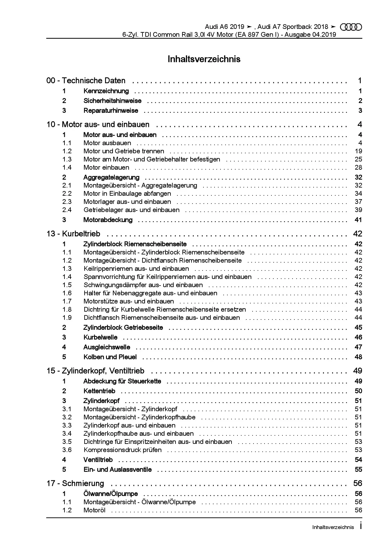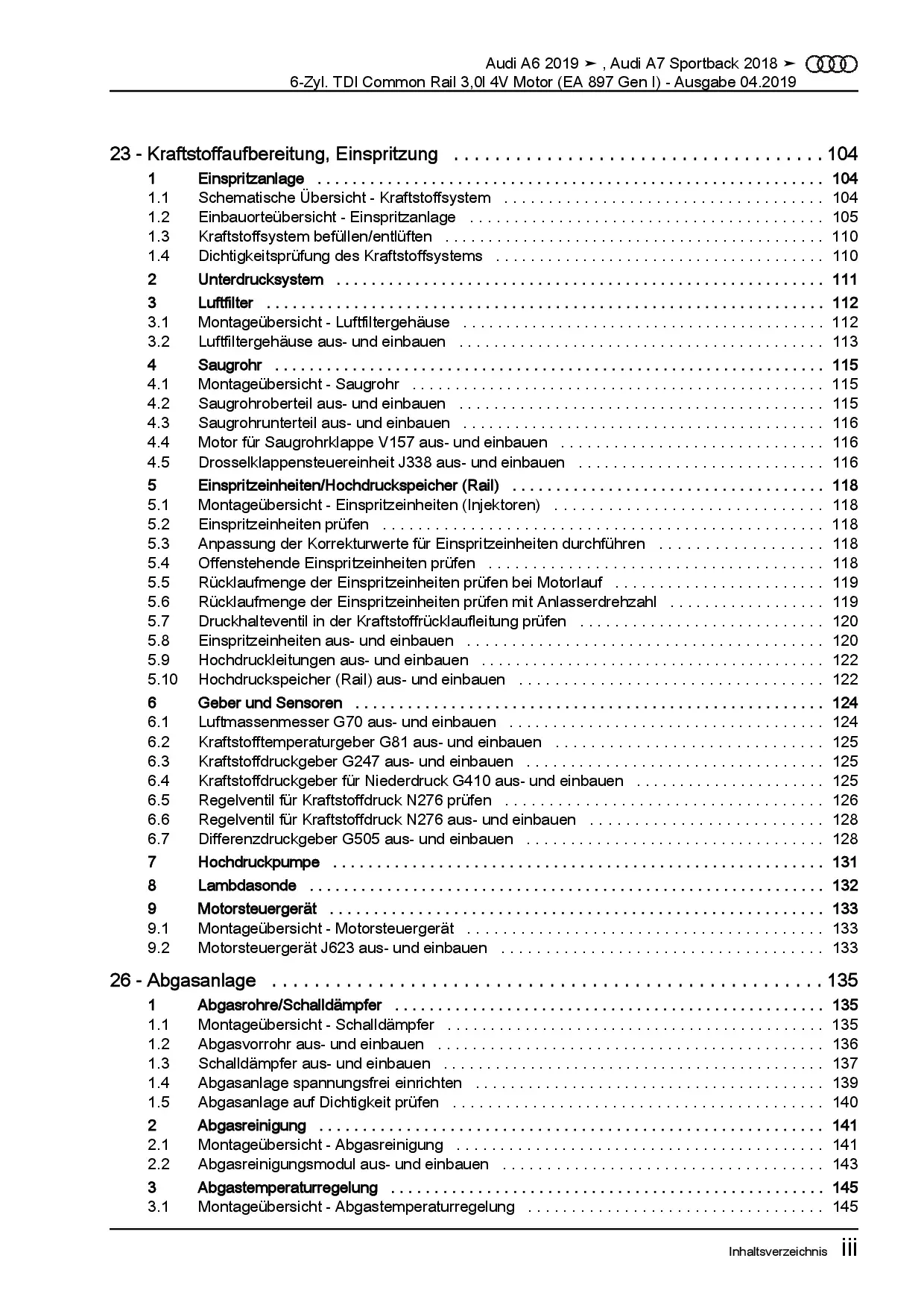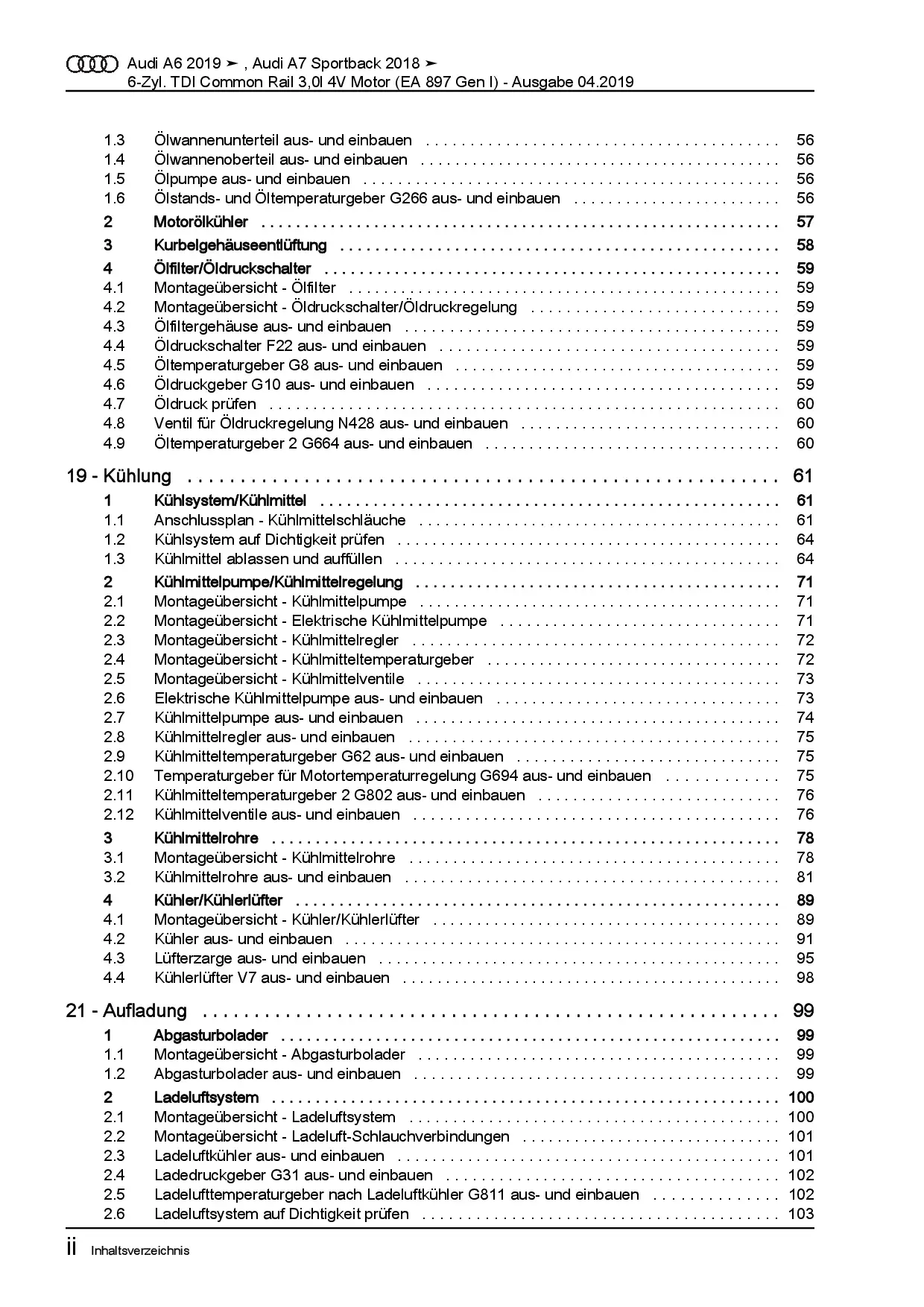 Audi A7 Typ 4K ab 2018 6-Zyl 3,0l Dieselmotor TDI 249 PS Reparaturanleitung