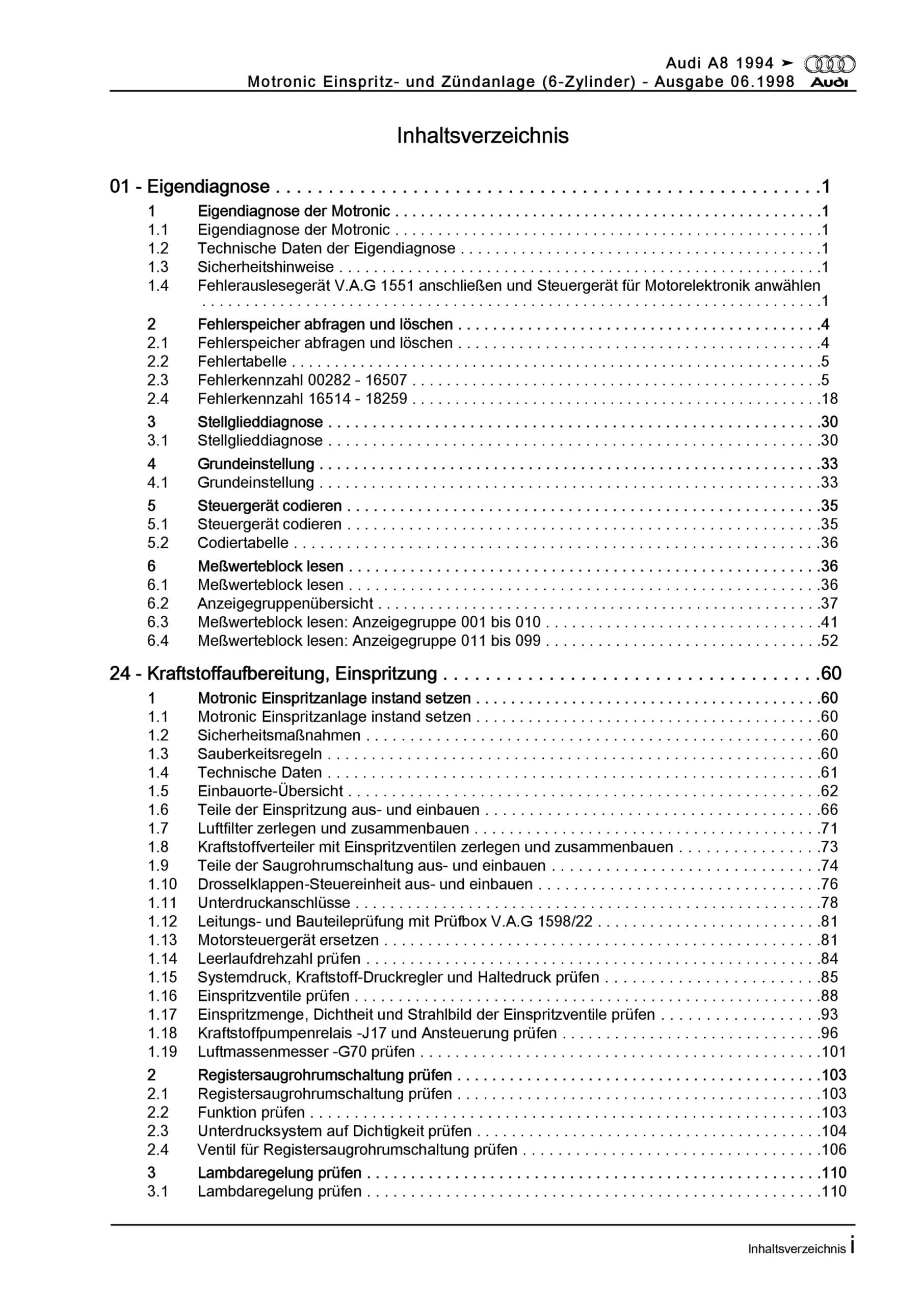 Audi A8 4D 1994-2002 Motronic Einspritz- Zündanlage 193 PS Reparaturanleitung