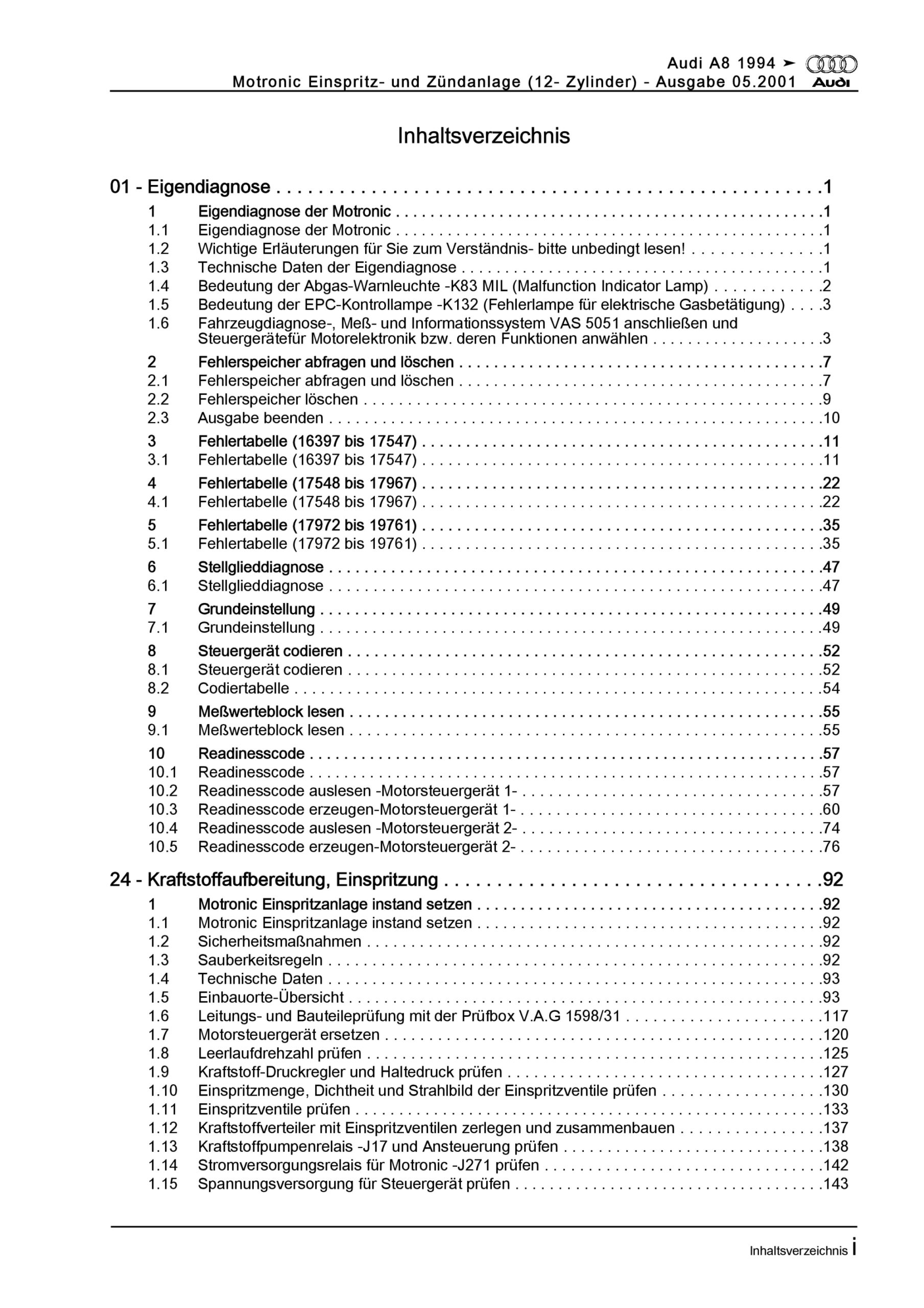 Diese Reparaturanleitung enthält detaillierte Beschreibungen zu Aus- und Einbauarbeiten, Einstell- und Prüfarbeiten sowie zahlreiche Grafiken, Bilder und Explosionszeichnungen. Die Kunststoffringbindung ermöglicht ein problemloses Umschlagen bis zu 180°.