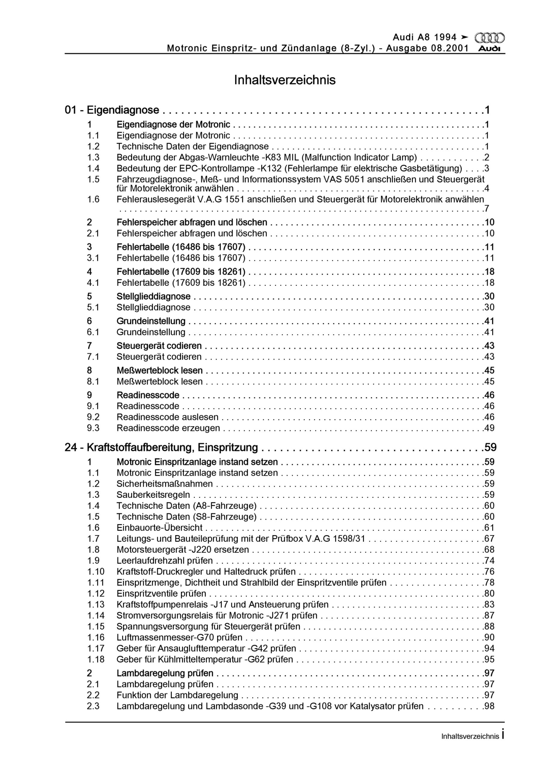 Audi A8 4D (94-02) Motronic Einspritz- Zündanlage 238-360 PS Reparaturanleitung
