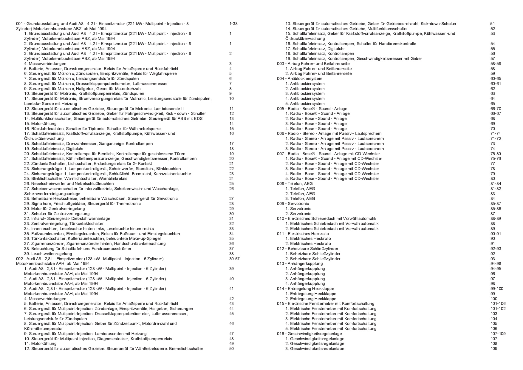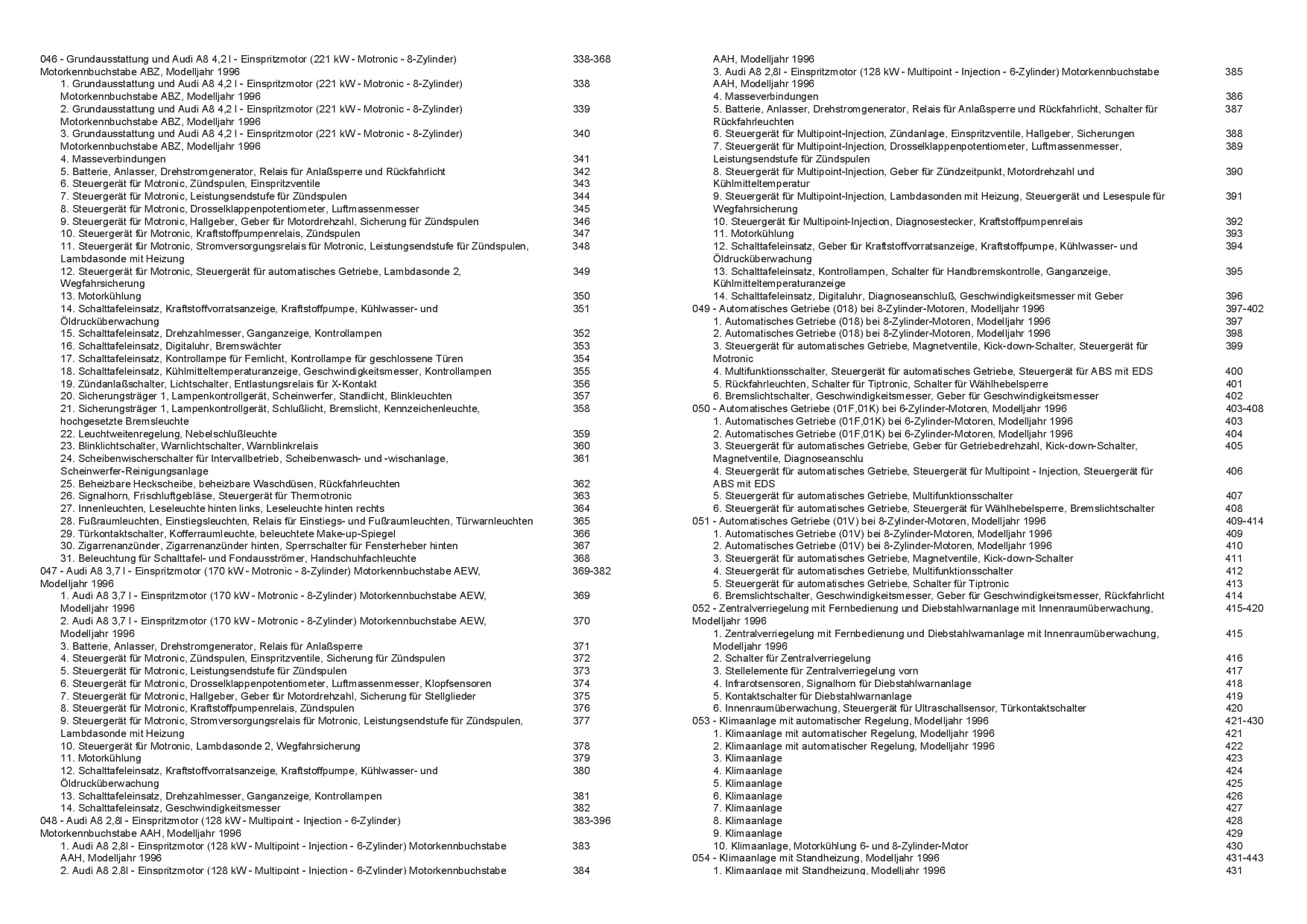 Audi A8 Typ 4D 1994-1996 Schaltplan Stromlaufplan Verkabelung Elektrik Pläne