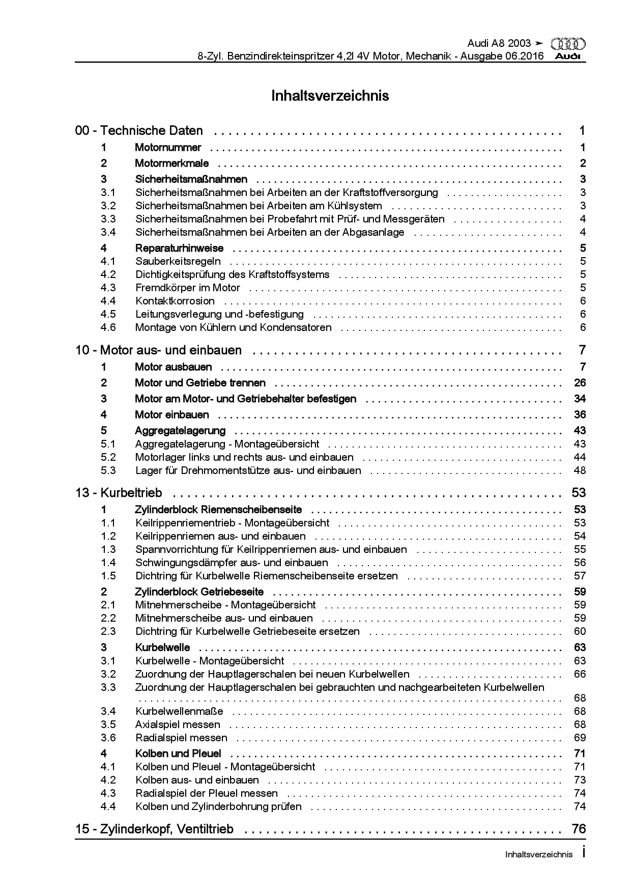 Audi A8 Typ 4E 2002-2010 4,2l Benzinmotor 349 PS Mechanik 4V Reparaturanleitung
