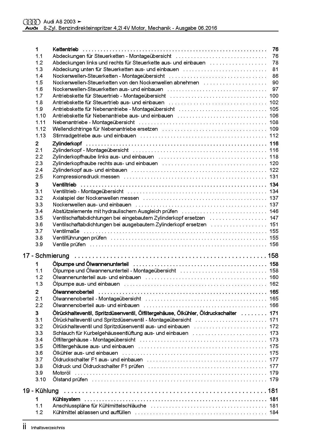 Diese Reparaturanleitung enthält detaillierte Beschreibungen zu Aus- und Einbauarbeiten, Einstell- und Prüfarbeiten sowie zahlreiche Grafiken, Bilder und Explosionszeichnungen. Die Kunststoffringbindung ermöglicht ein problemloses Umschlagen bis zu 180°.
