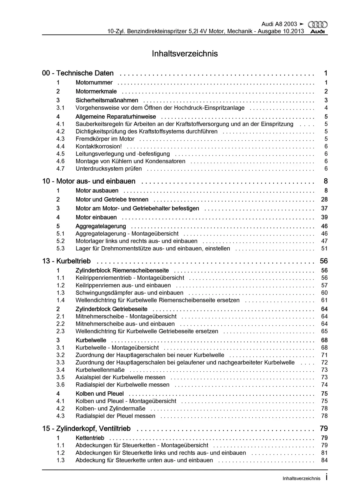 Audi A8 Typ 4E 2002-2010 5,2l Benzinmotor 450 PS Mechanik Reparaturanleitung