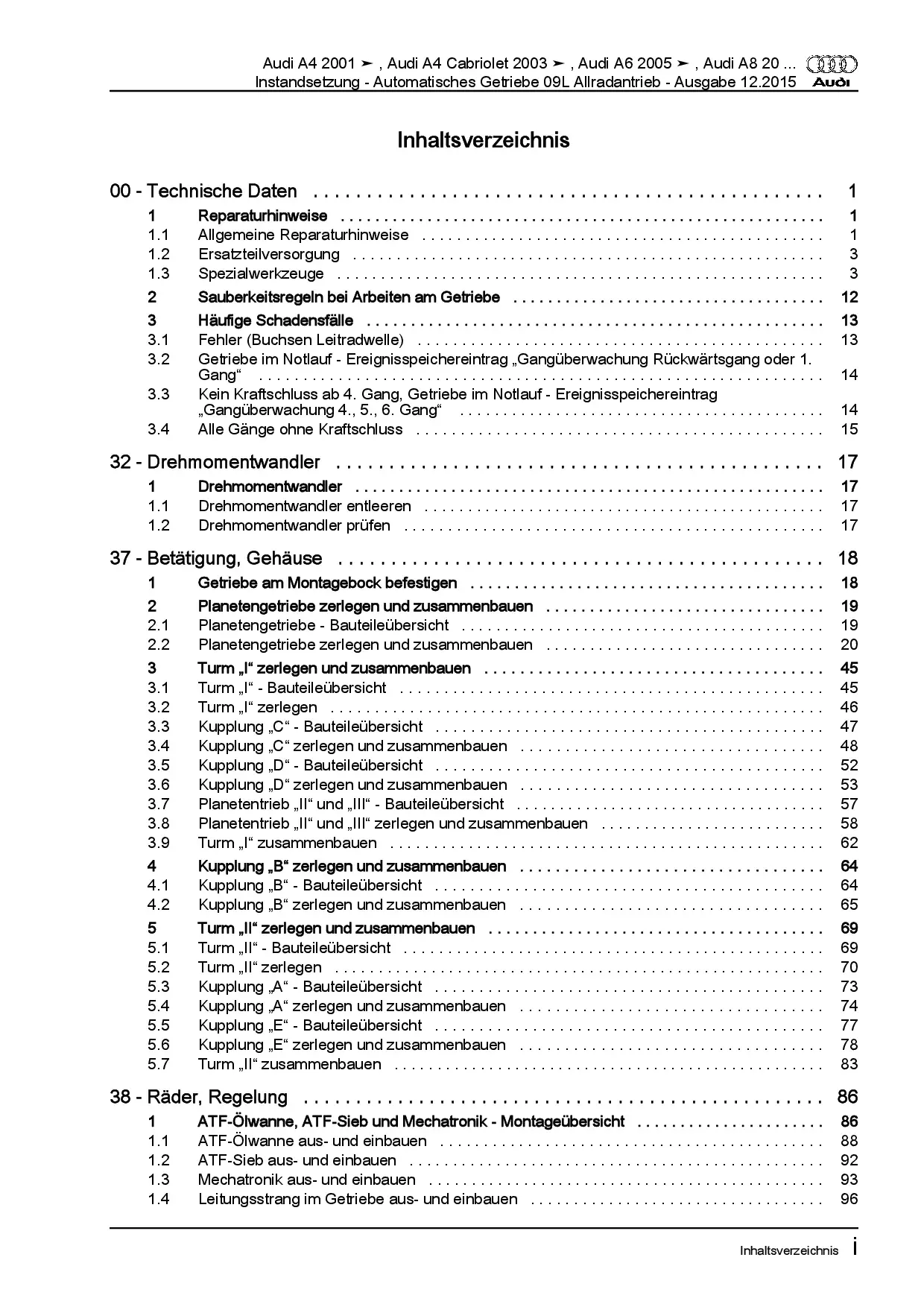 Diese Reparaturanleitung enthält detaillierte Beschreibungen zu Aus- und Einbauarbeiten, Einstell- und Prüfarbeiten sowie zahlreiche Grafiken, Bilder und Explosionszeichnungen. Die Kunststoffringbindung ermöglicht ein problemloses Umschlagen bis zu 180°.