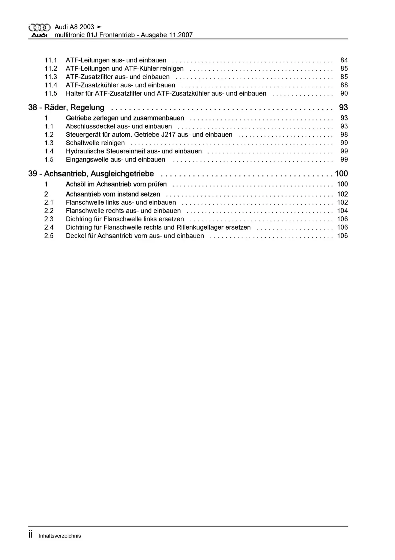 Audi A8 Typ 4E 2002-2010 Multitronic Automatikgetriebe 01J Reparaturanleitung