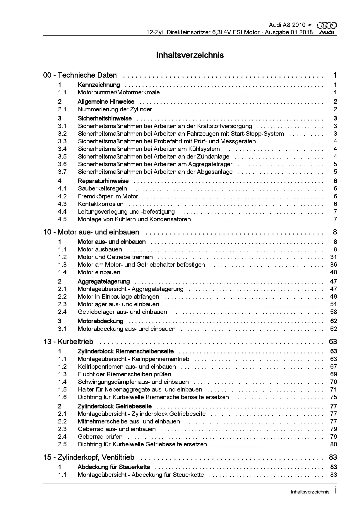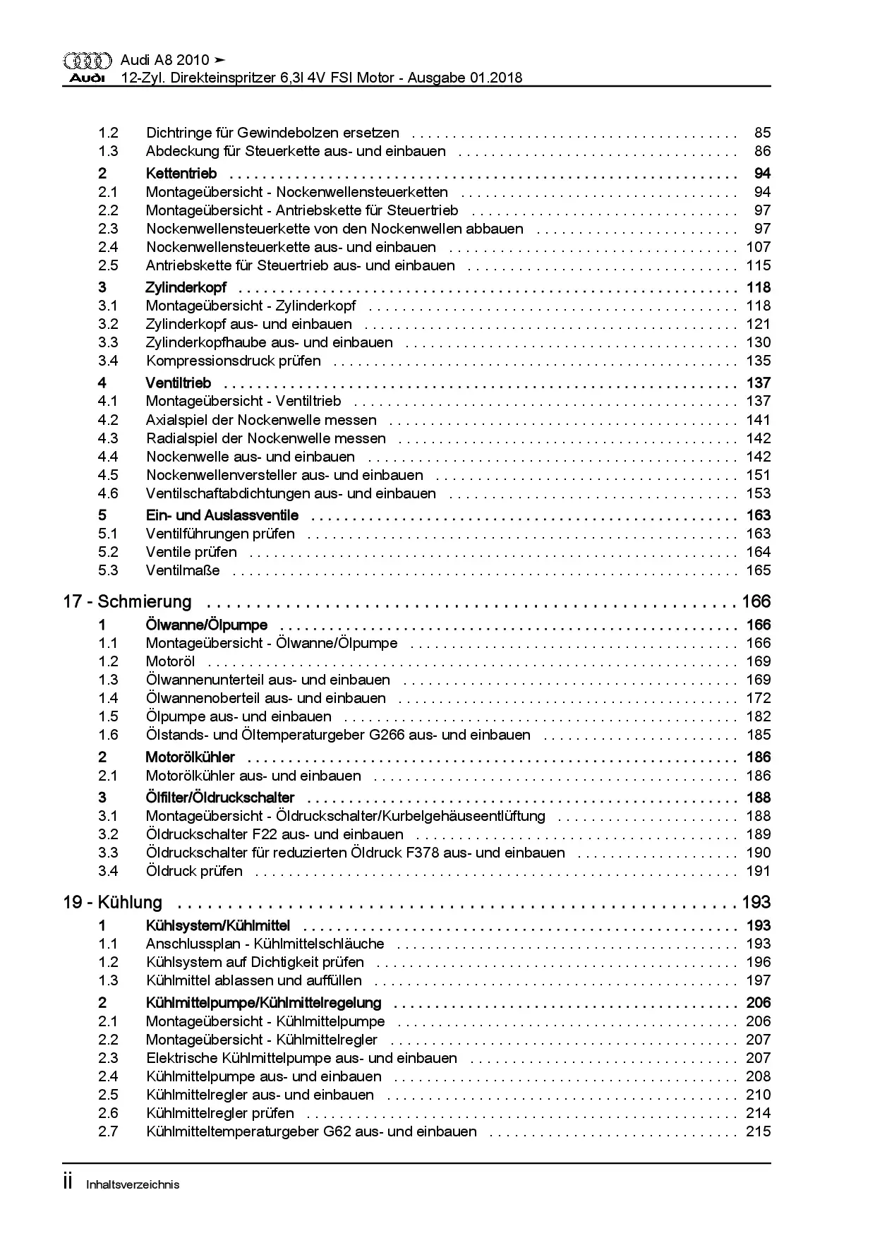 Diese Reparaturanleitung enthält detaillierte Beschreibungen zu Aus- und Einbauarbeiten, Einstell- und Prüfarbeiten sowie zahlreiche Grafiken, Bilder und Explosionszeichnungen. Die Kunststoffringbindung ermöglicht ein problemloses Umschlagen bis zu 180°.