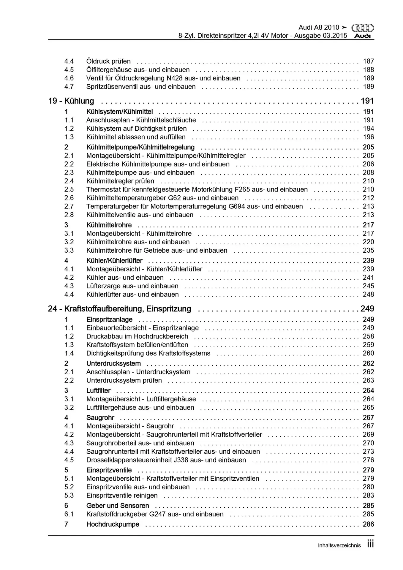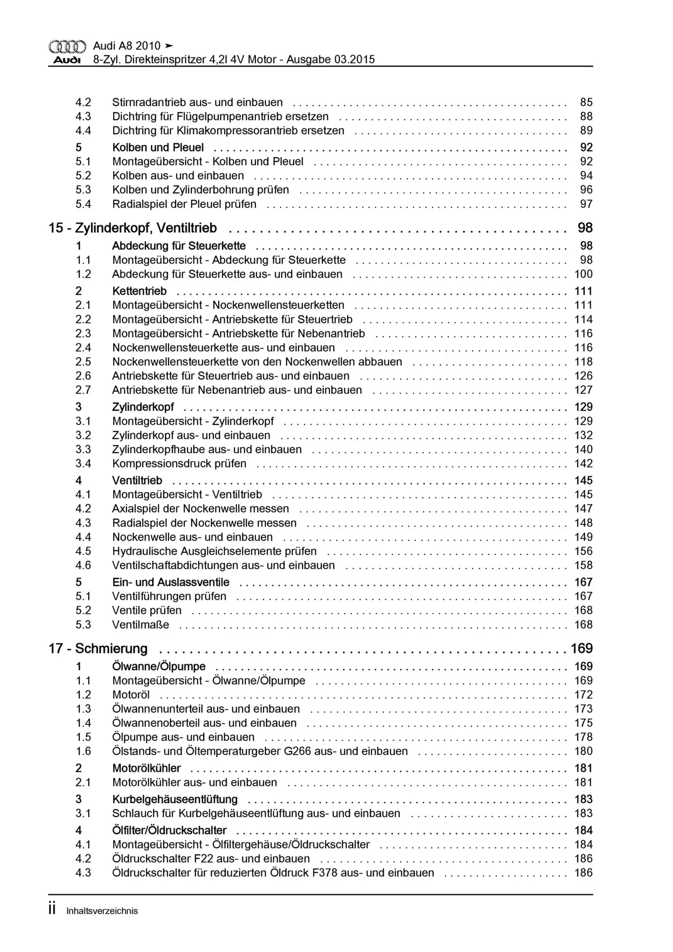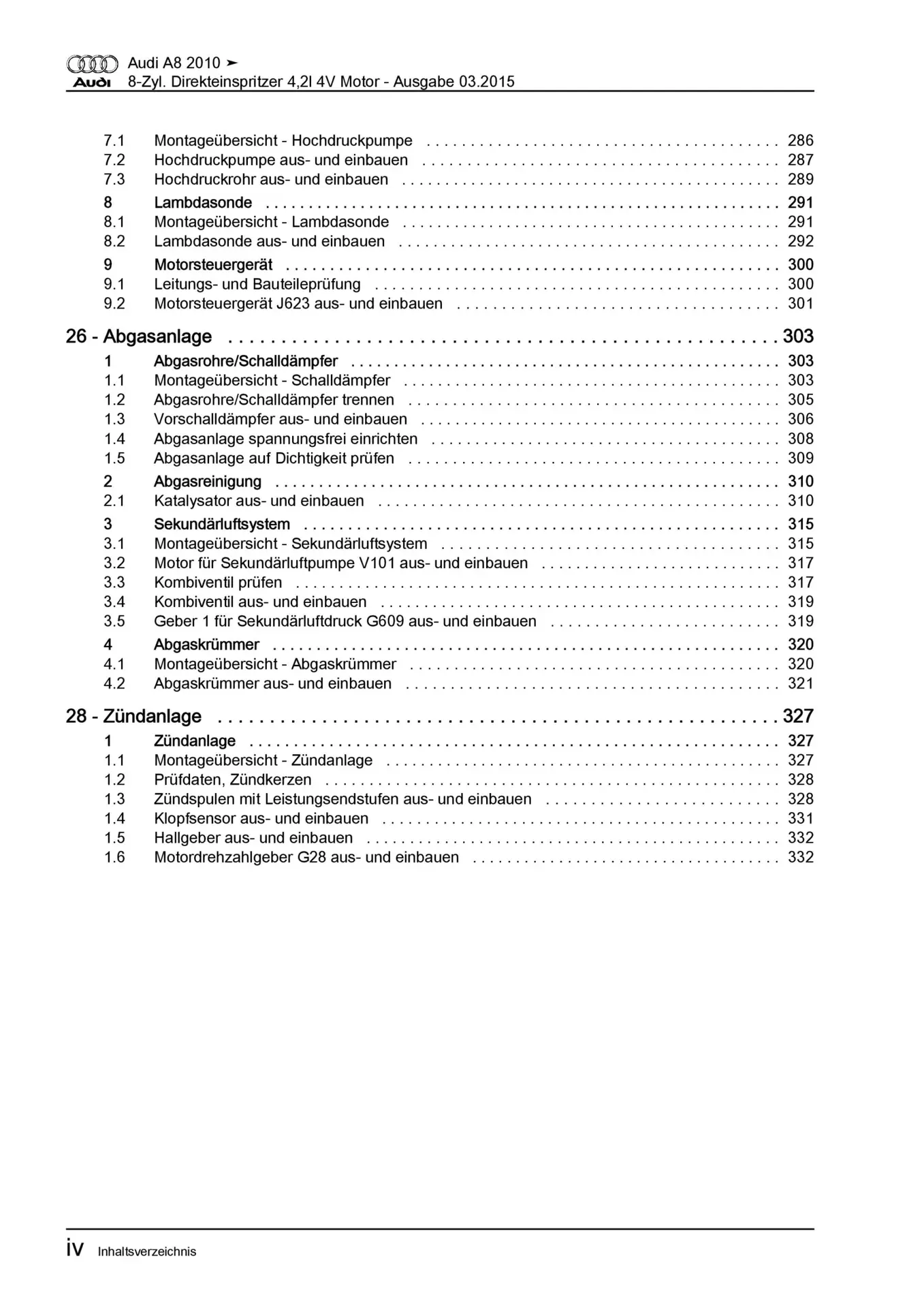 Audi A8 Typ 4H 2010-2017 8-Zyl. 4,2l Benzinmotor 371 PS Reparaturanleitung
