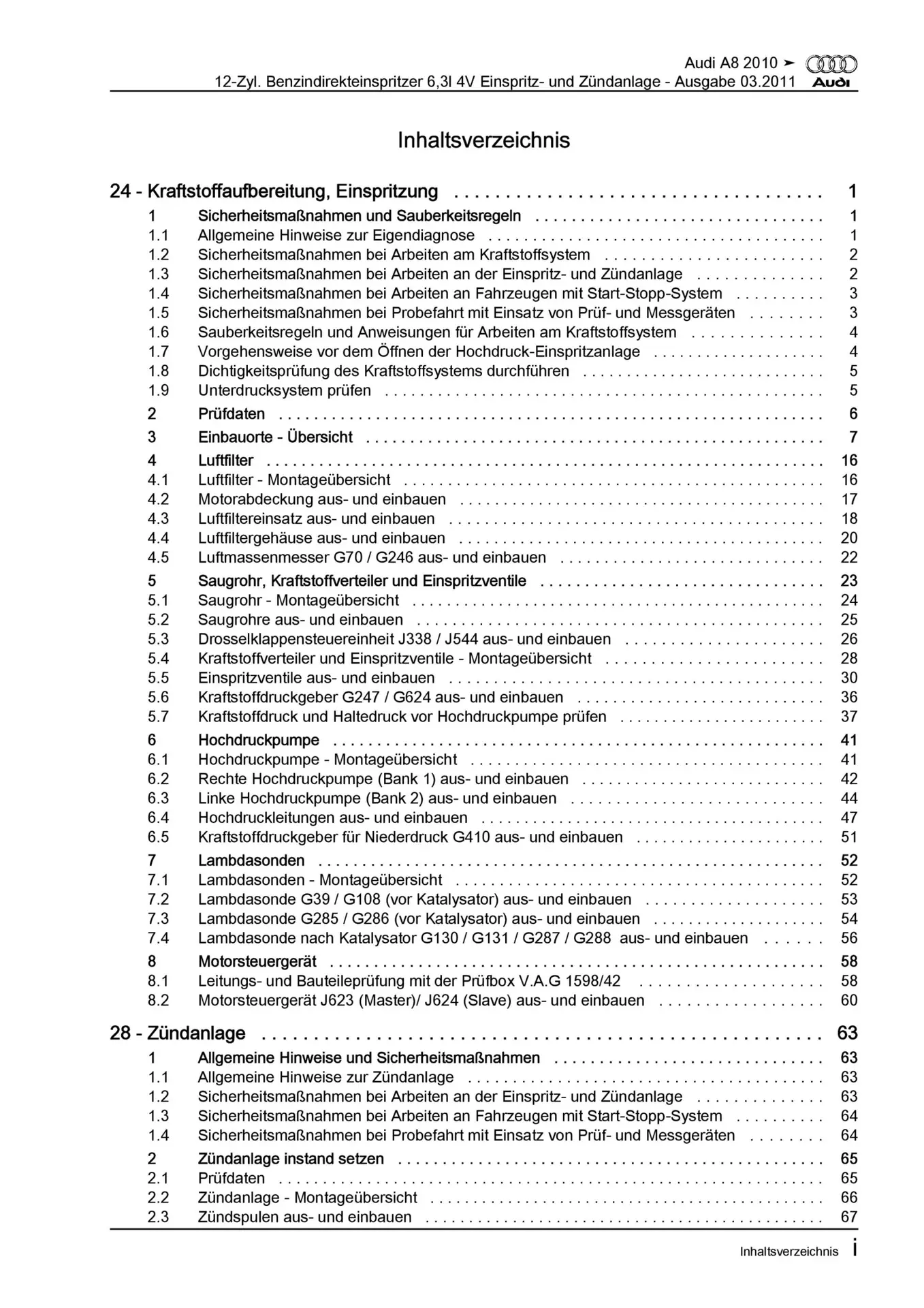 Audi A8 Typ 4H 2010-2017 Benzin Einspritz- Zündanlage 500 PS Reparaturanleitung