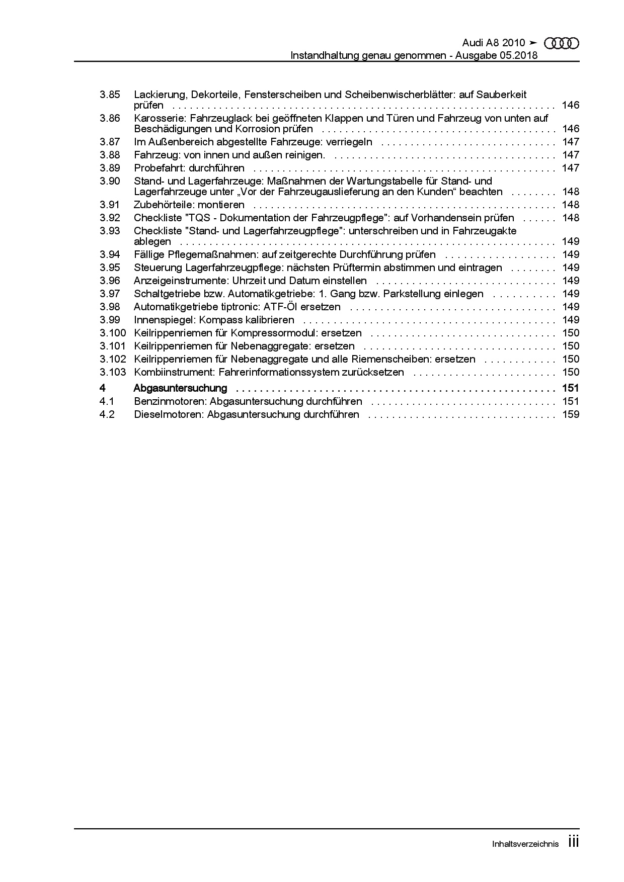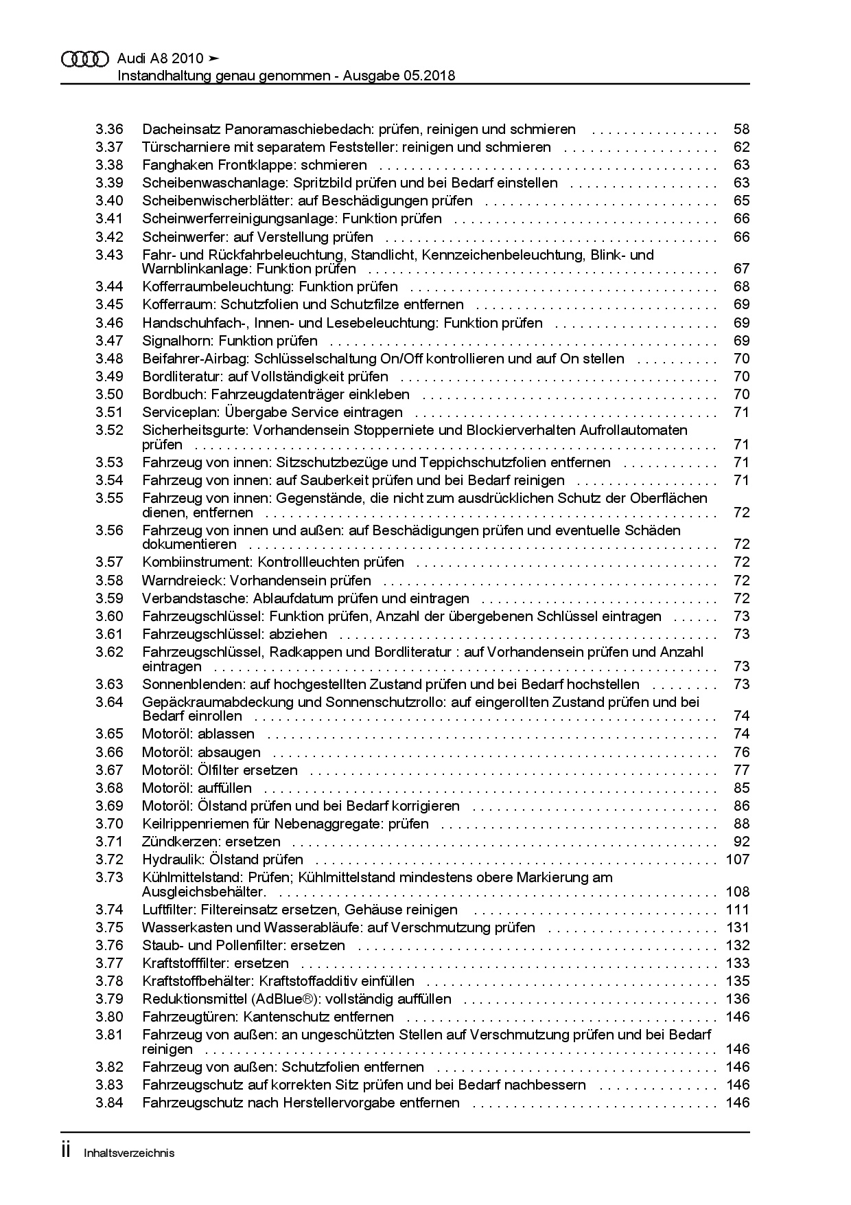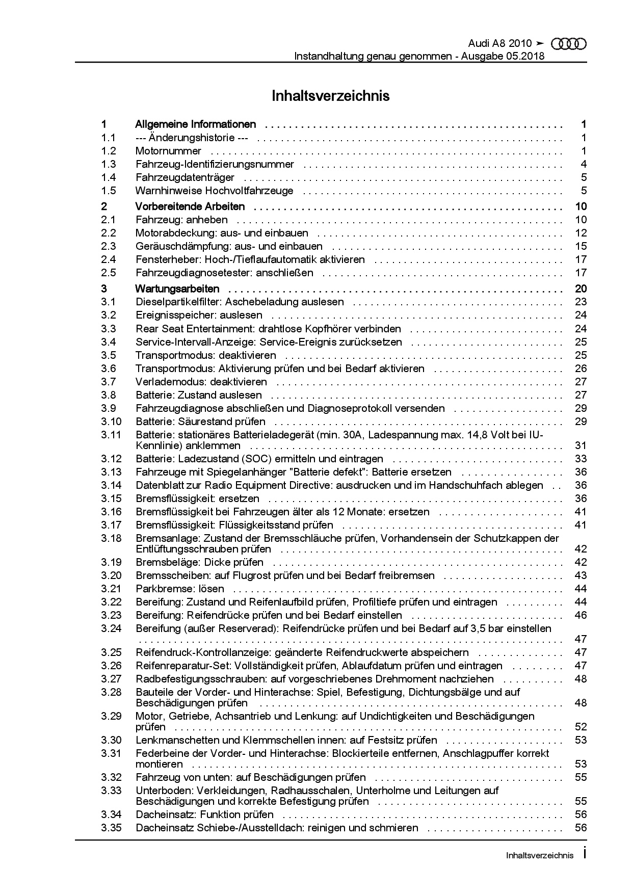 Audi A8 Typ 4H 2010-2017 Instandhaltung Inspektion Wartung Reparaturanleitung