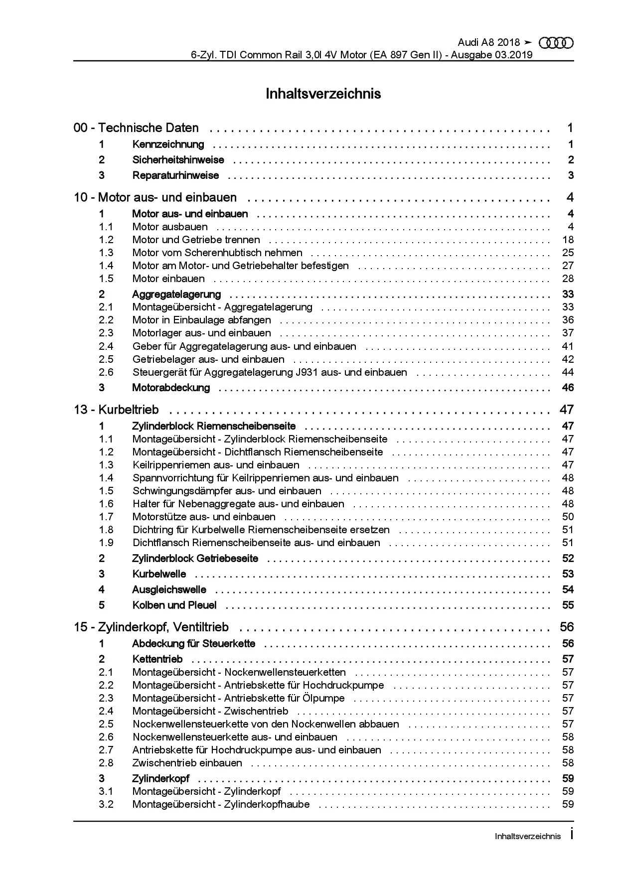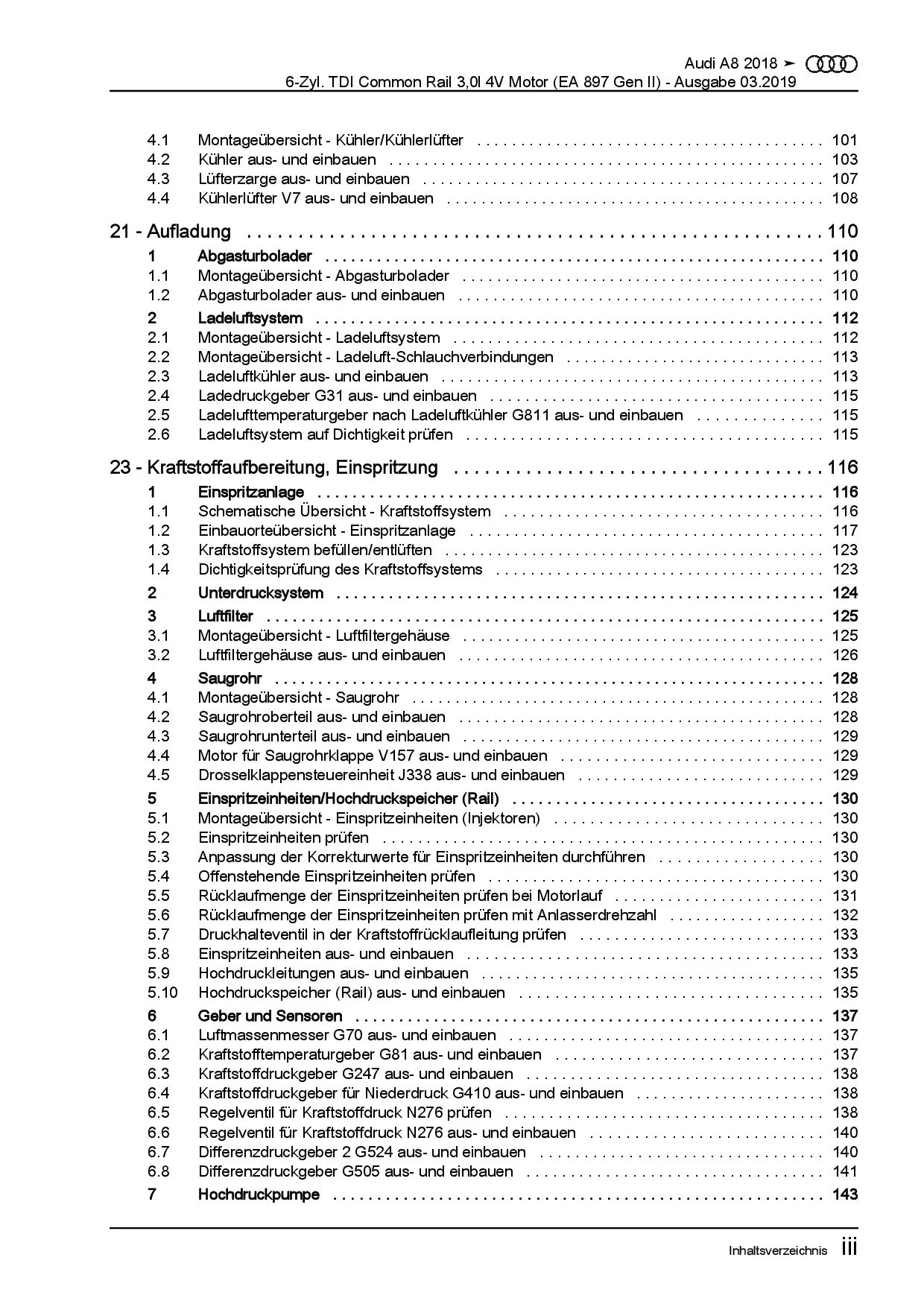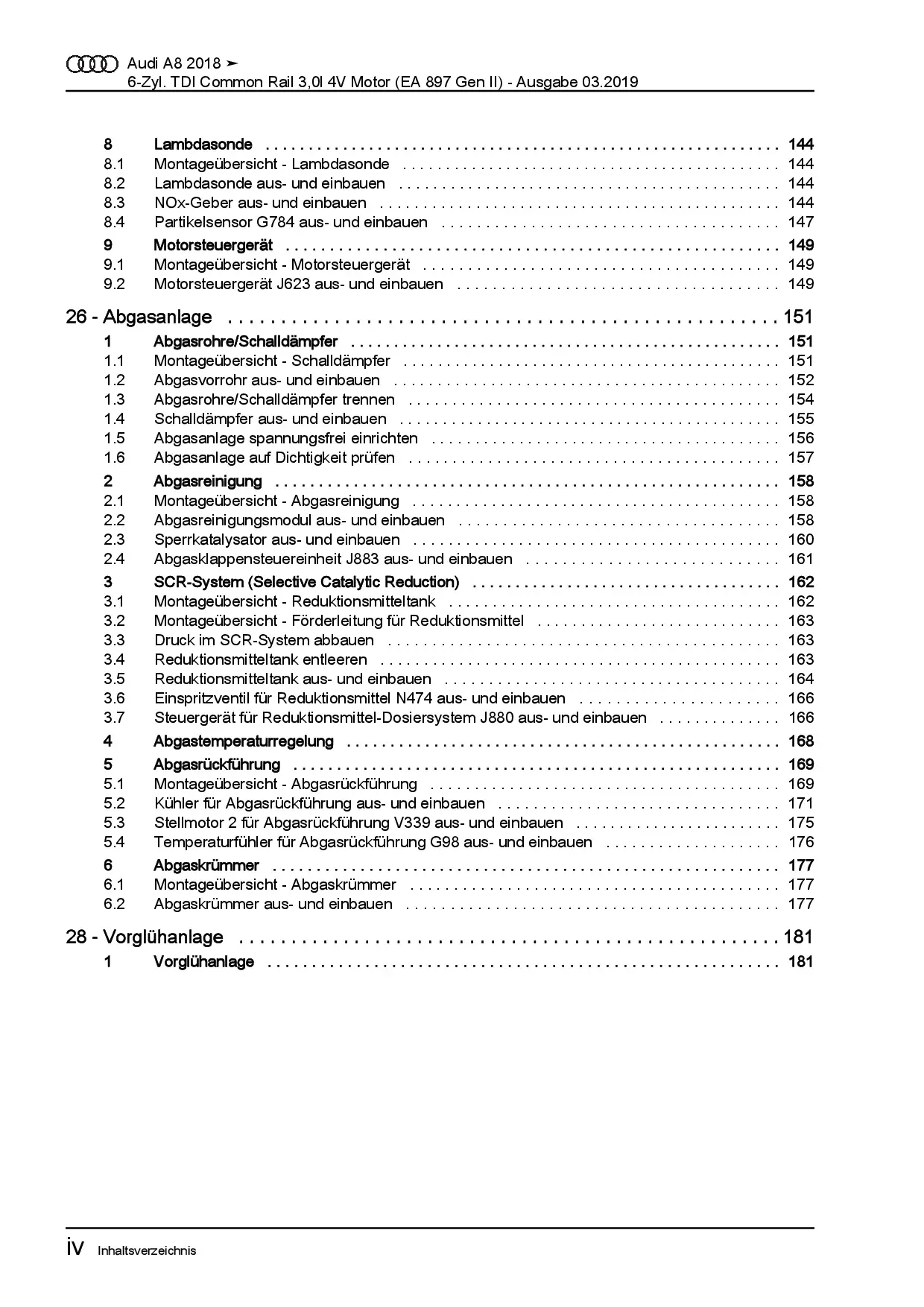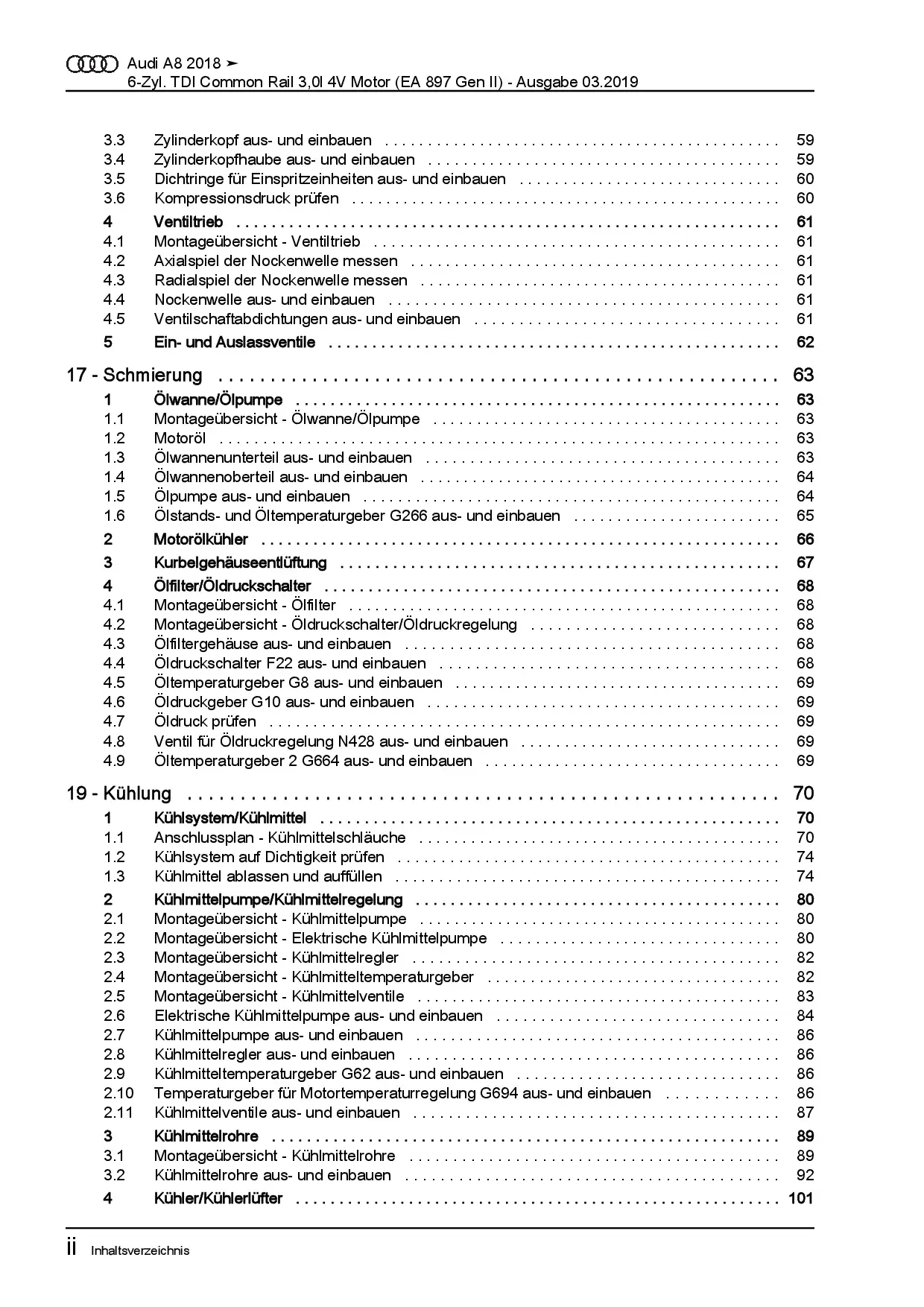Audi A8 Typ 4N ab 2017 Dieselmotor 6-Zyl. 3,0l TDI DDVC Reparaturanleitung