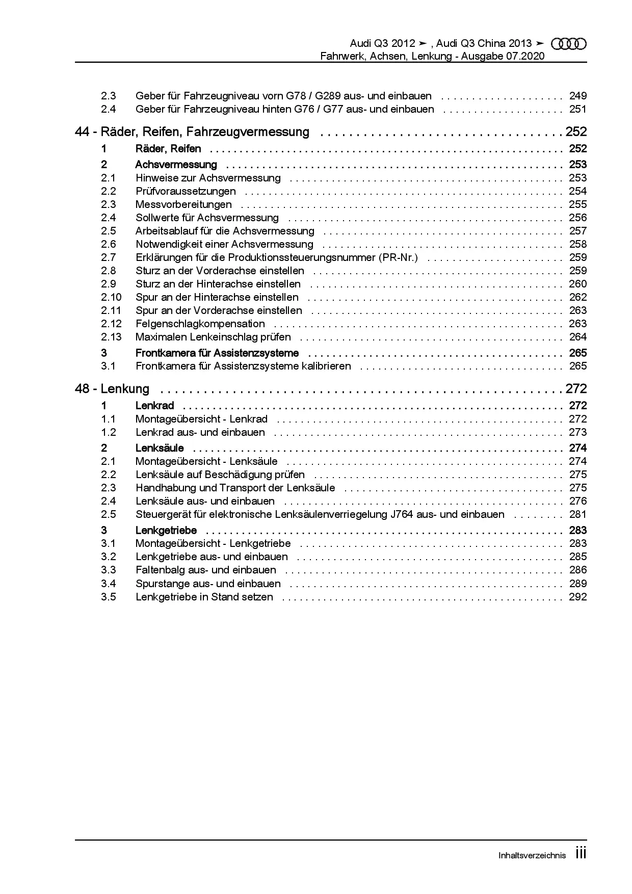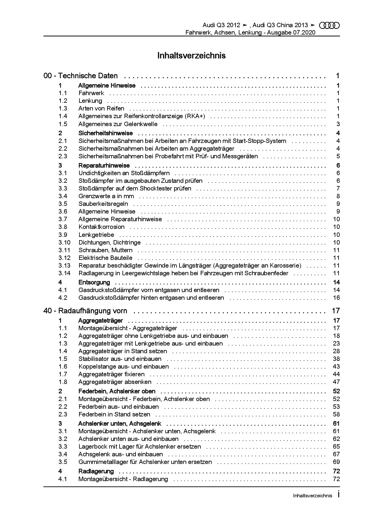 Audi Q3 Typ 8U 2011-2018 Fahrwerk Achsen Lenkung Reparaturanleitung