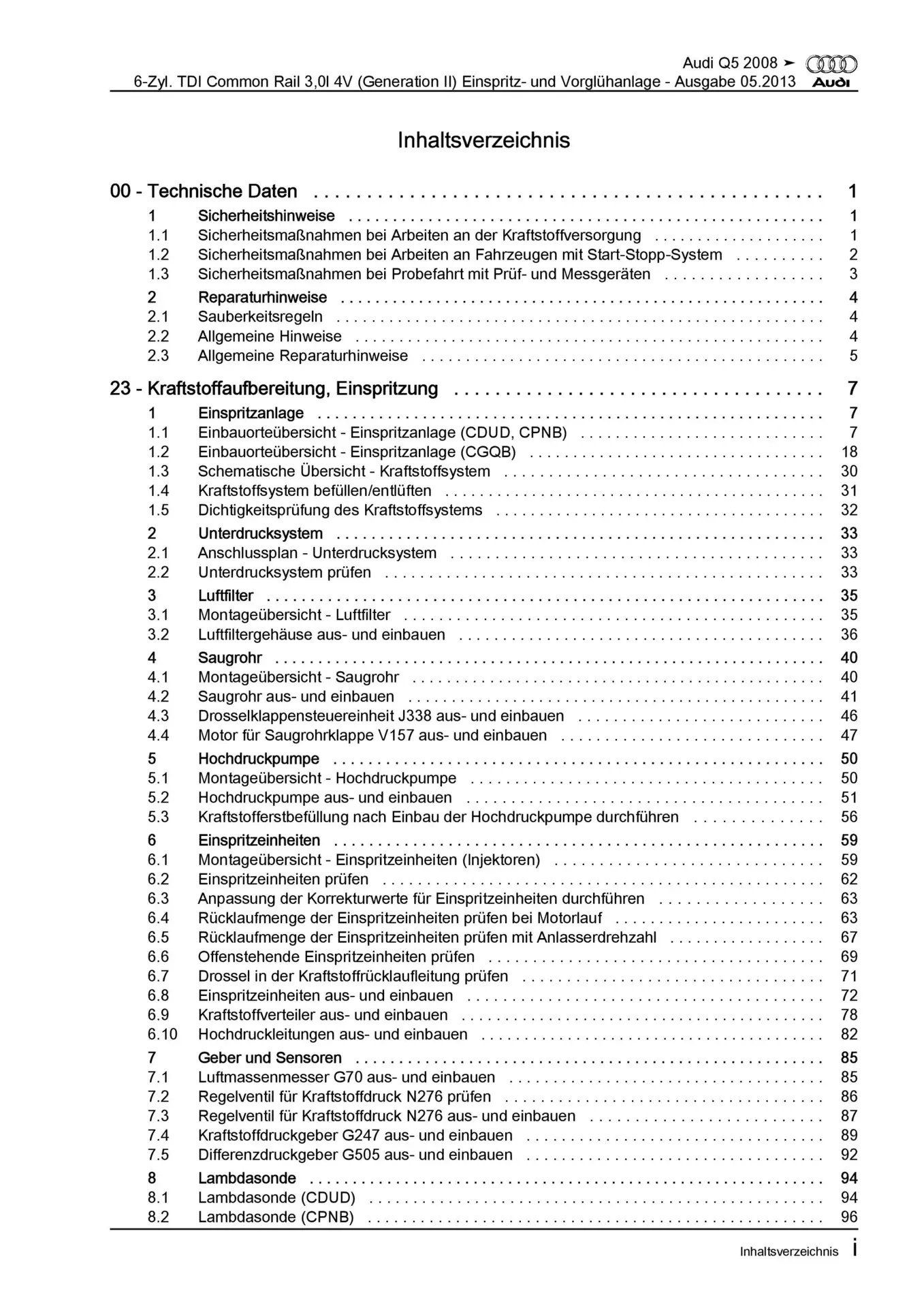 Audi Q5 8R (08-17) Diesel Einspritz- Vorglühanlage 239-313 PS Reparaturanleitung