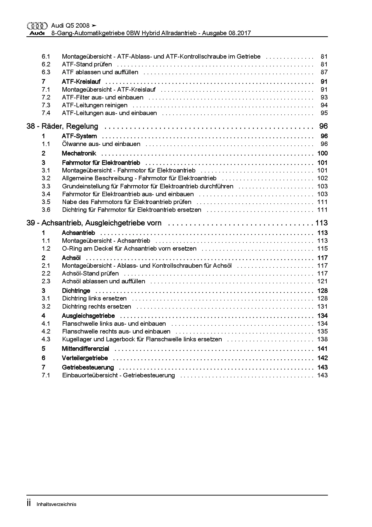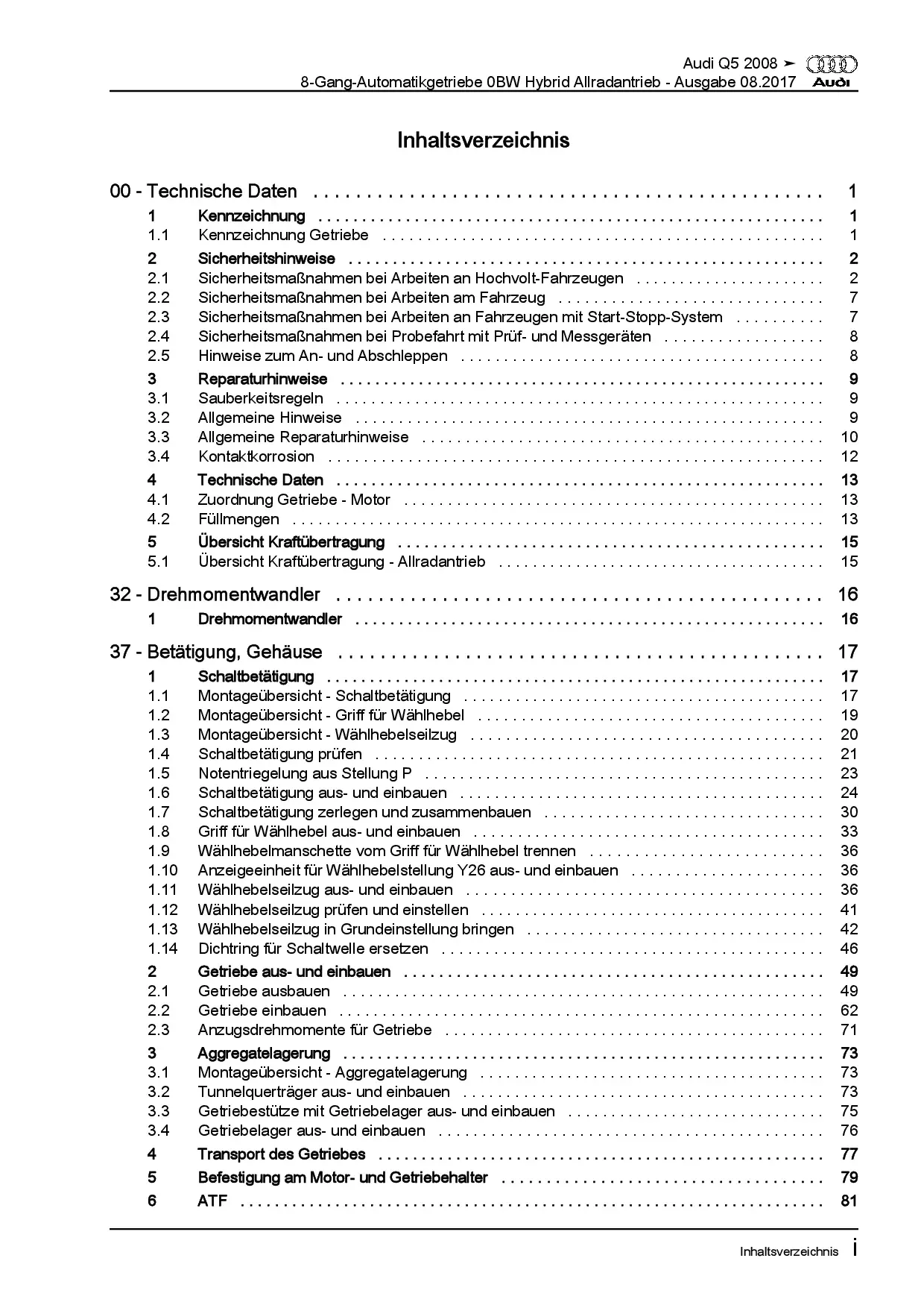Audi Q5 Typ 8R 2008-2017 8 Gang Automatikgetriebe 0BW Hybrid Reparaturanleitung