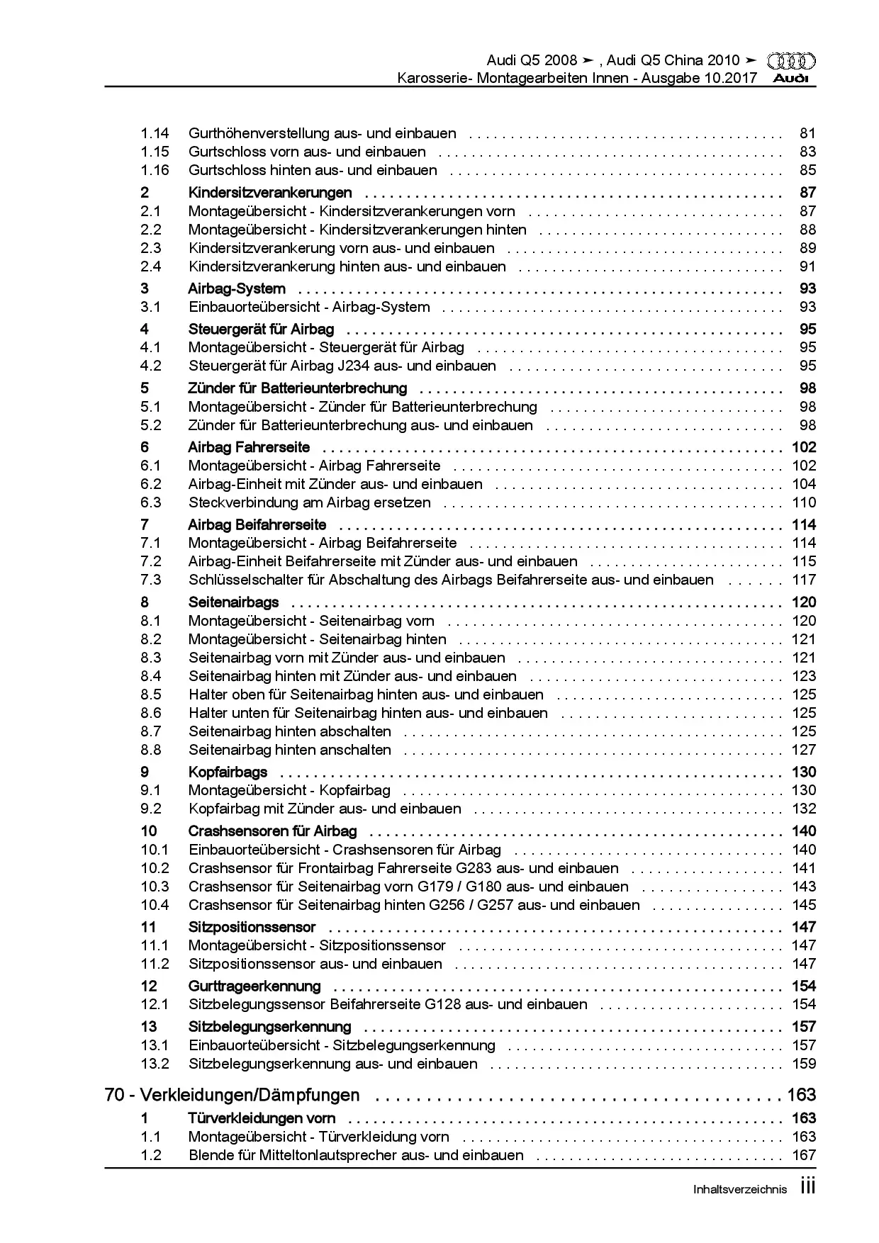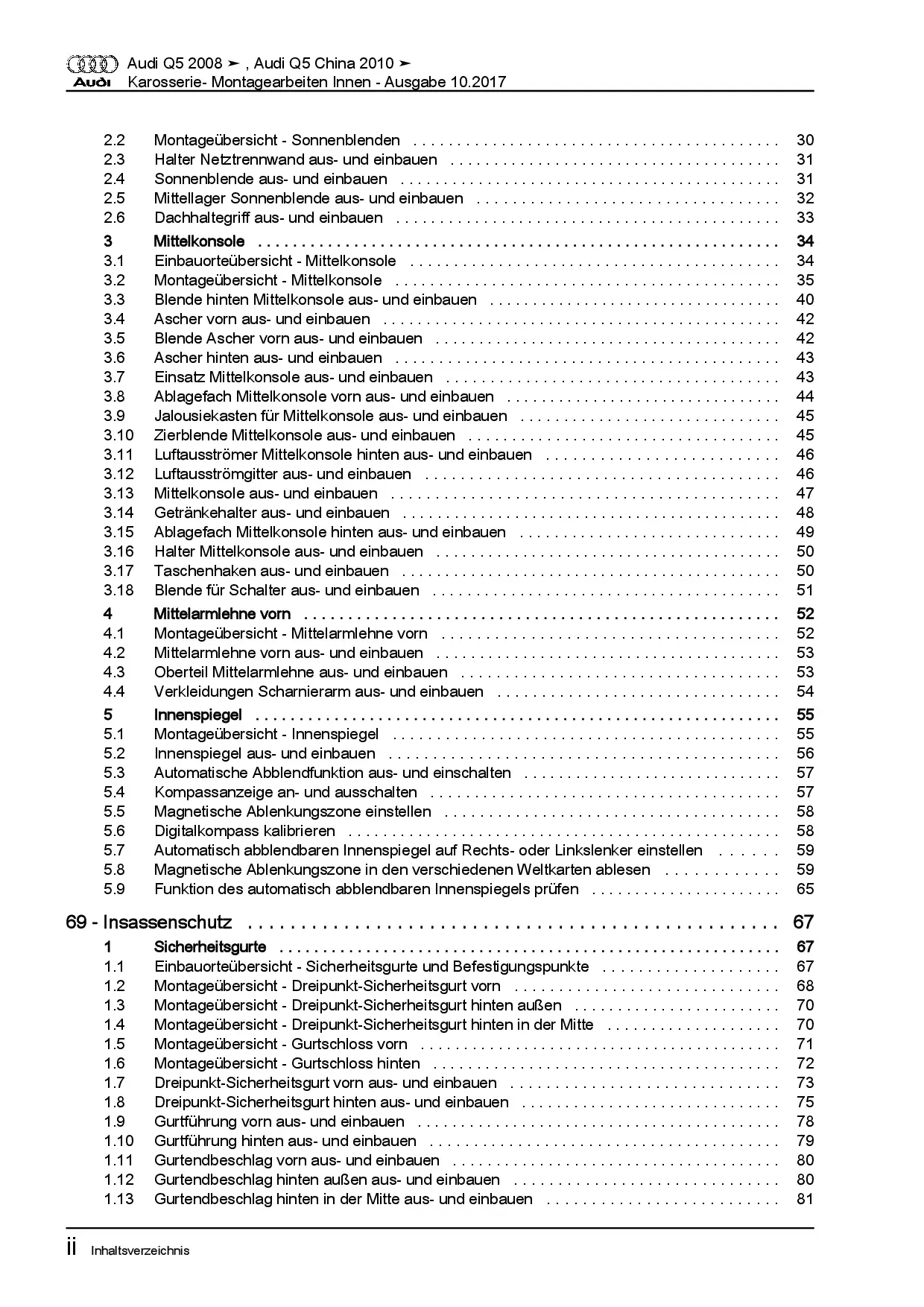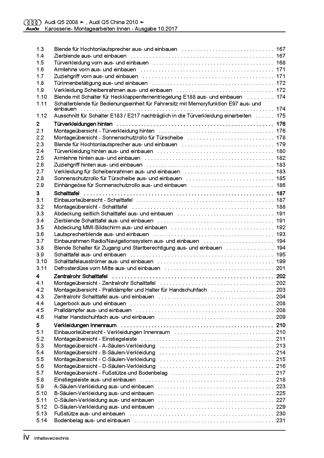 Audi Q5 Typ 8R 2008-2017 Karosserie Montagearbeiten Innen Reparaturanleitung