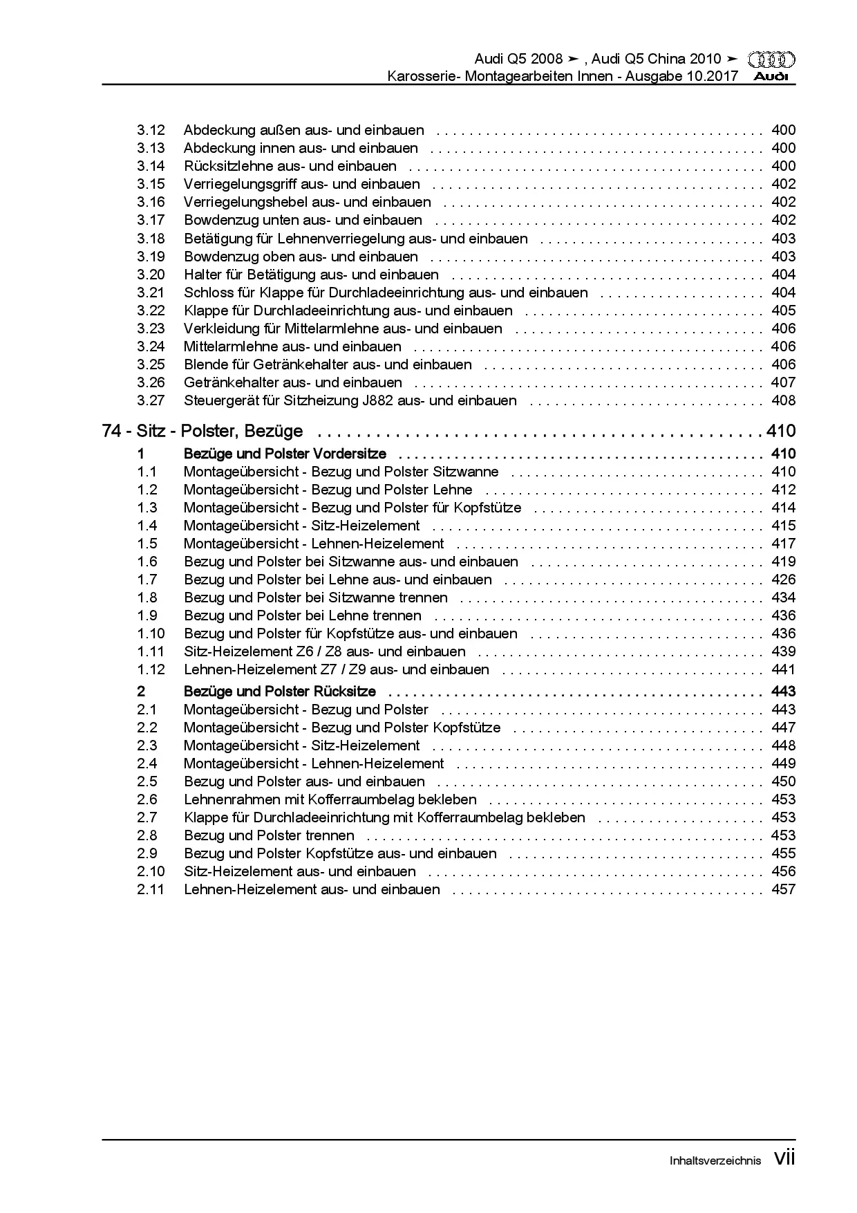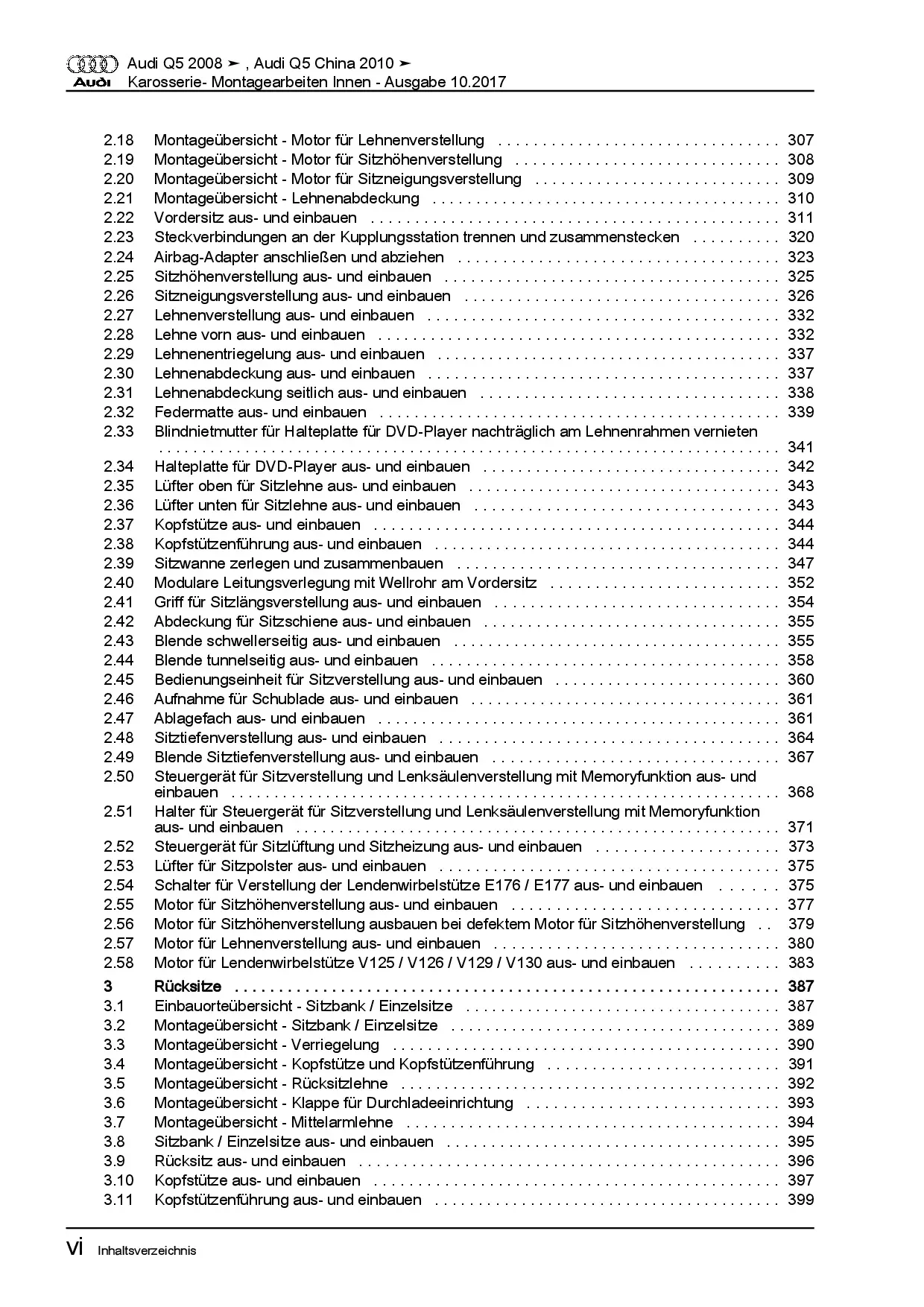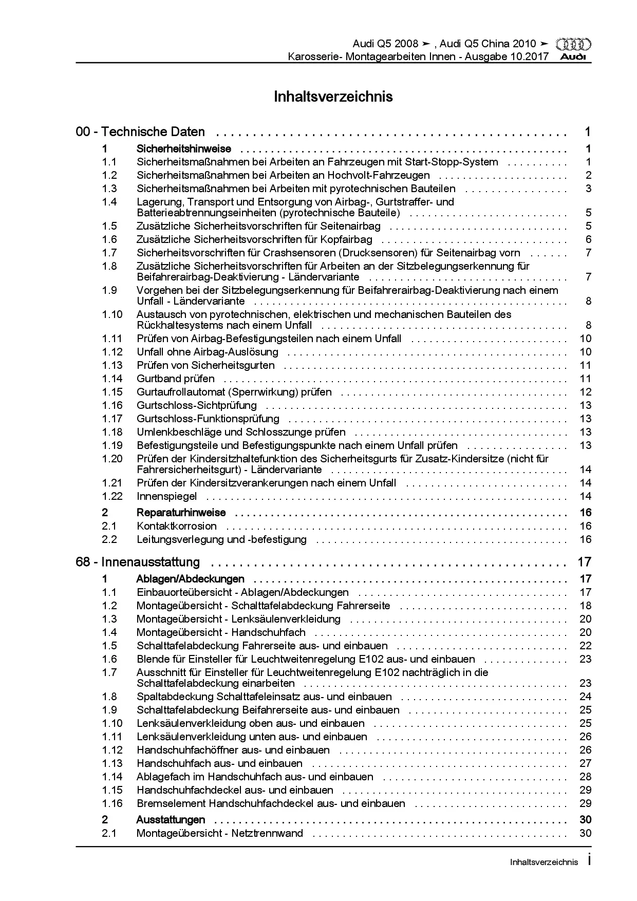 Audi Q5 Typ 8R 2008-2017 Karosserie Montagearbeiten Innen Reparaturanleitung