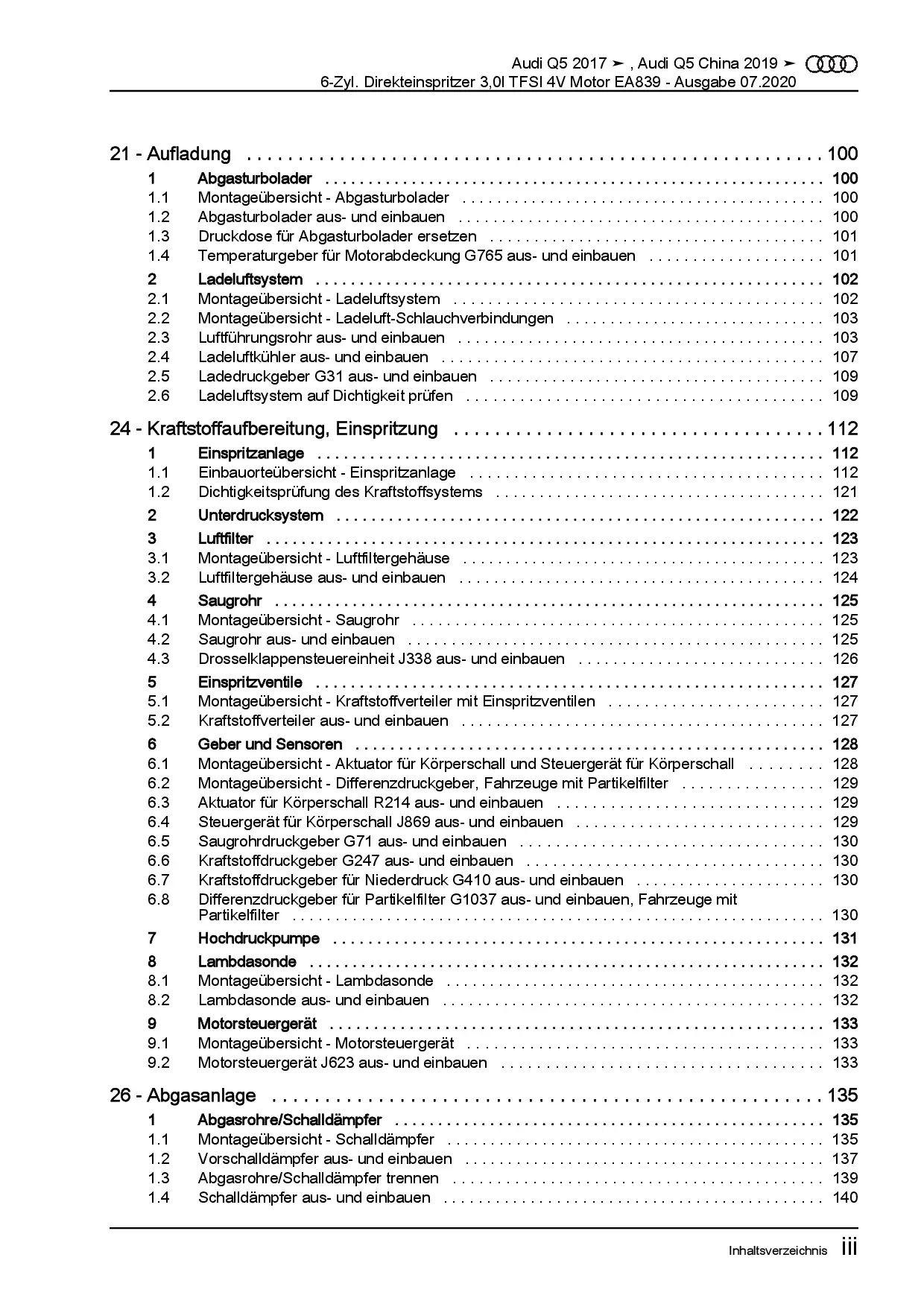 Diese Reparaturanleitung enthält detaillierte Beschreibungen zu Aus- und Einbauarbeiten, Einstell- und Prüfarbeiten sowie zahlreiche Grafiken, Bilder und Explosionszeichnungen. Die Kunststoffringbindung ermöglicht ein problemloses Umschlagen bis zu 180°.
