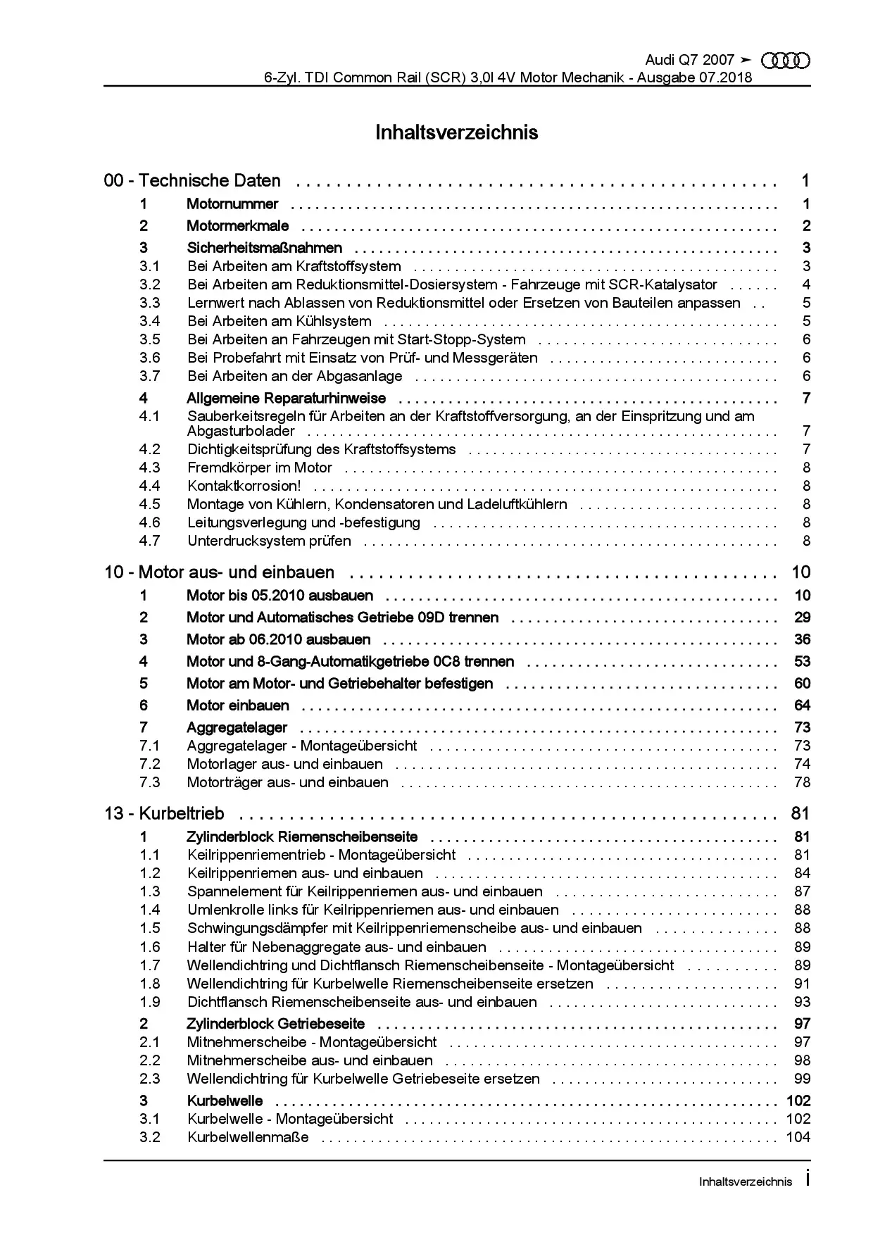 Der Audi Q7 Reparaturleitfaden ist ein lizenzierter Nachdruck der originalen Werkstattunterlagen. Diese Anleitung wird von Vertragswerkstätten verwendet und enthält alle technischen Informationen für fachgerechte Reparaturen.