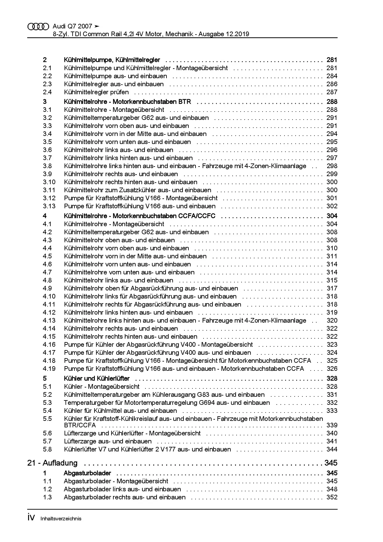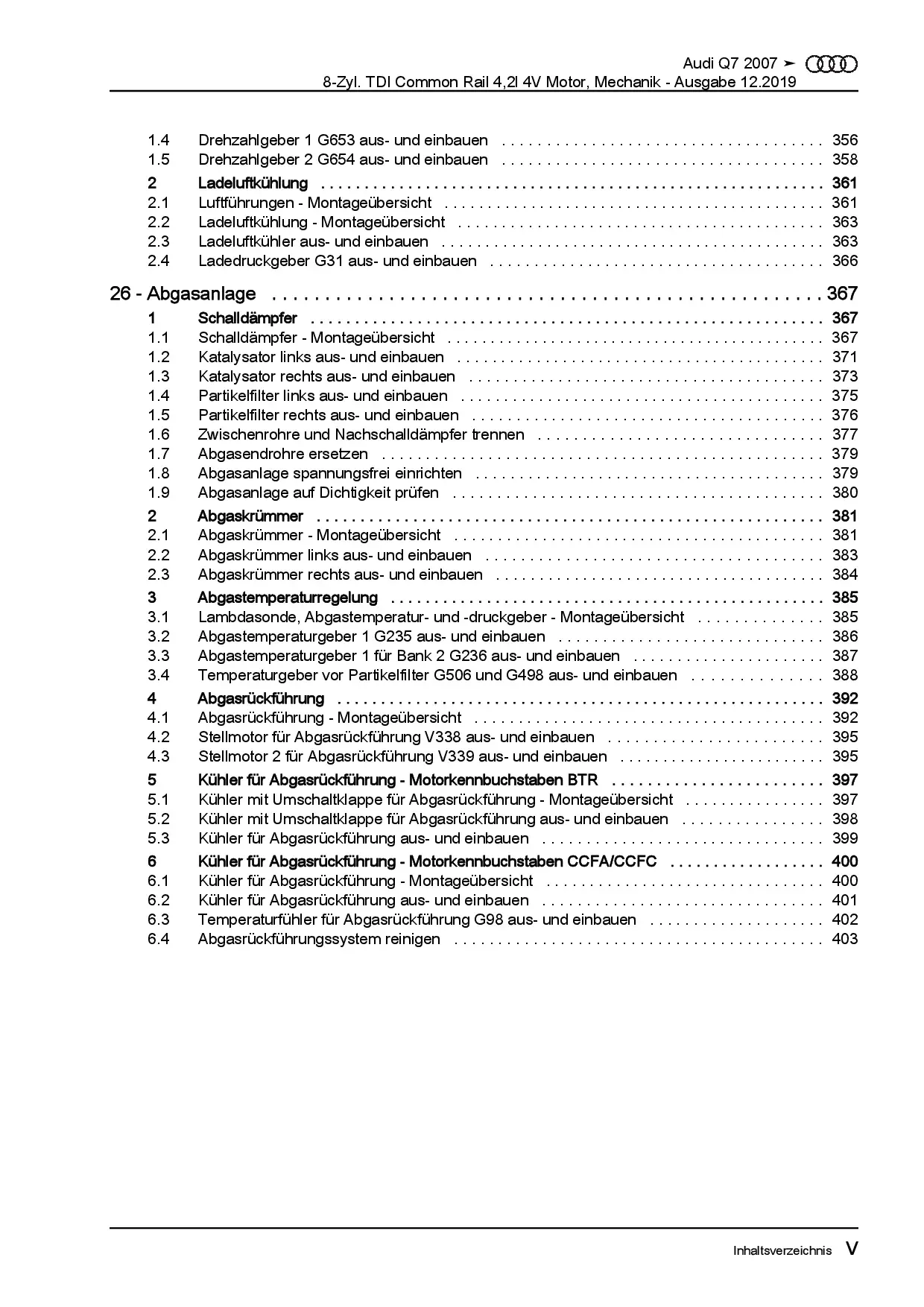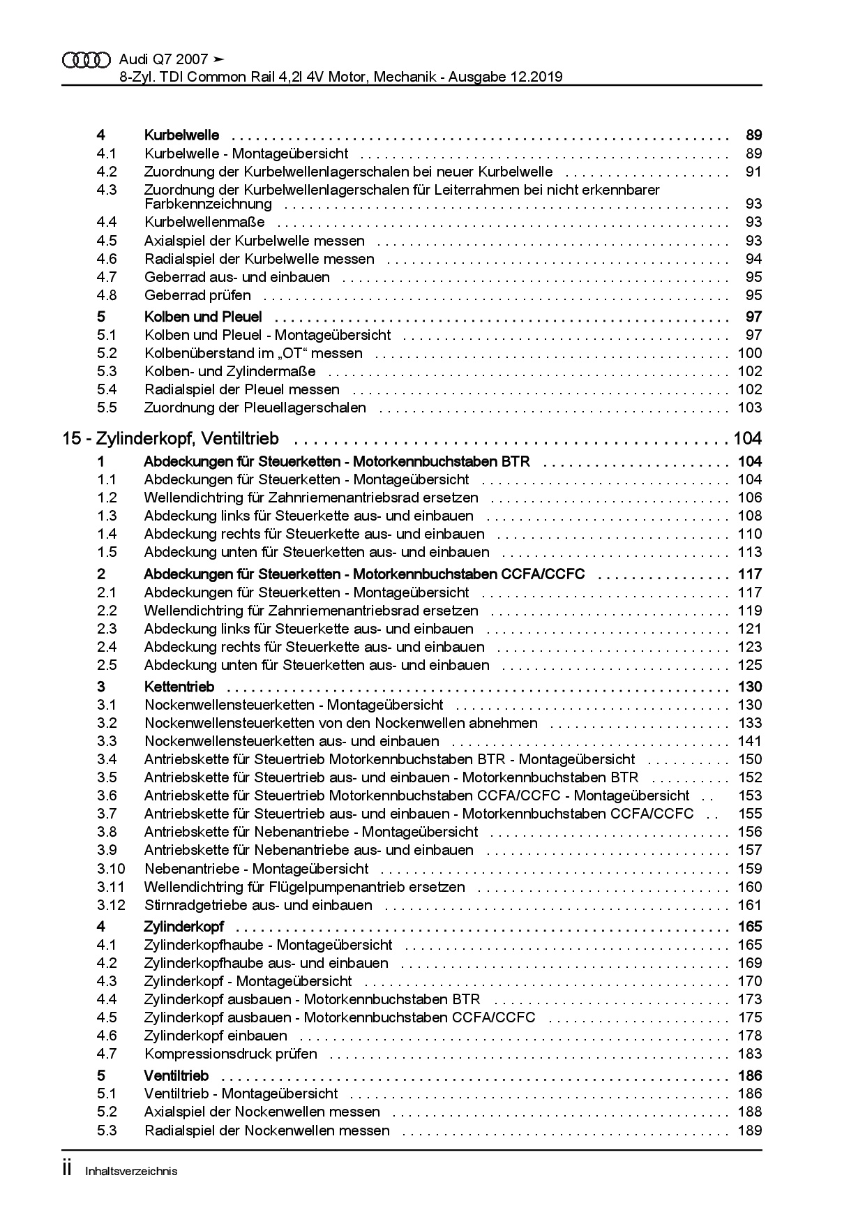 Audi Q7 Typ 4L (05-15) 8-Zyl. Dieselmotor 326-340 PS Mechanik Reparaturanleitung