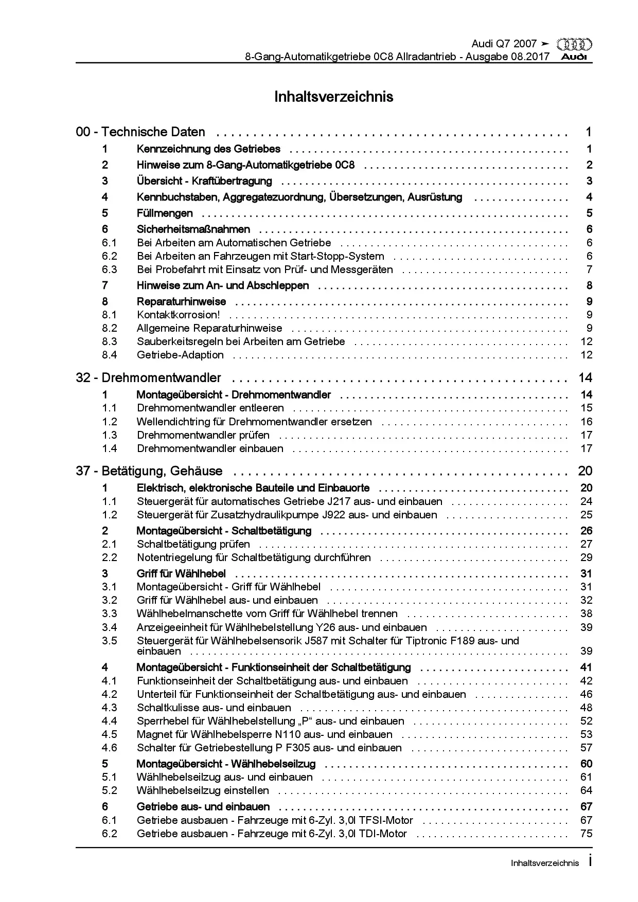 Der Audi Q7 Reparaturleitfaden ist ein lizenzierter Nachdruck der originalen Werkstattunterlagen. Diese Anleitung wird von Vertragswerkstätten verwendet und enthält alle technischen Informationen für fachgerechte Reparaturen.