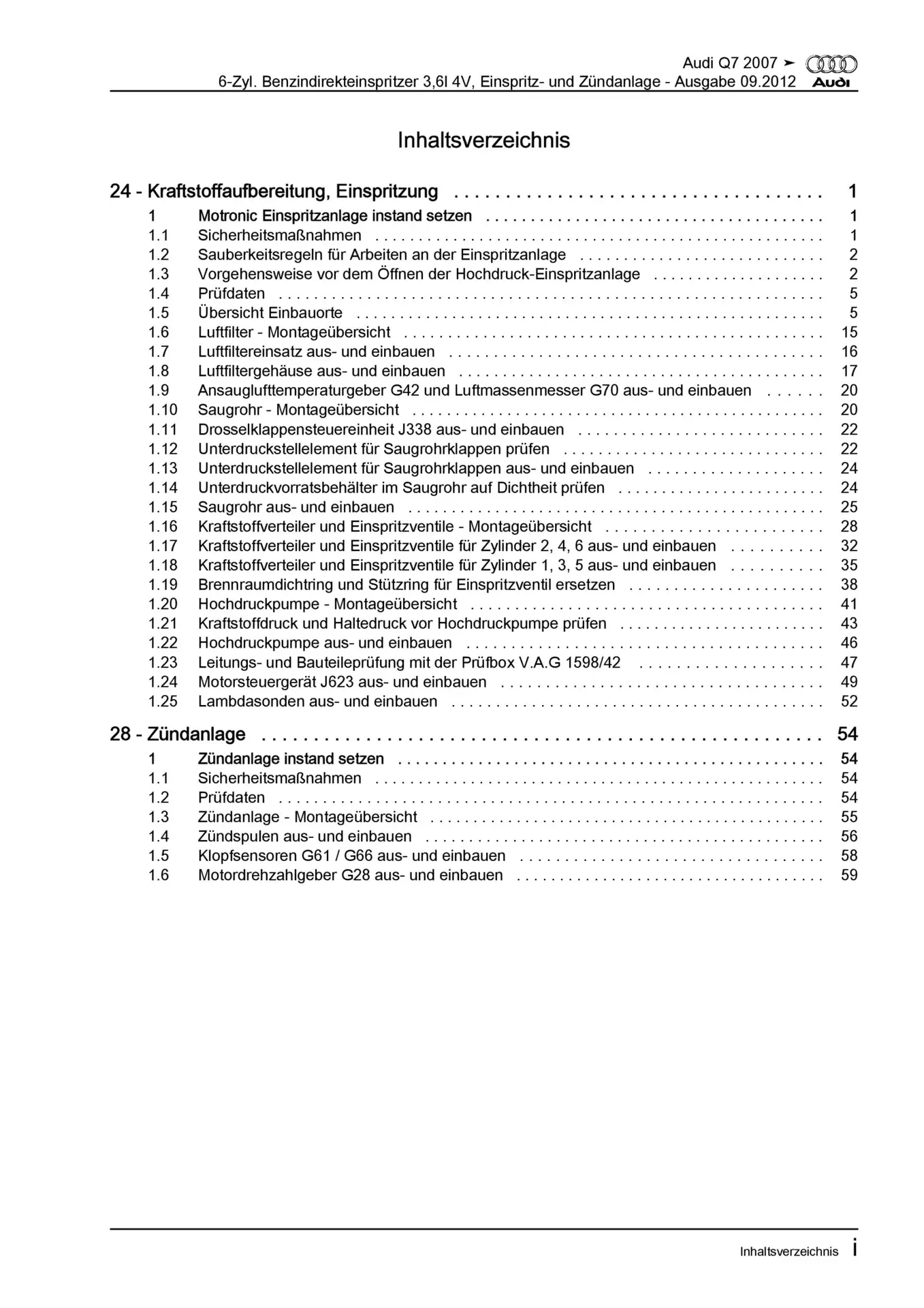 Audi Q7 Typ 4L 2005-2015 Benzin Einspritz- Zündanlage 280 PS Reparaturanleitung