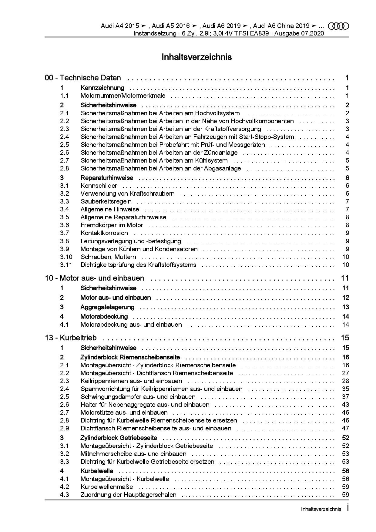 – Thema: Instandsetzung – 6-Zyl. Benzinmotor Direkteinspritzer (TFSI, 4V, EA839)