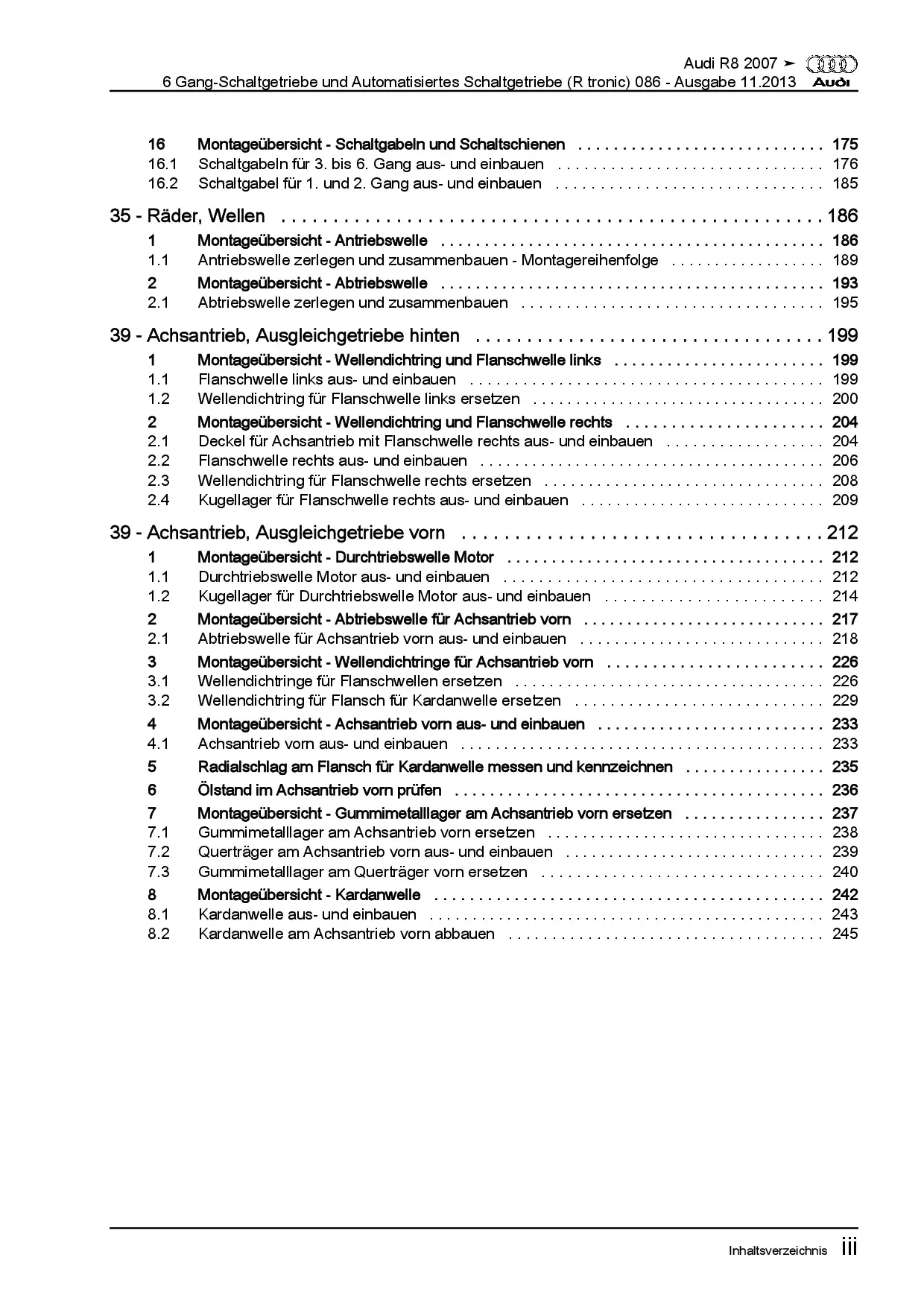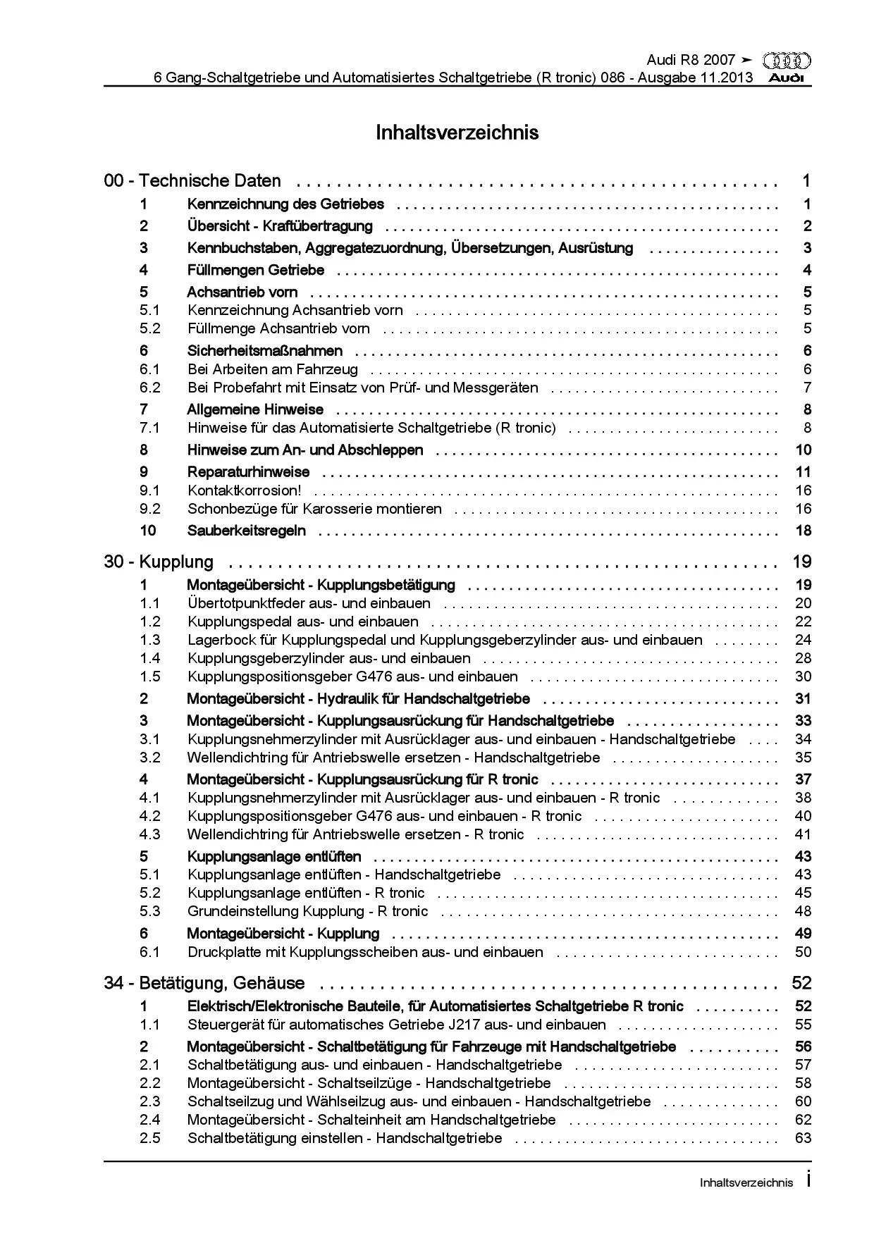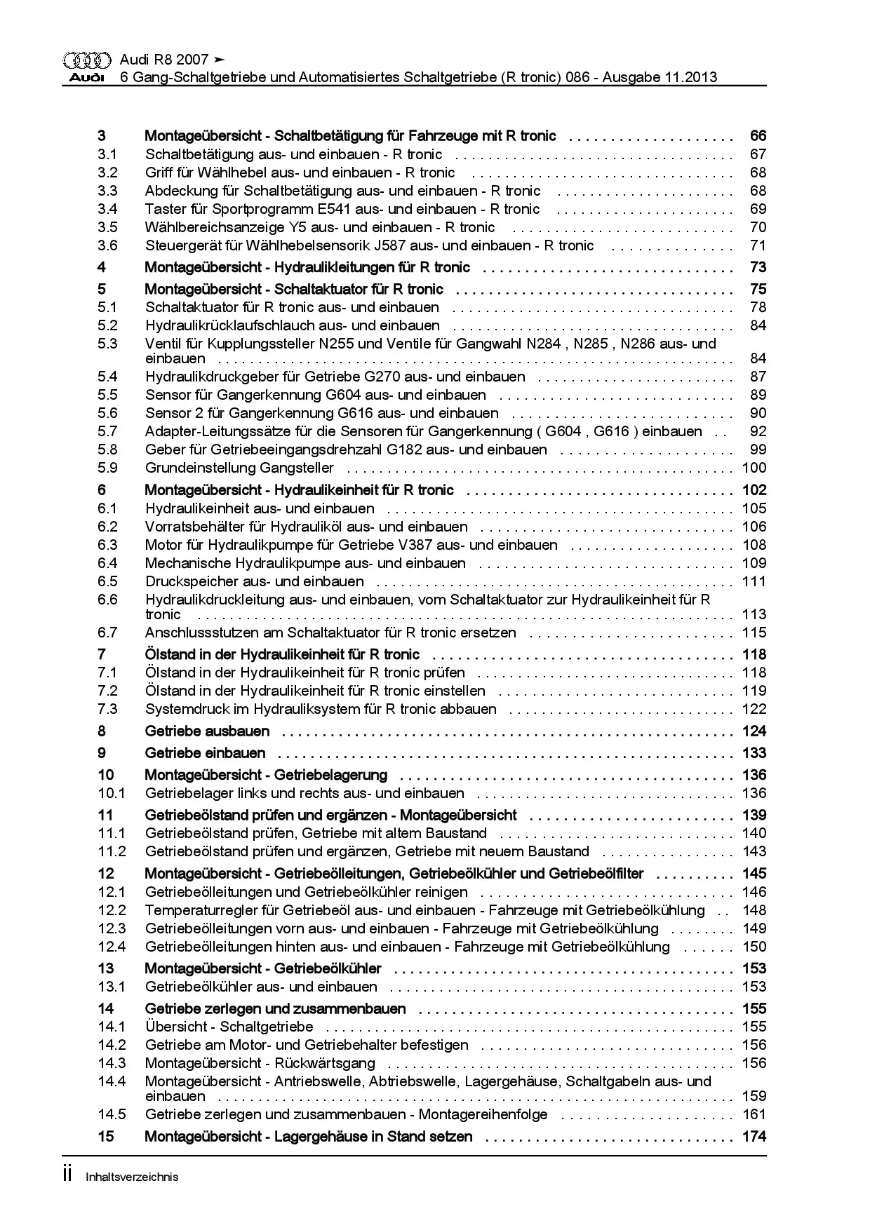 Audi R8 Typ 42 2006-2015 6 Gang Schaltgetriebe 086 R tronic Reparaturanleitung