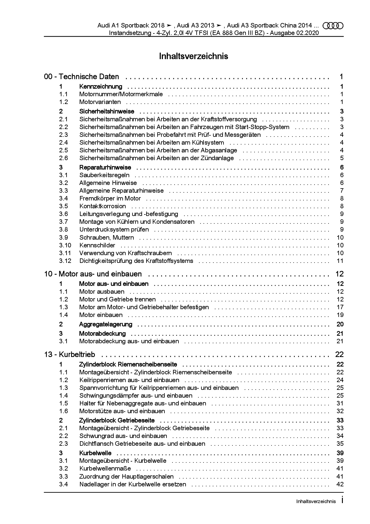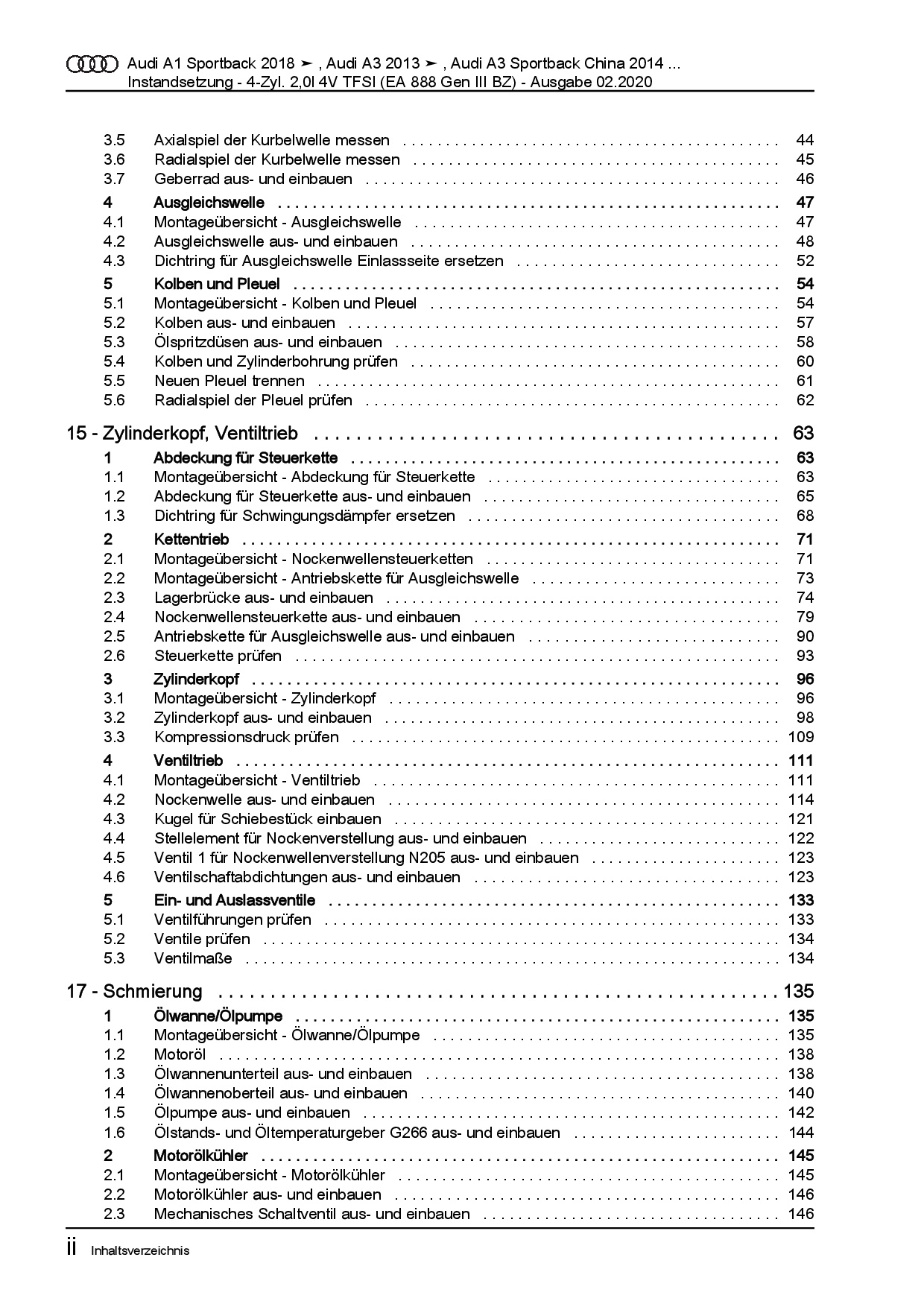 – Thema: Instandsetzung – 4-Zyl. Benzinmotor (4V, TFSI, EA 888, Gen III BZ)