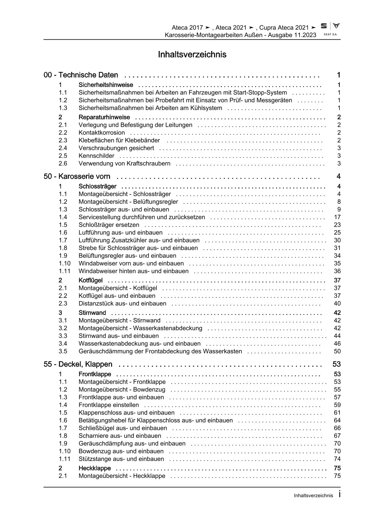 Offizieller Seat Cupra Ateca Reparaturleitfaden (Typ KB, KBP)