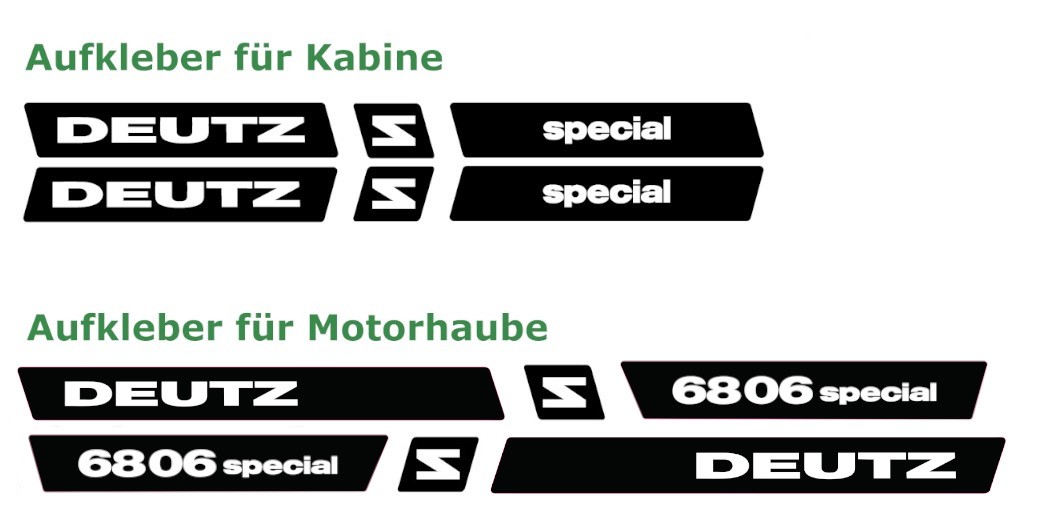 Bringen Sie den originalen Glanz Ihres Deutz D6806 Special zurück und steigern Sie den Sammlerwert! Dieser hochwertige Aufklebersatz spart Ihnen Stunden bei der Restauration, sorgt für langlebige Authentizität und schützt Ihren Oldtimer vor Wertverlust durch unpassende Beschriftungen.