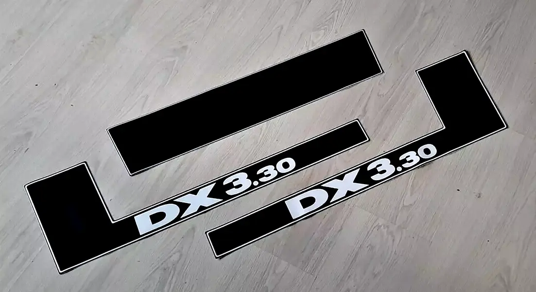 Erhalten Sie den vollen Werterhalt Ihres Deutz DX3.30 durch die Wiederherstellung der originalen Motorhauben-Beschriftung. Sparen Sie Zeit bei der Restauration, da exakte Passform, Typografie und Farben ab Werk nachgebildet sind – für langlebige Authentizität ohne Kompromisse.